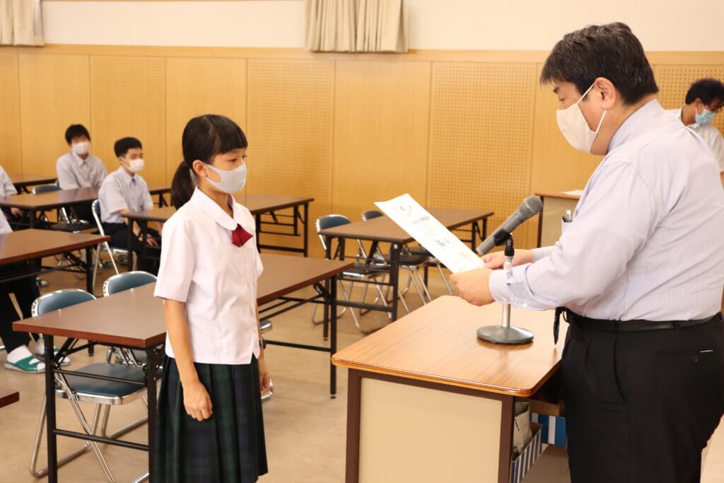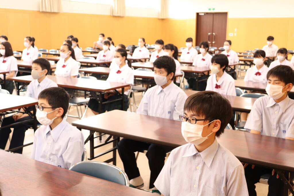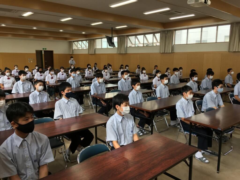今日は、校長先生より校内放送でお話がありました。その後、各学年ごとに集会を行い、表彰、教頭先生、教務主任安田先生、生徒指導主任宮﨑先生よりお話がありました。