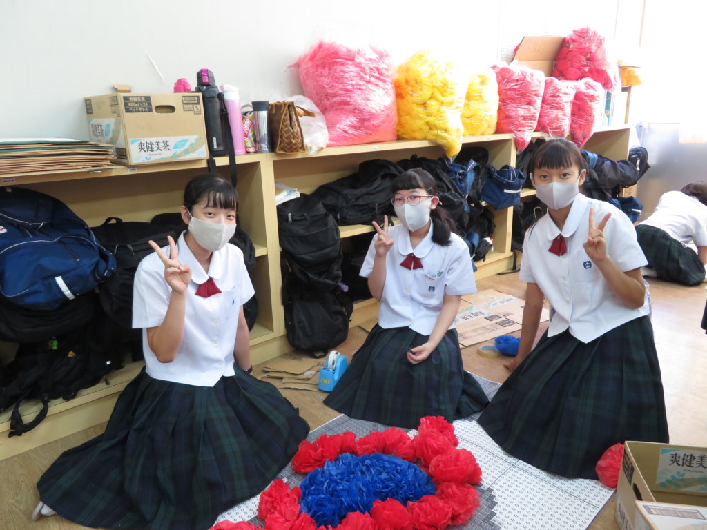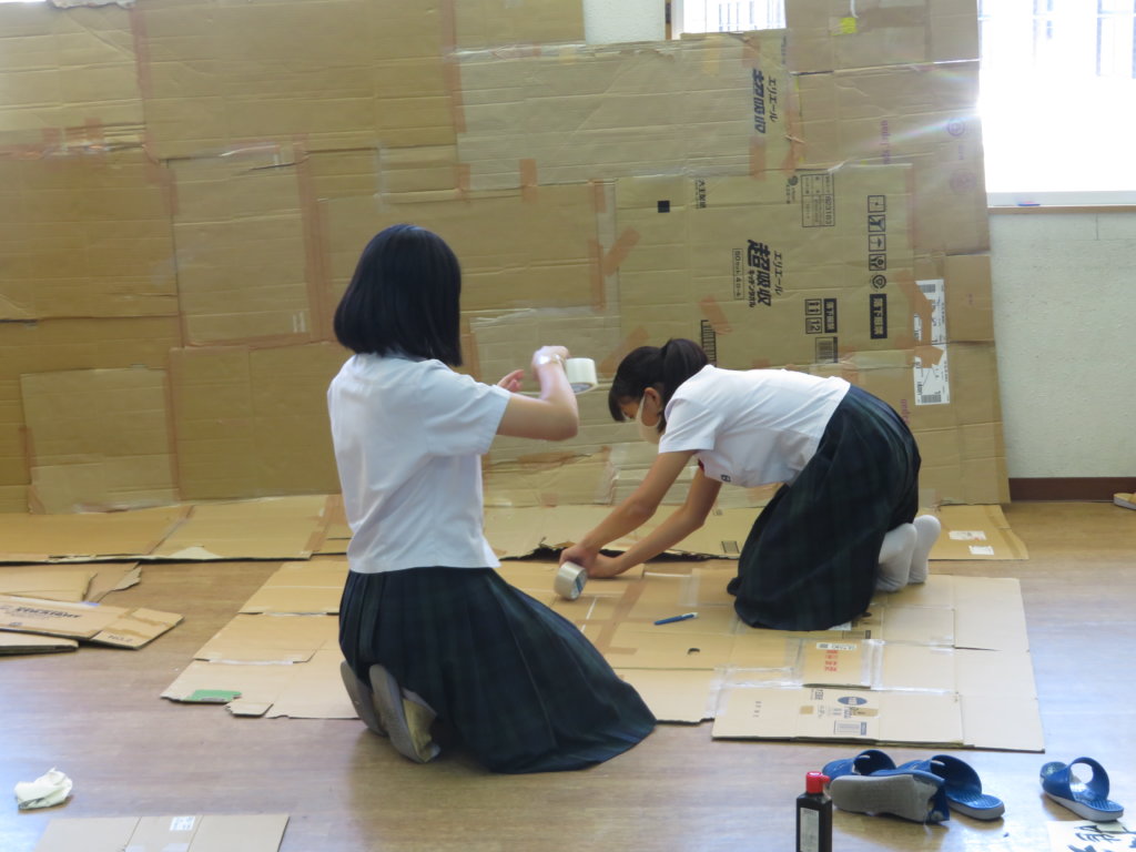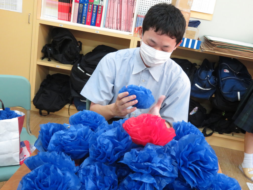 本日は、全校生徒一斉に、9月4日(金)・9月6日(日)にあります文化発表会、9月11日(金)にあります体育大会の準備を行いました。どのクラスもいいものを作り上げようと、全員で協力して取り組んでいました。今日はその様子をお届けします。