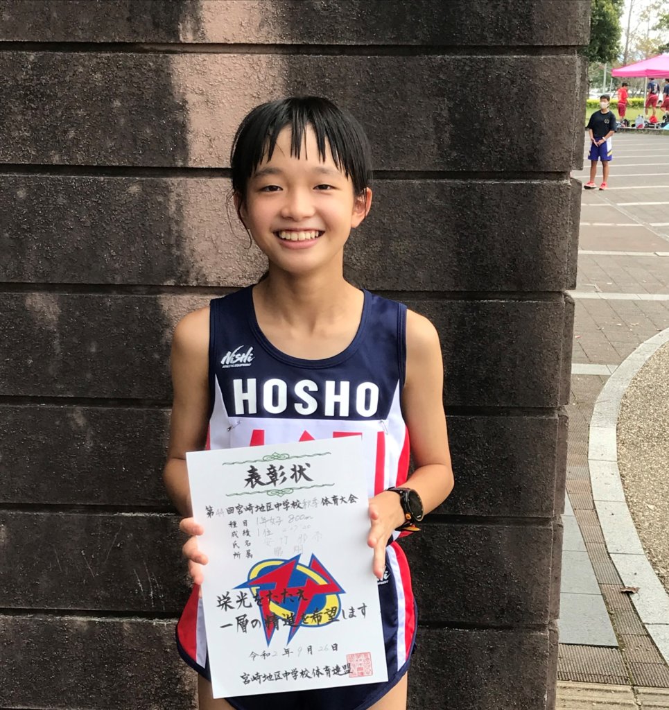 まずは、陸上です。J1B安竹那奈さん(小戸小出身)。出場種目は、1年女子800mです。