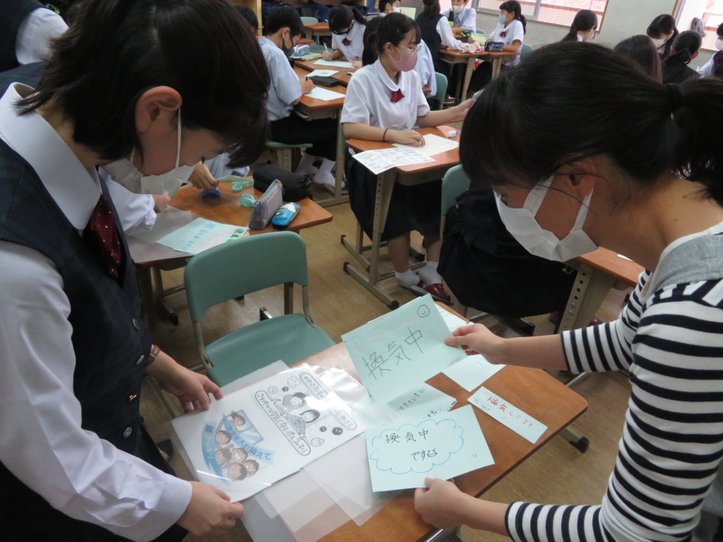 保健体育委員会では10月10日の目の愛護デーに関する掲示物・換気のポスター作成を行っていました。