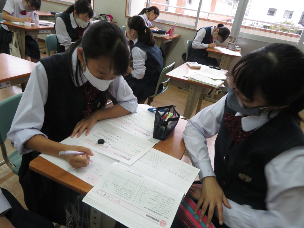 学習委員会では10月13日(火)から行われる第3回定期考査に向けて、日めくりカレンダー・テスト範囲表の作成を行っていました。第3回定期考査までのこり〇〇日!!の文字を見て勉強にも熱が入りますね!!