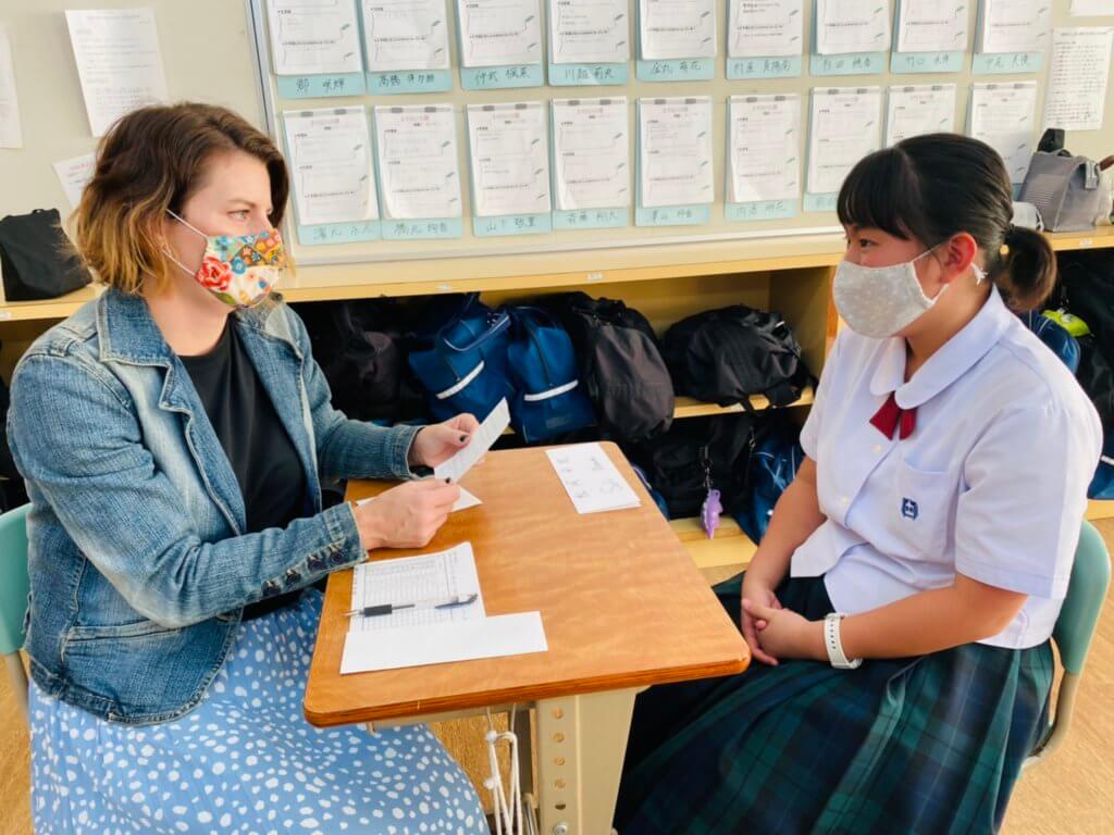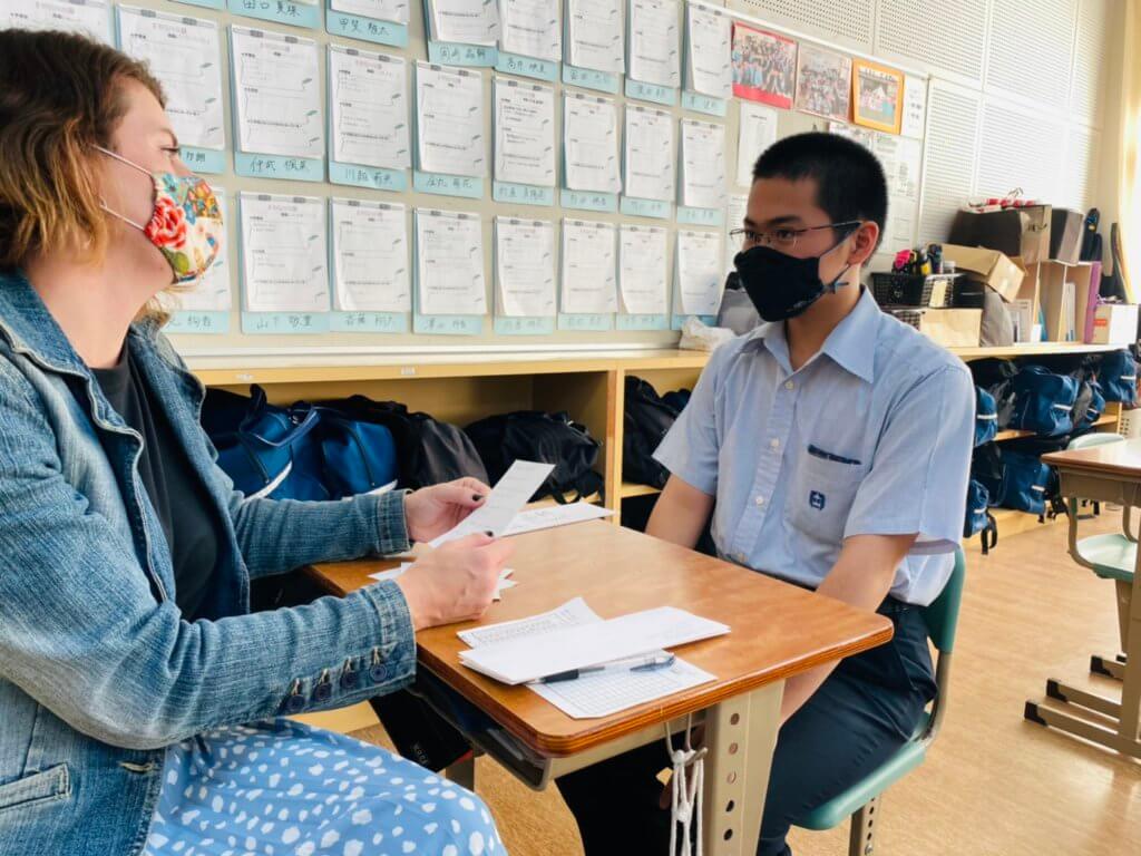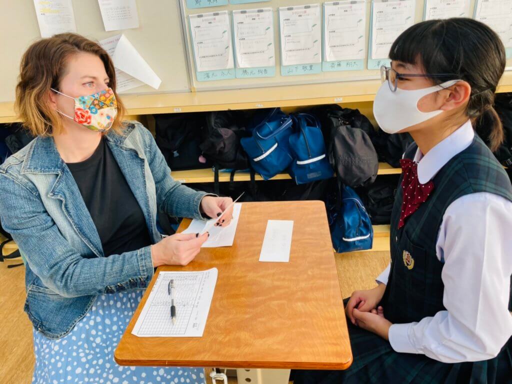 今日のジェニファー先生の英会話の授業で、インタビューテストが行われていました。