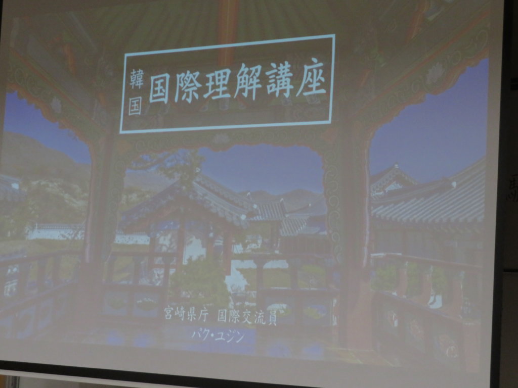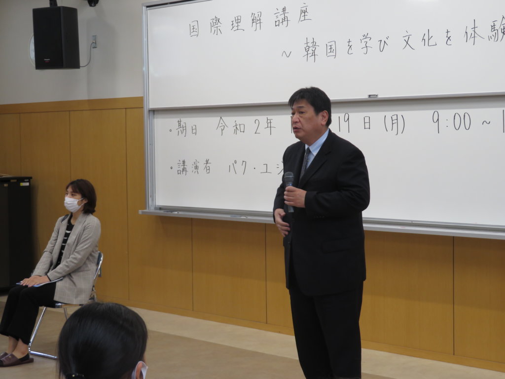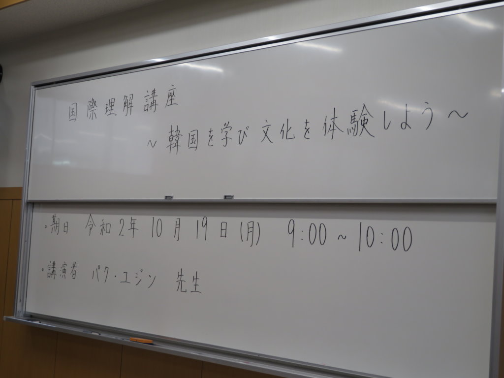 今日は、国際理解講座が行われました。今回は韓国についての講座を国際交流員のパク・ユジン先生にしていただきました。