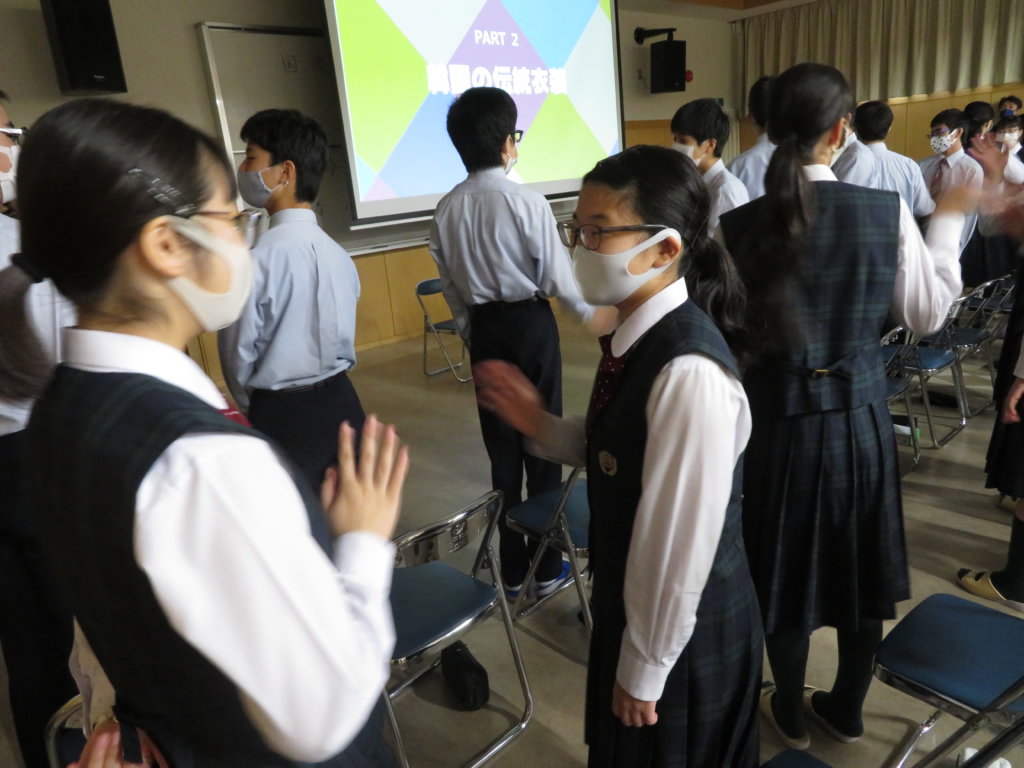実際に韓国語であいさつをしたりクイズを通して韓国文化について考えたりと楽しく学習できたようです。