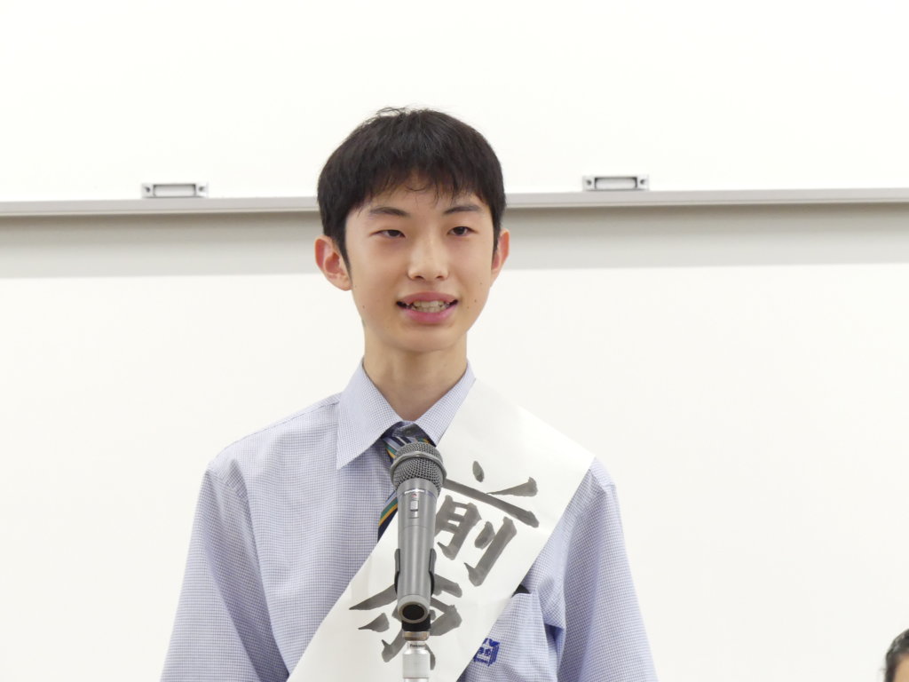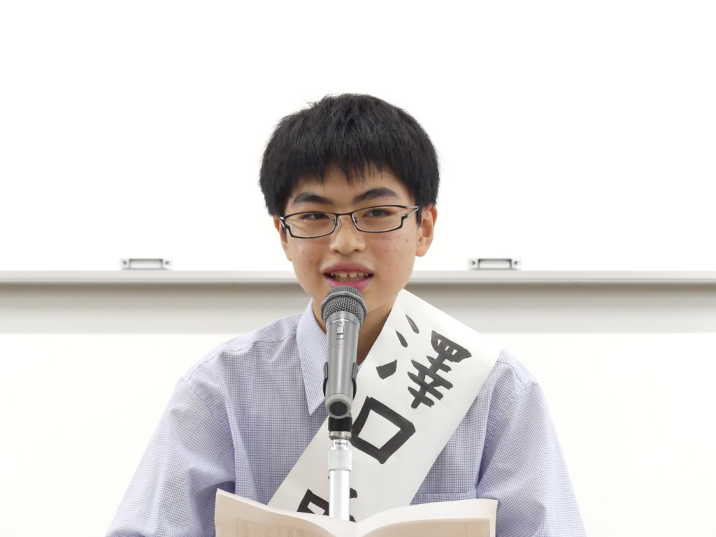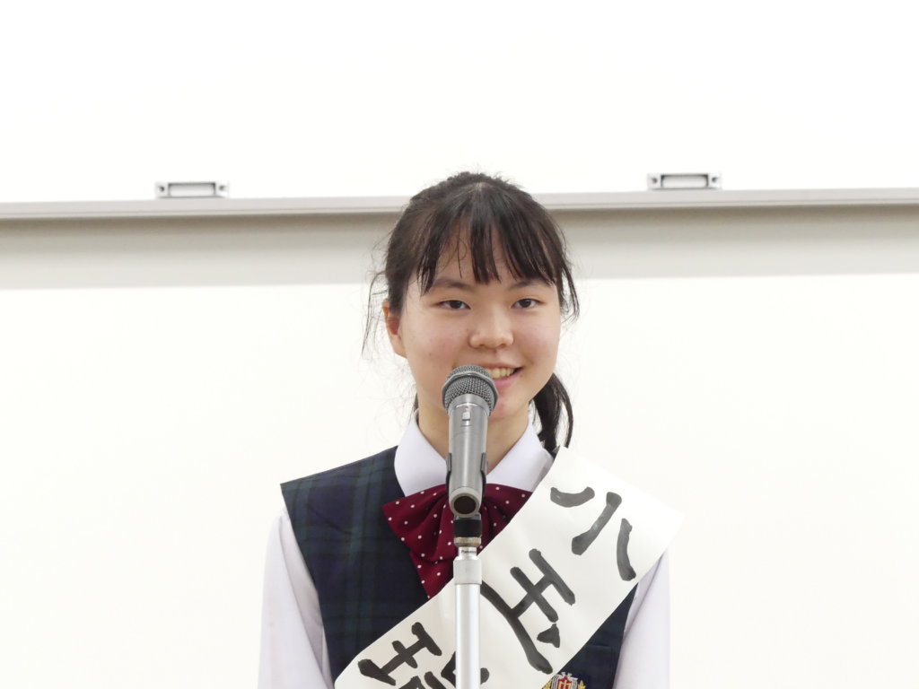今選挙は、次期生徒会役員を決める選挙であり、1・2年生の各クラスより選出された立候補者がどんな学校にしたいかを全校生徒に伝える場です。