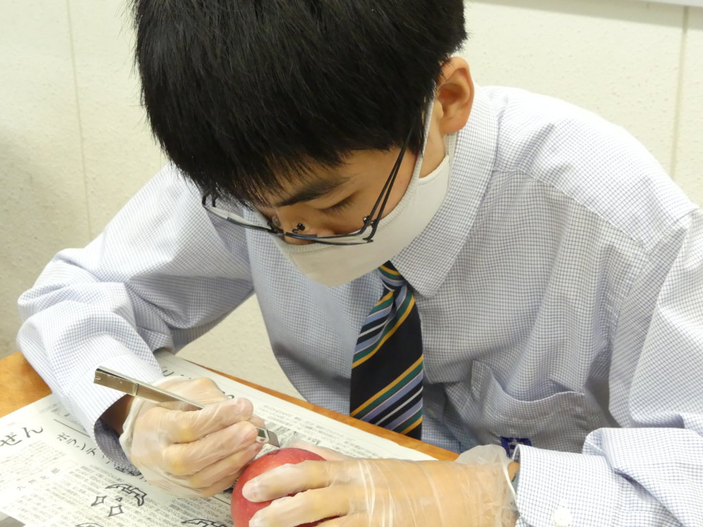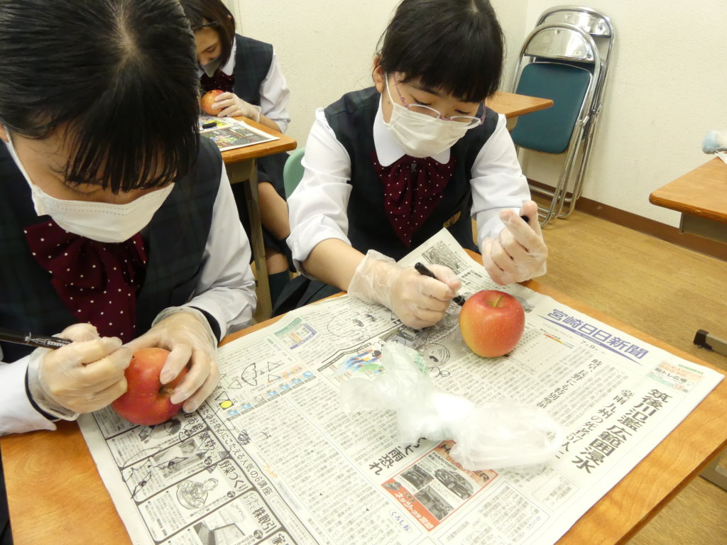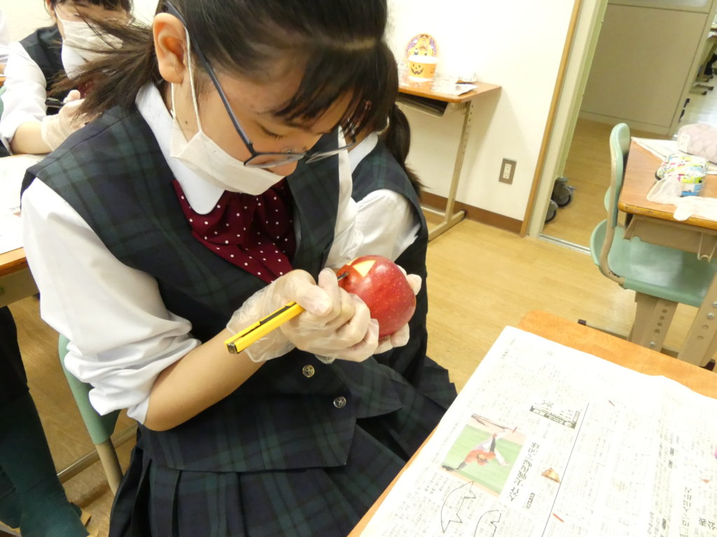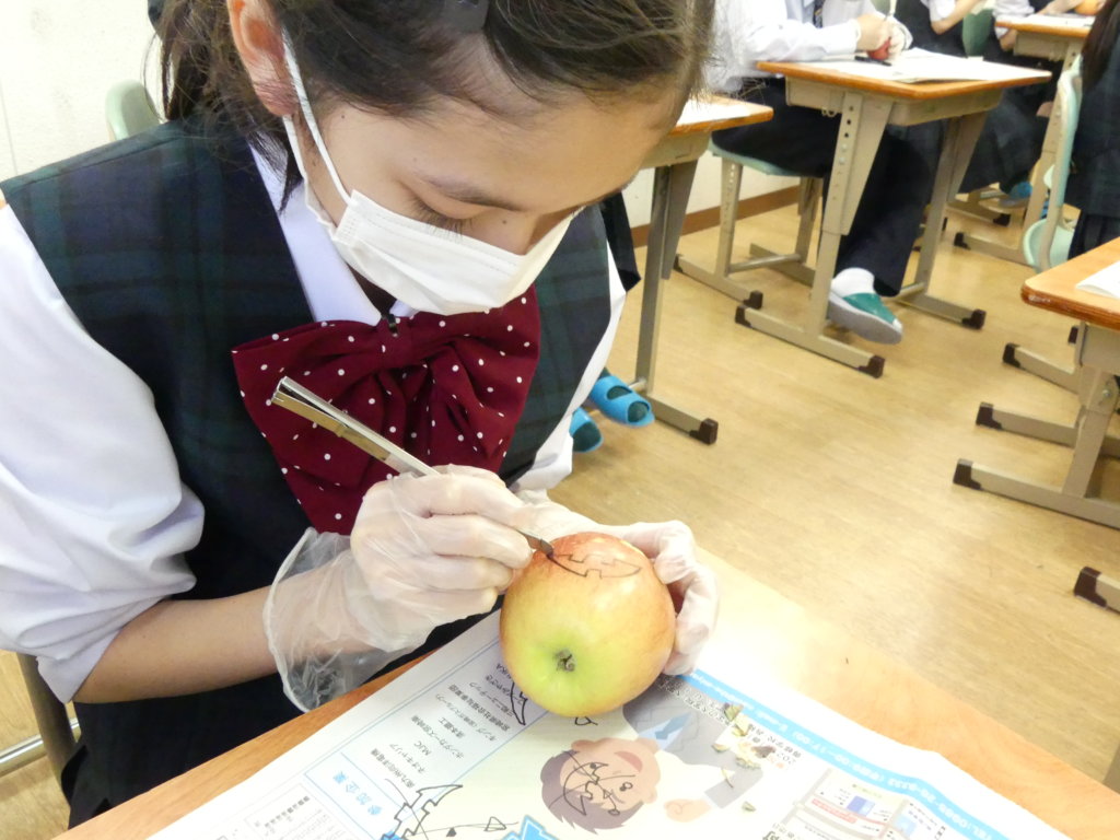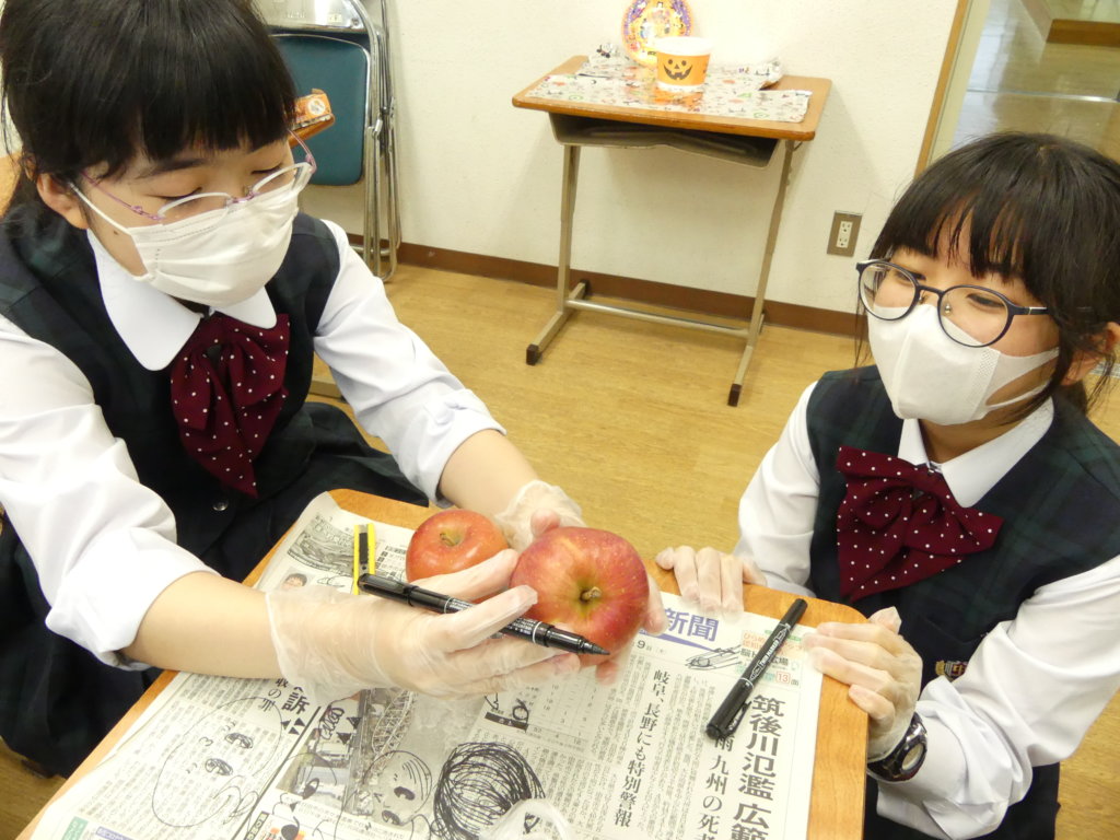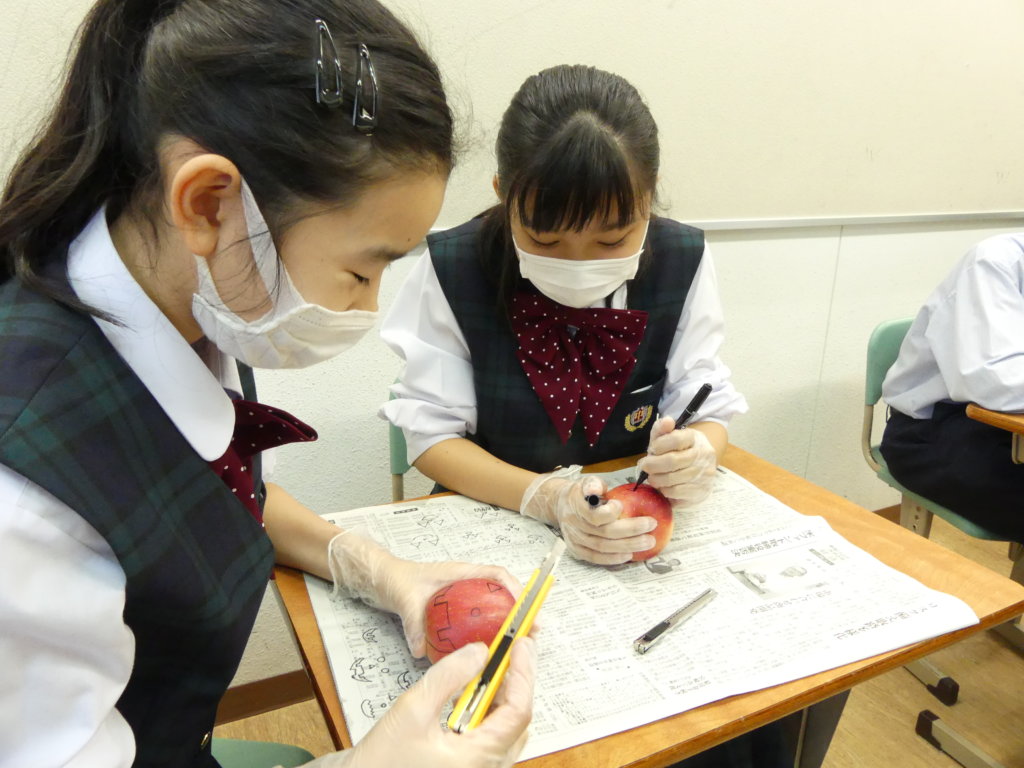 昨日、ESS部でジャック・オー・ランタンを作りました。かぼちゃの代わりにリンゴで作成です!1人1人デザインを考えたオリジナル作品です。