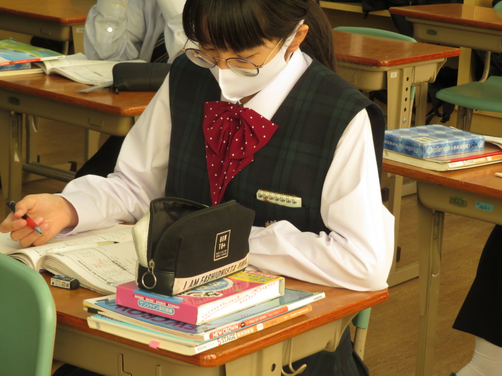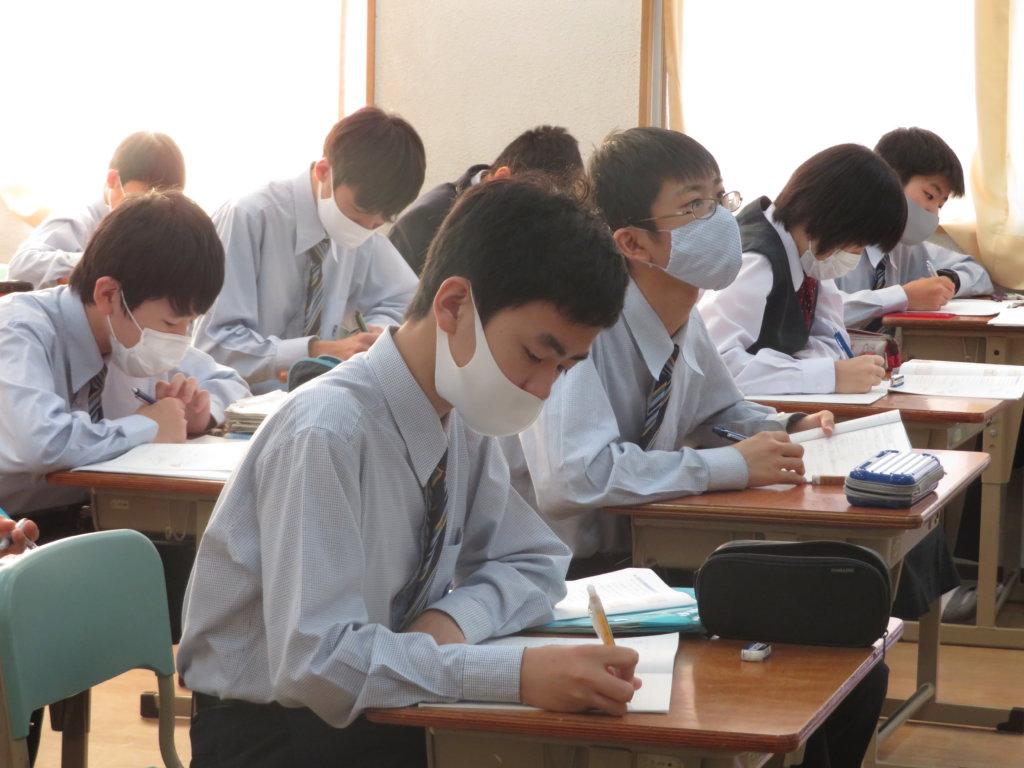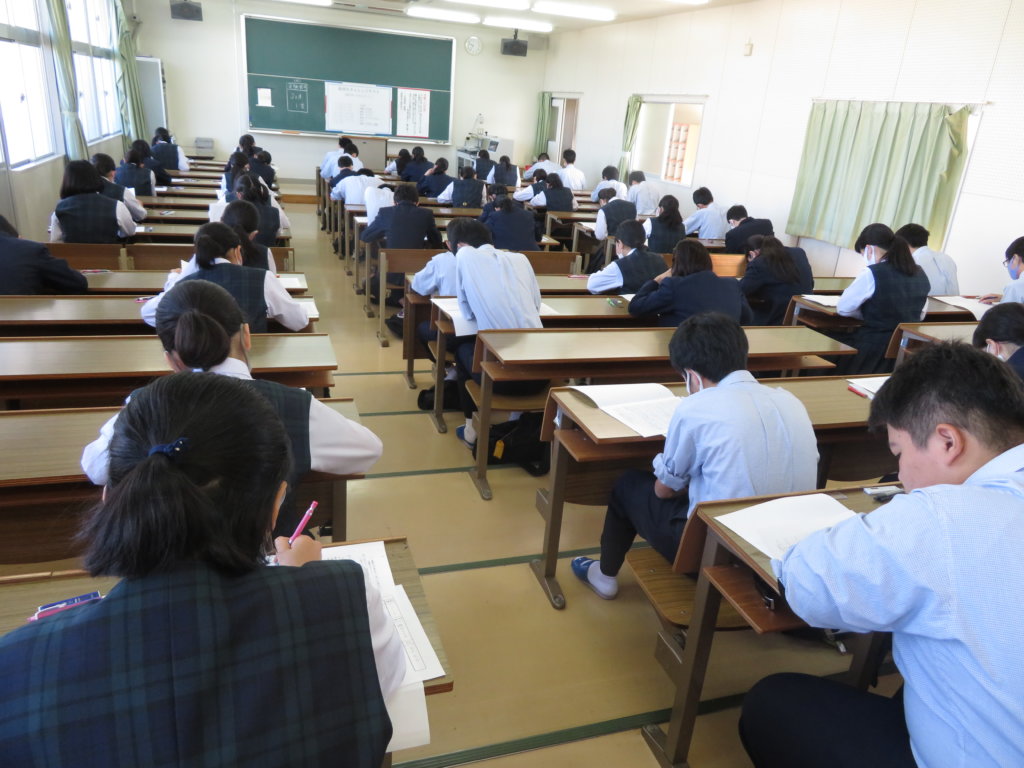 また、J1・J2生は通常授業が行われました。国語・数学・英語の授業は習熟度に応じた授業が展開されています。みんな集中して授業を受けていました。