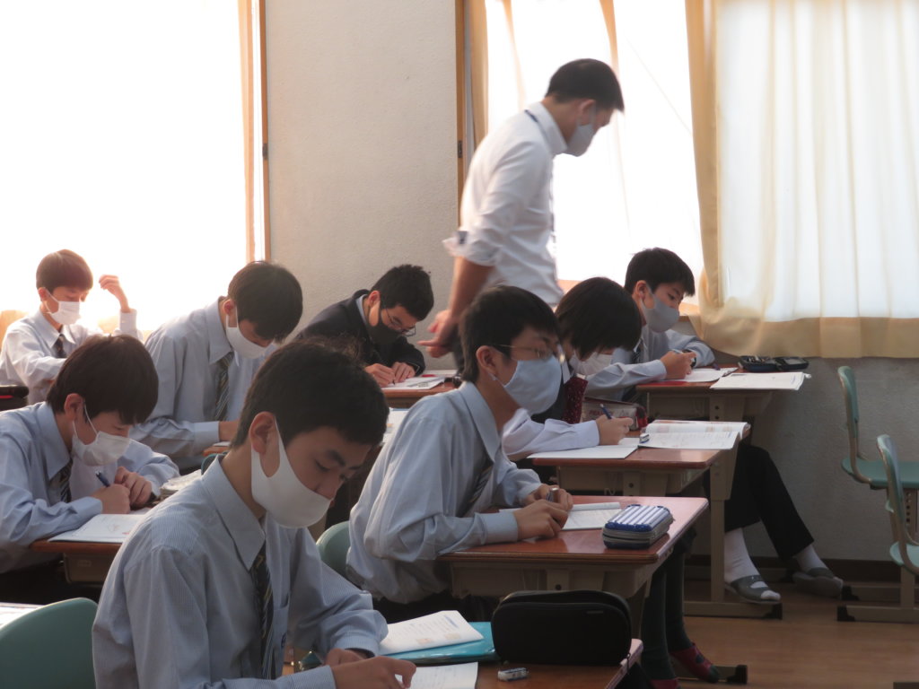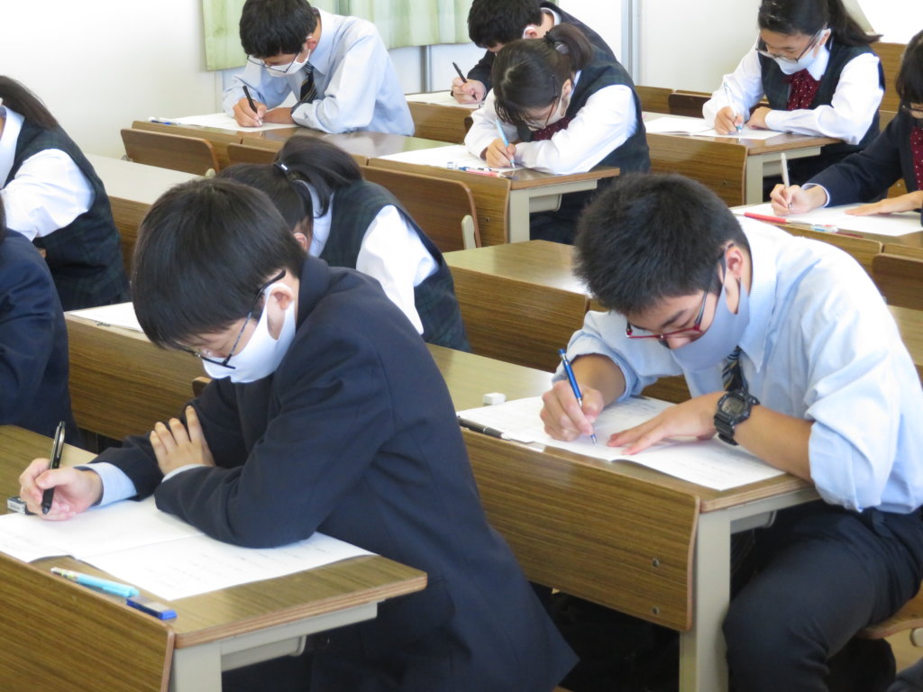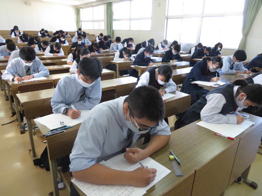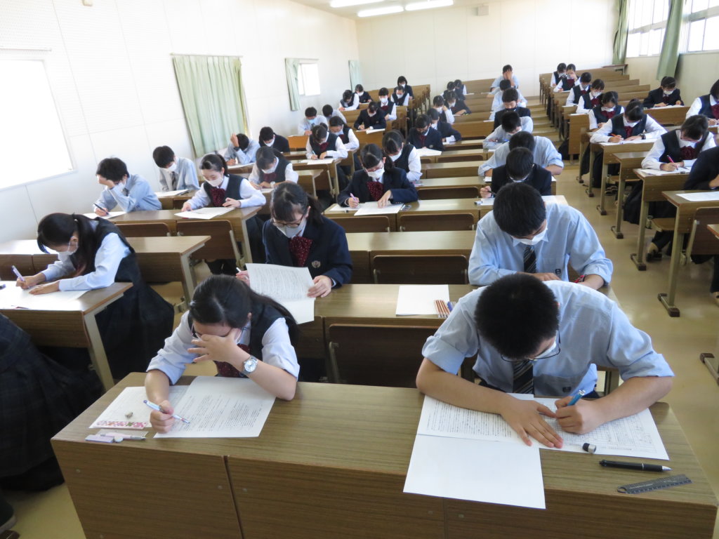 本日、特進英数科の特待生チャレンジテストが行われました。本校でも、J3生が同じ時間に受験をしました。定期考査とは違い、範囲の広いテストではありましたが、全員が精一杯取り組んでいました。
