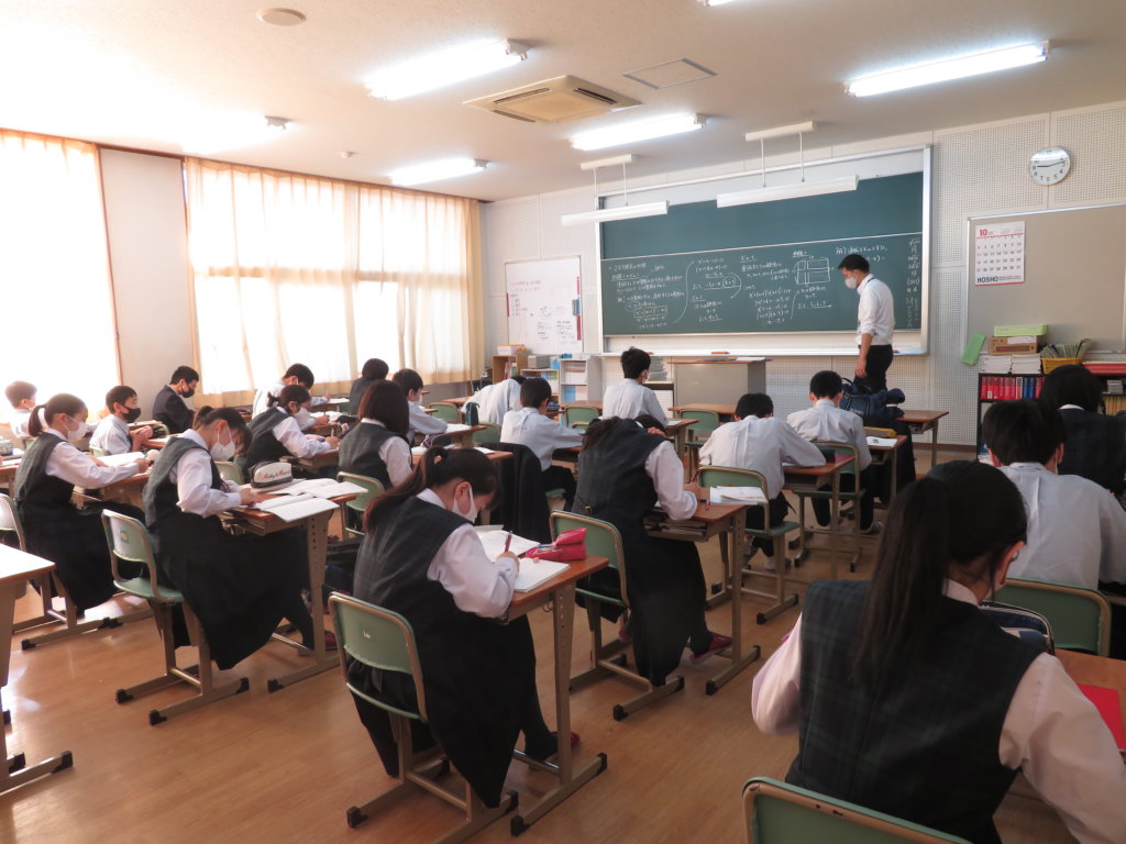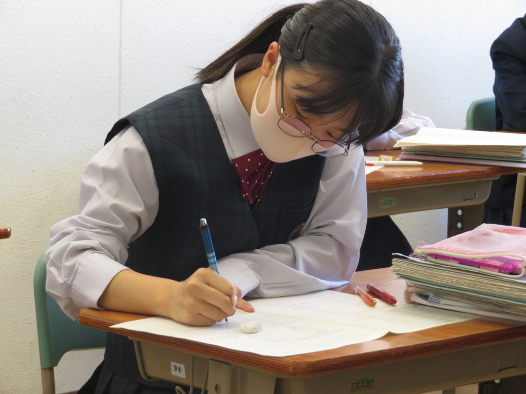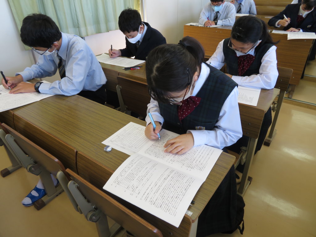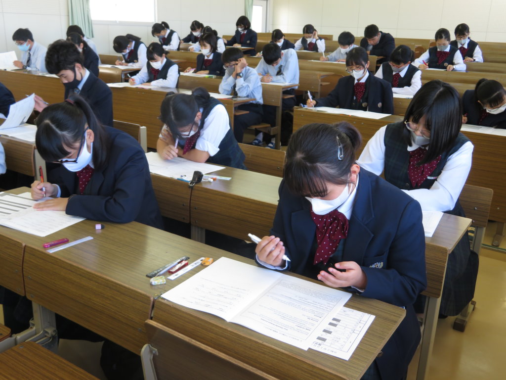 本日、特進英数科の特待生チャレンジテストが行われました。本校でも、J3生が同じ時間に受験をしました。定期考査とは違い、範囲の広いテストではありましたが、全員が精一杯取り組んでいました。