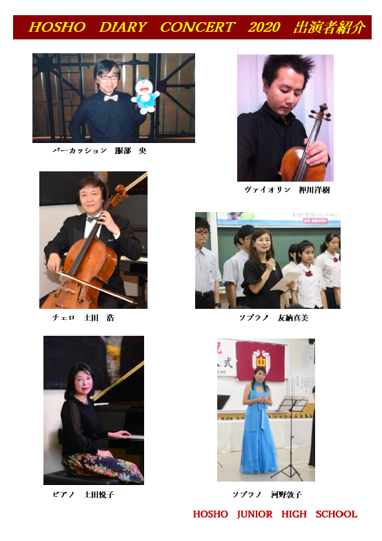 個人発表や意見文発表、英語弁論・暗唱のほかにHOSHO DIARY CONCERTが行われます。ゲストの方々をお呼びしてのコンサートになります。楽しみにしていてくださいね!!