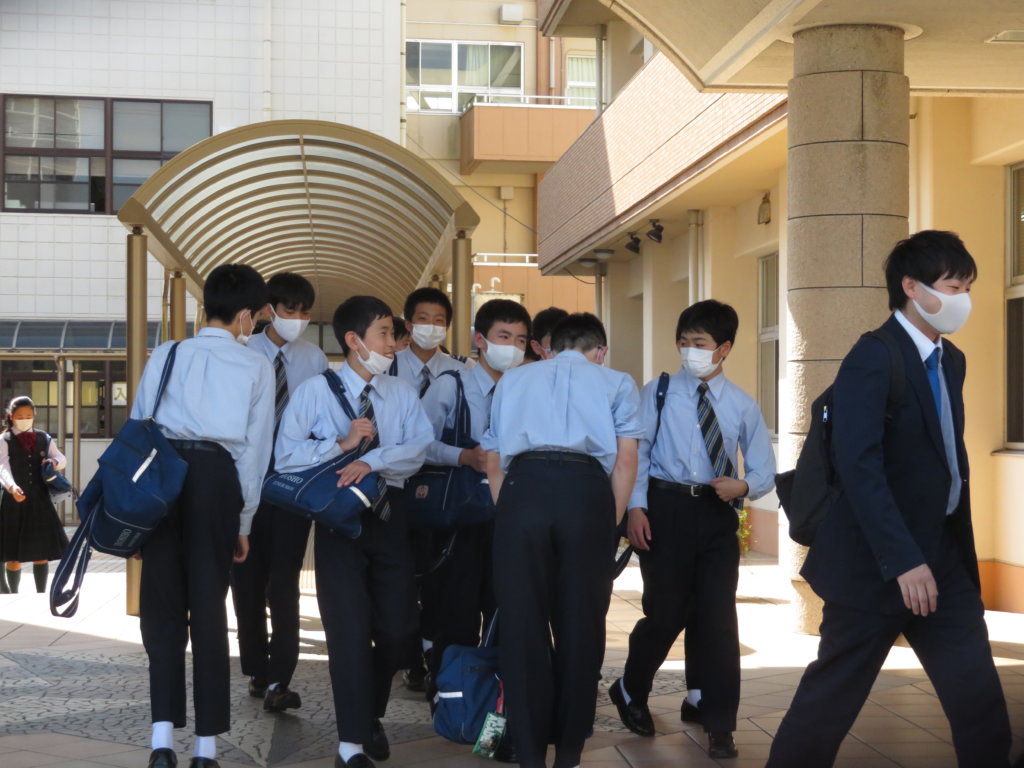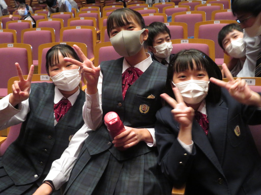 今日は全校生徒みんなで歩いて会場まで行きました。