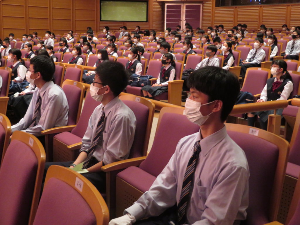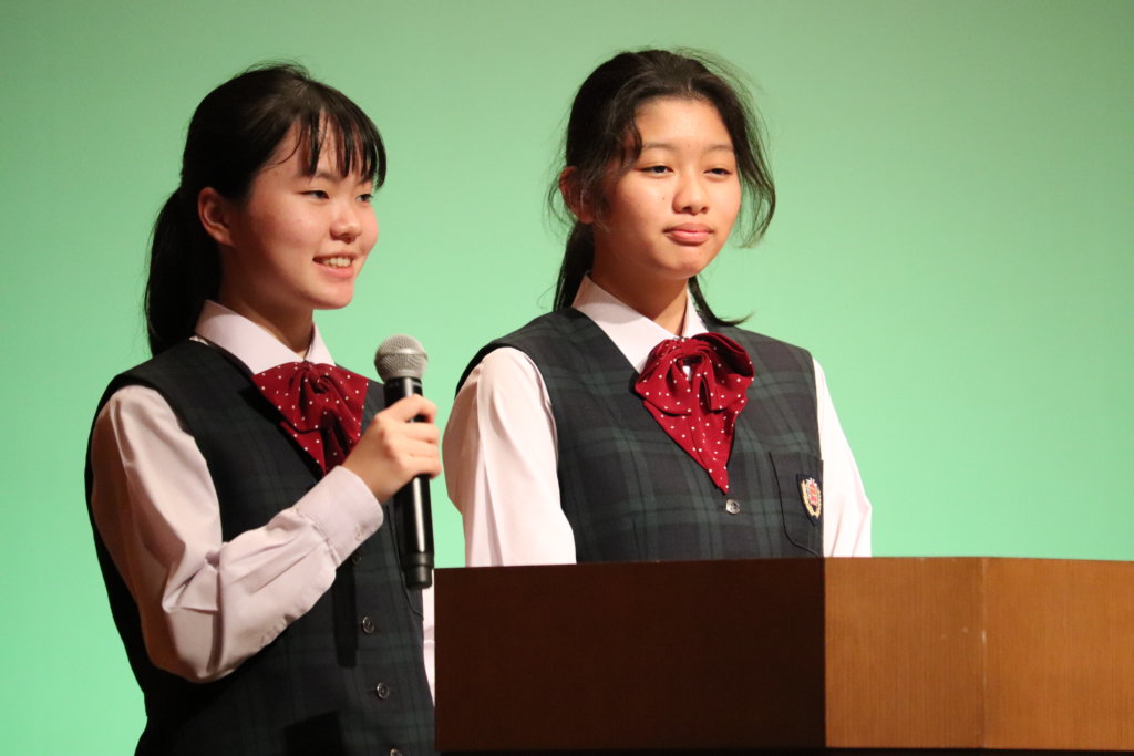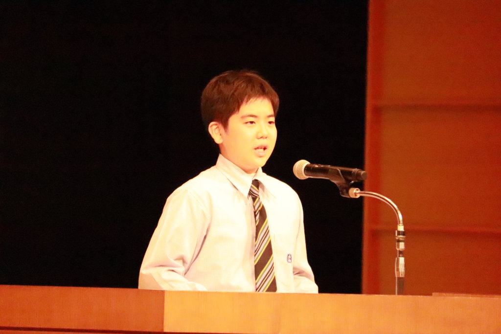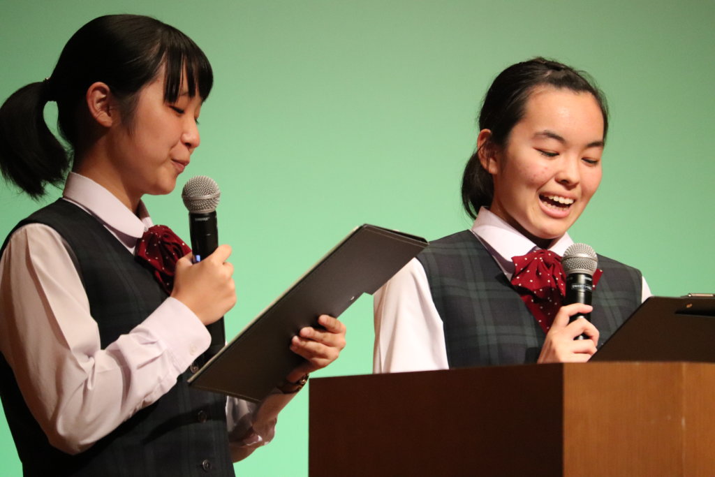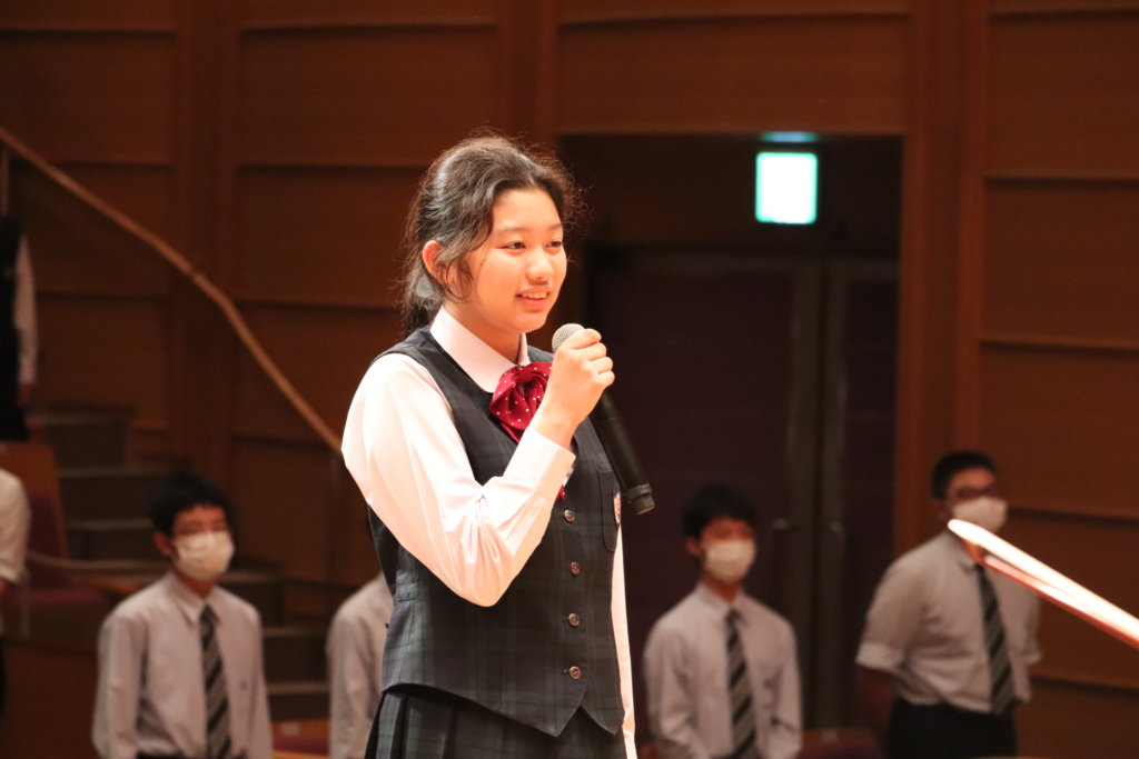 川﨑基宏校長先生からの挨拶で開幕し、生徒会長の久木元菜茄さんの挨拶と続きます。