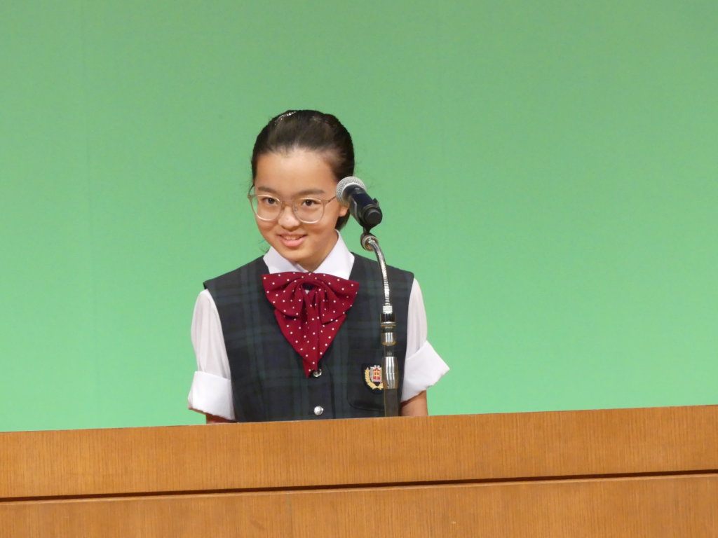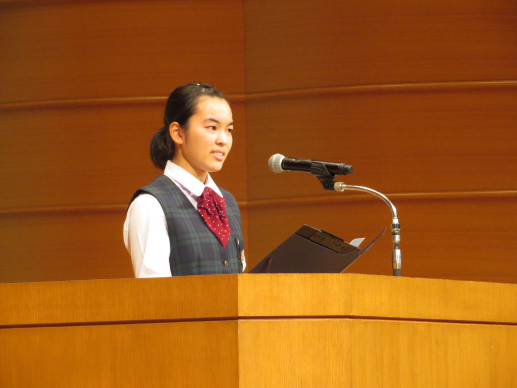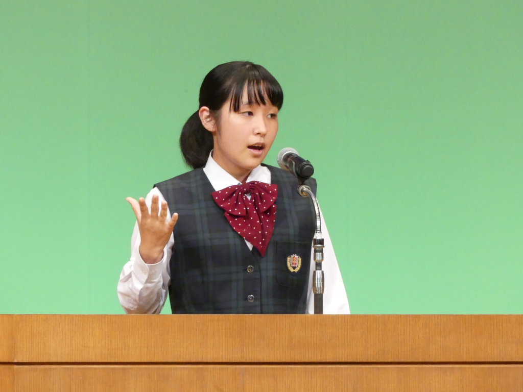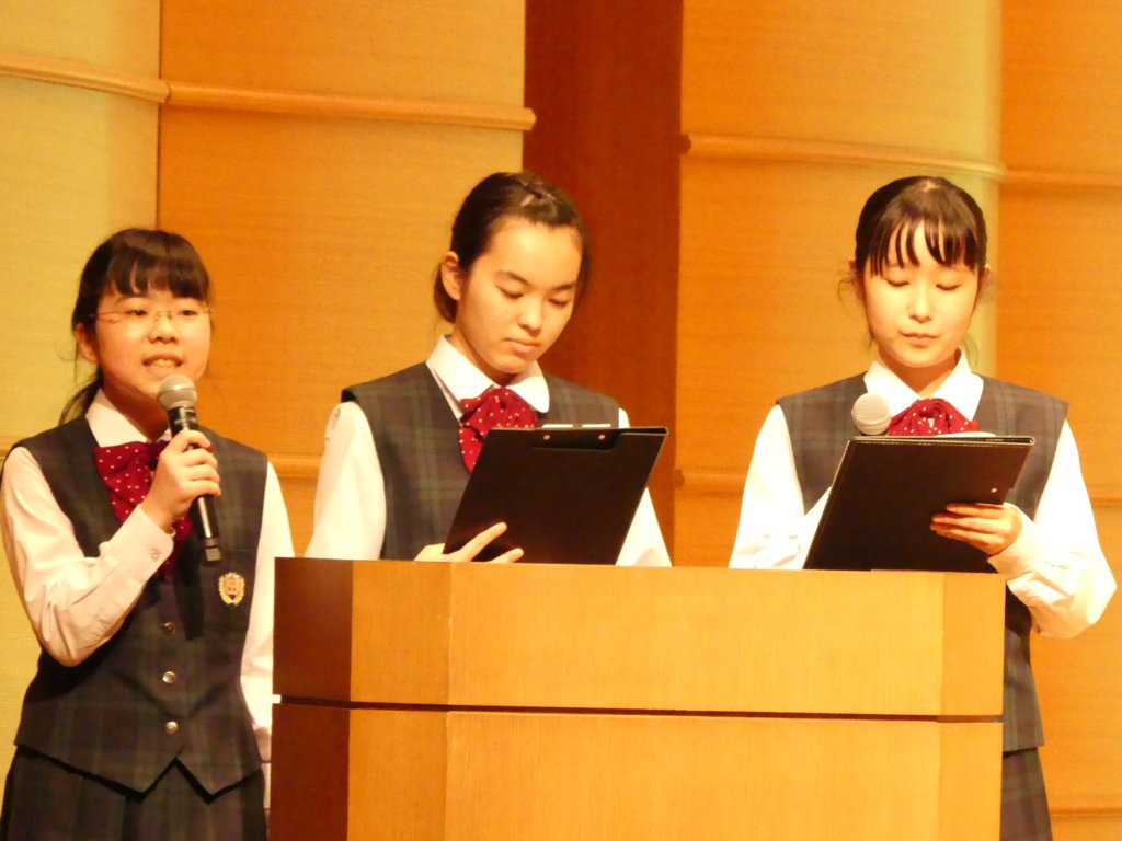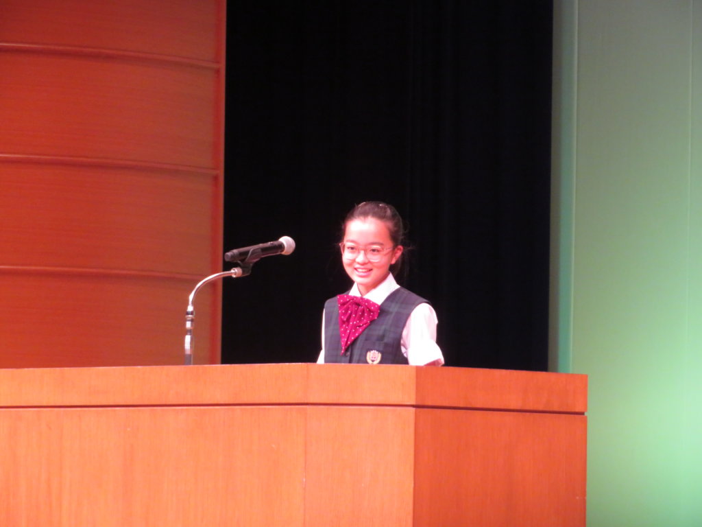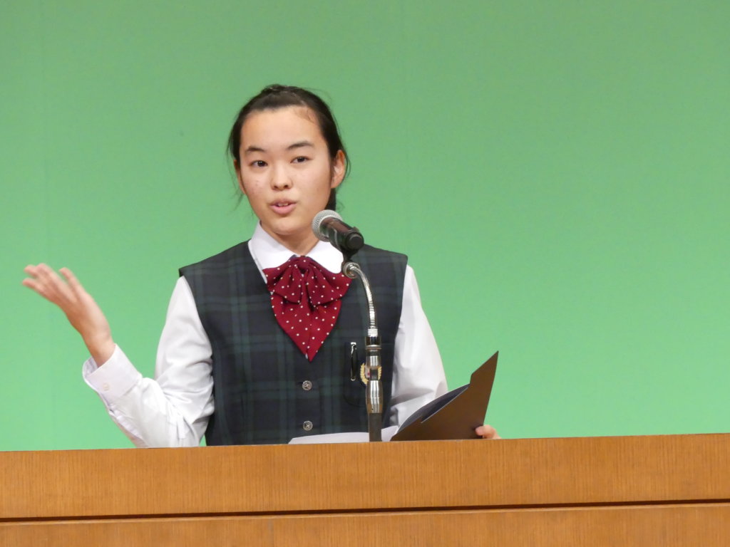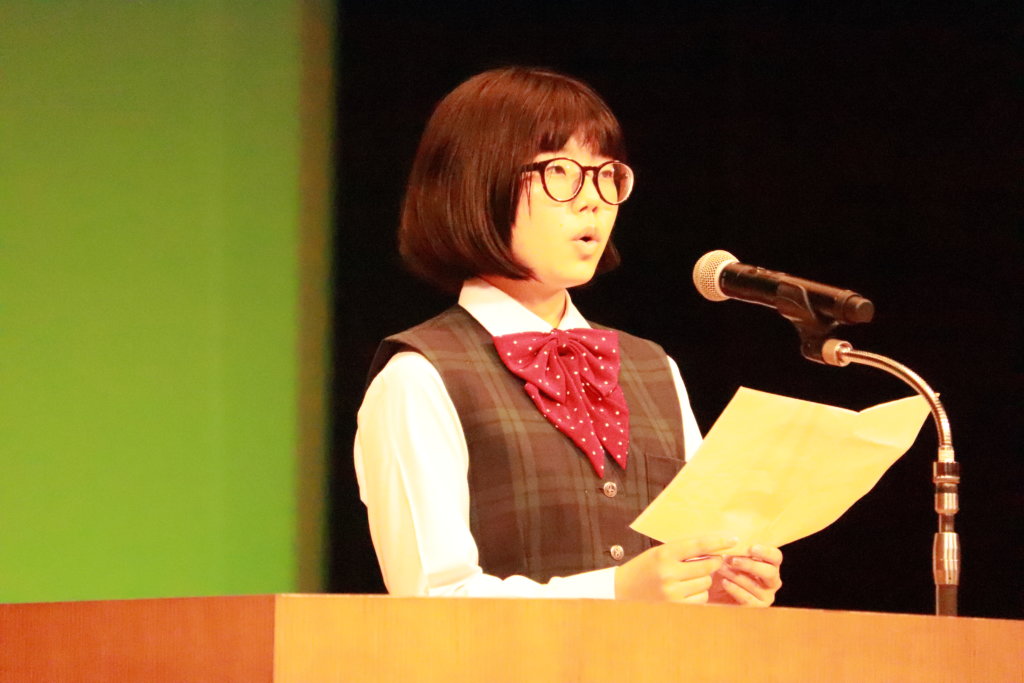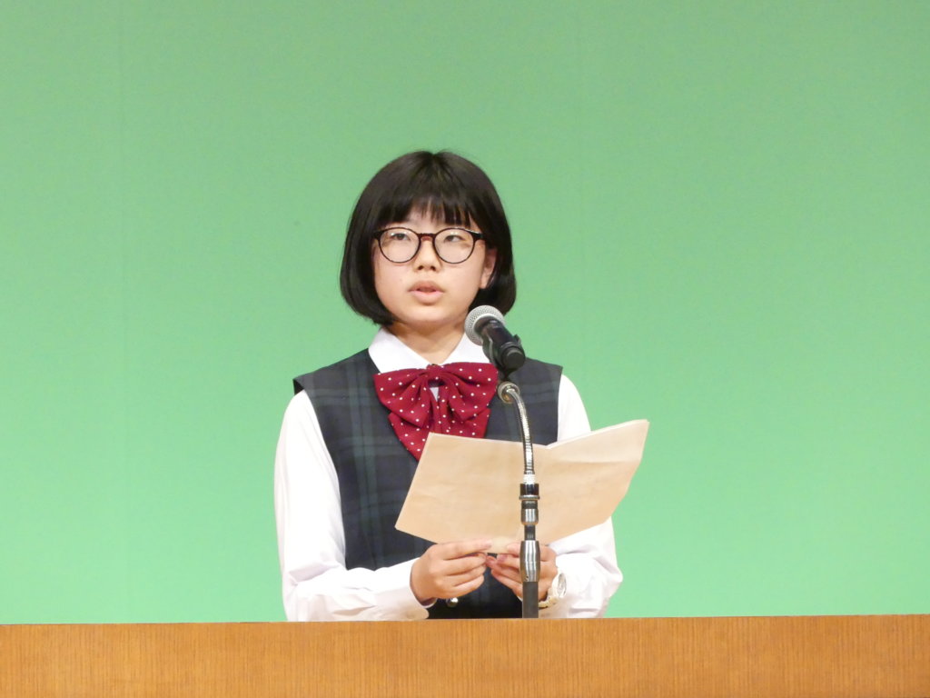 生徒を代表してお礼の言葉をJ2A 青山茉加さん(江南小出身)が行い、