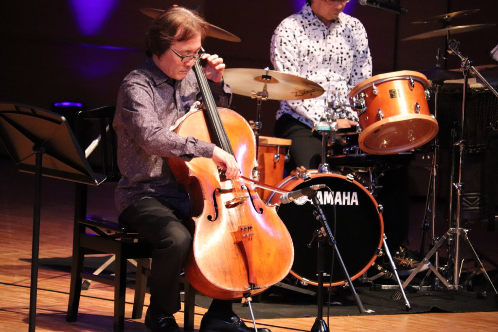 服部央さん(パーカッション)・土田浩さん(チェロ)・土田悦子さん(ピアノ)