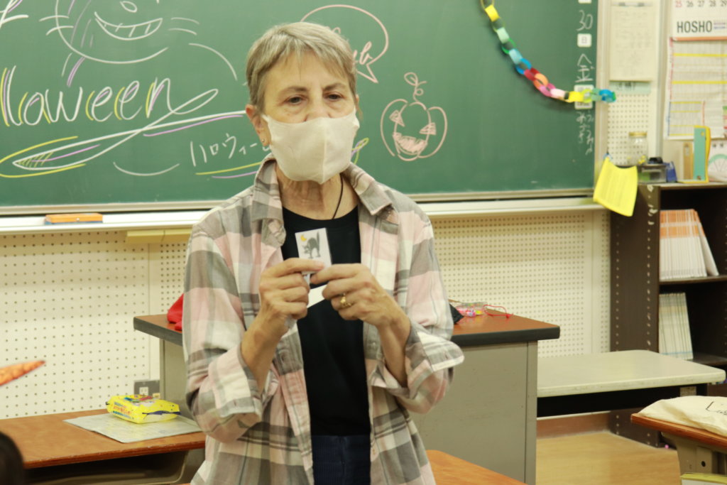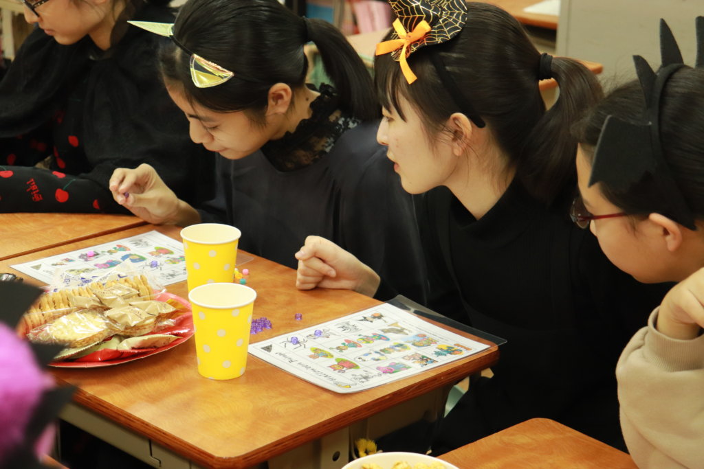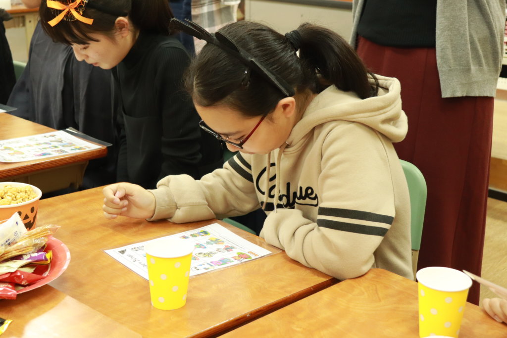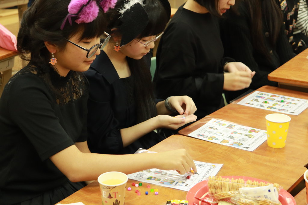 まずハロウィンビンゴを行いました。トンプソン先生が読み上げるハロウィンに関する英単語を聞き取りました。
