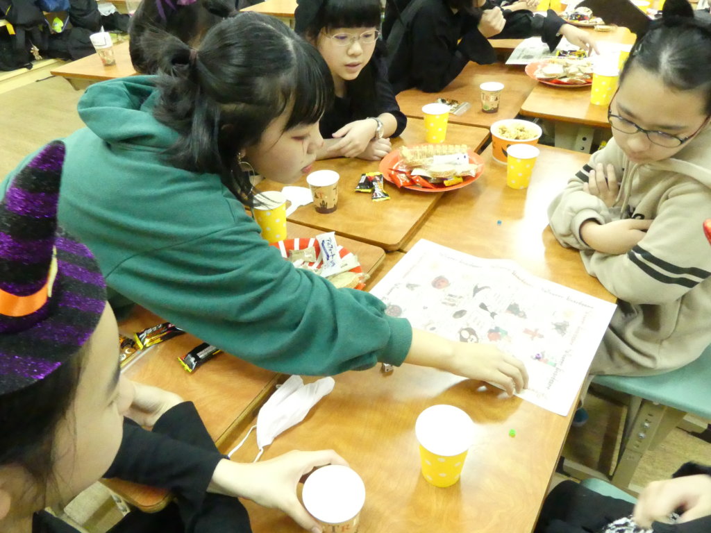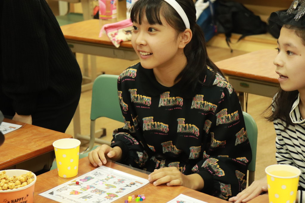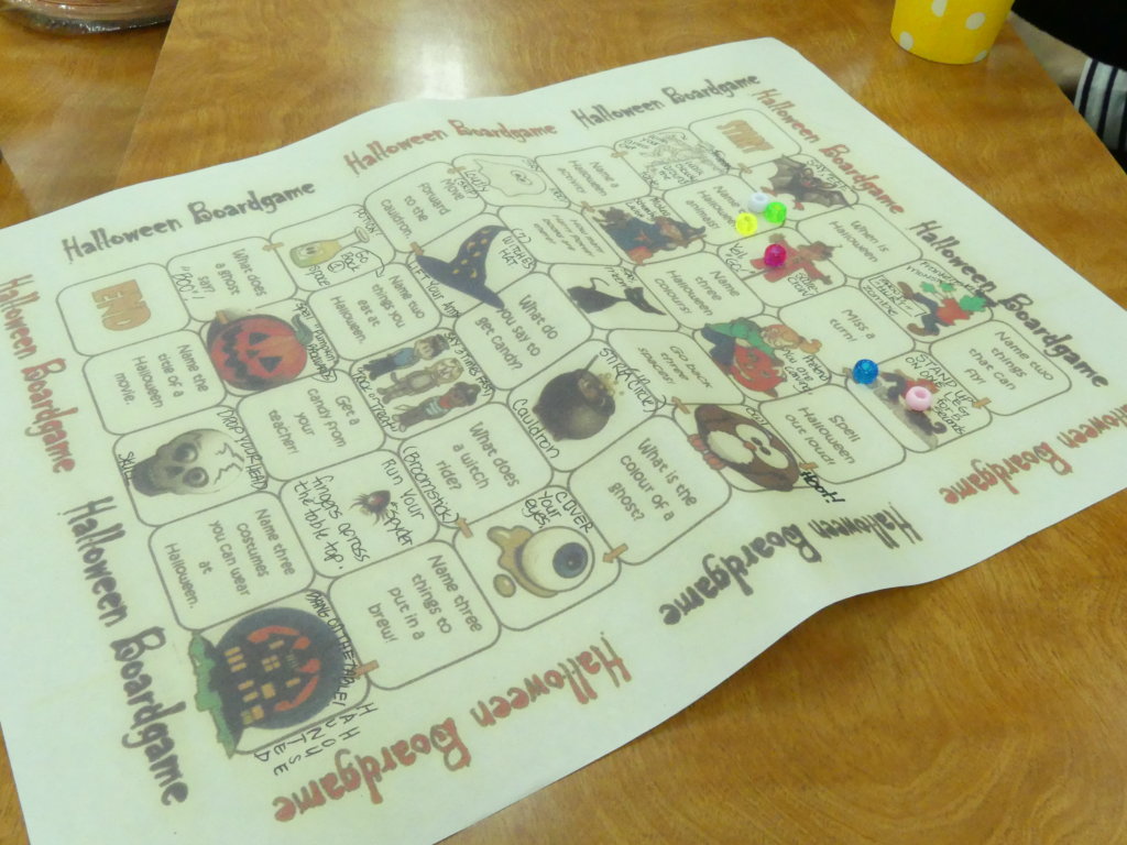 ビンゴゲームの後には英語ですごろくをしました。すごろくもハロウィンに関するものでした。