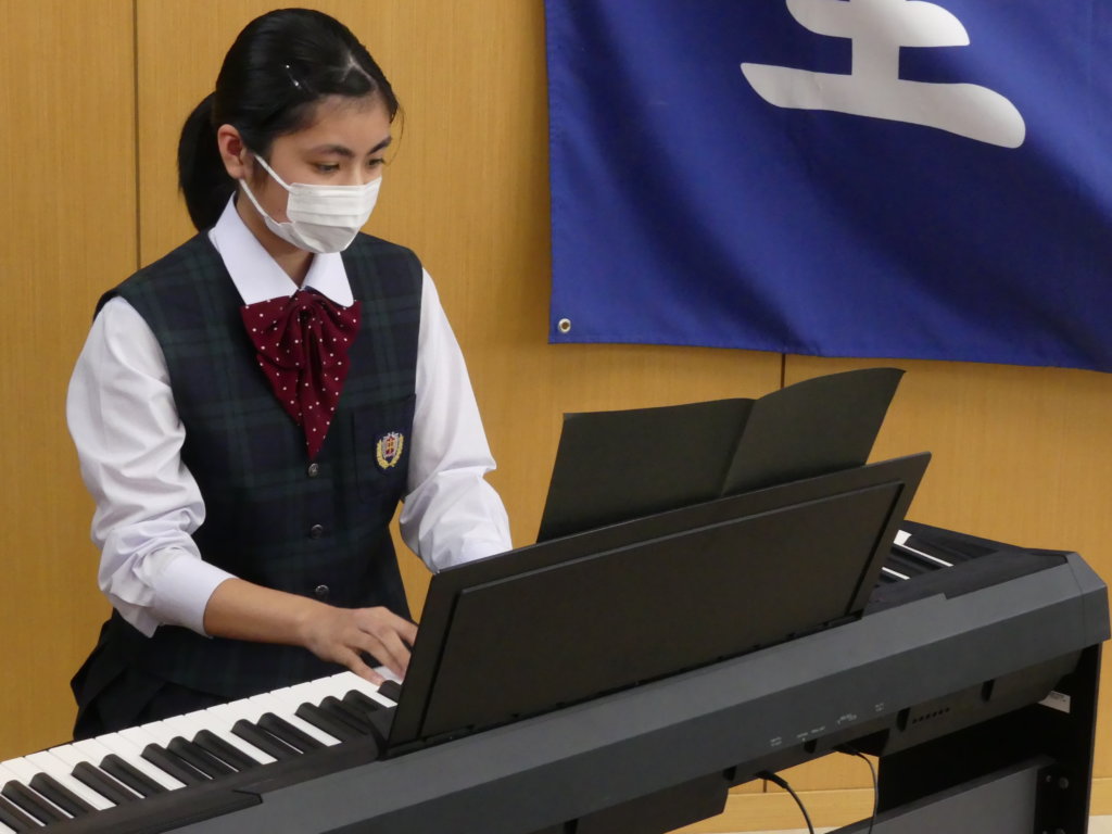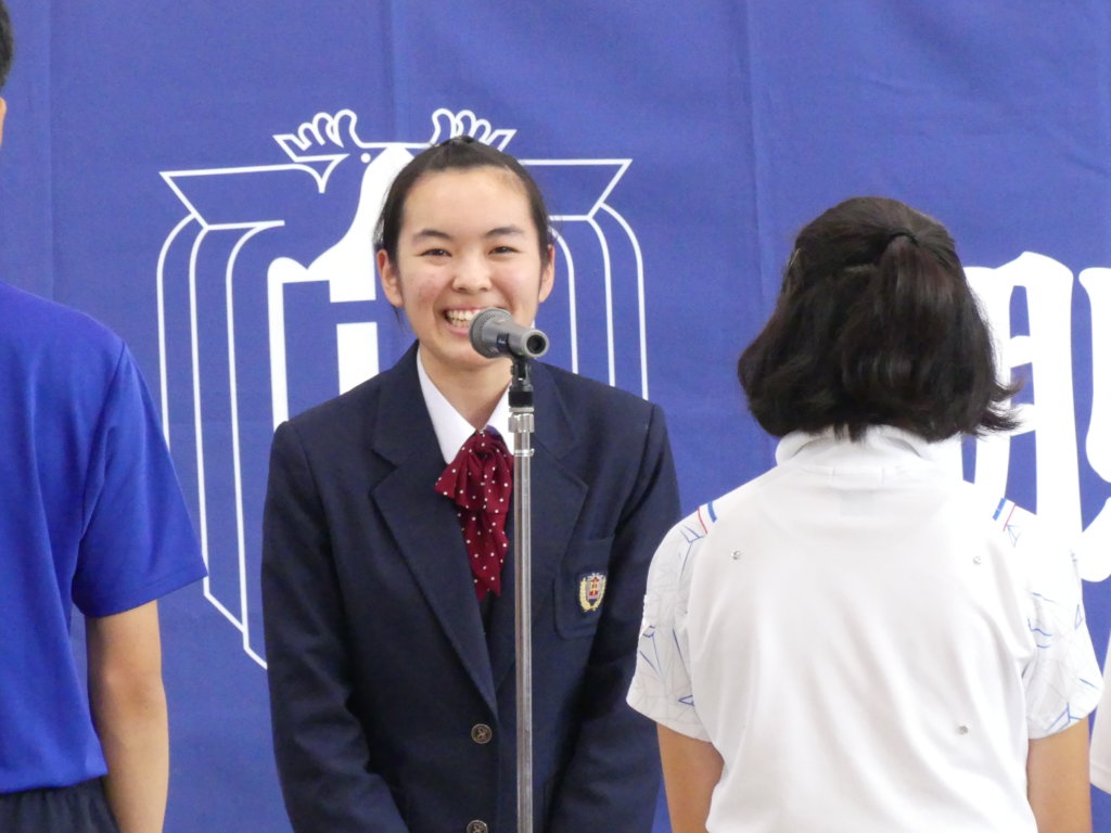 選手を代表して硬式テニス部主将のJ2A佐藤優衣さんが選手宣誓を行いました。