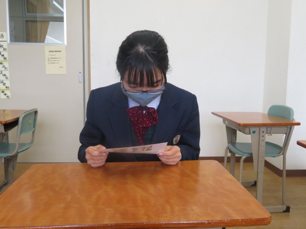 今日も土曜授業頑張っていました。 放課後は明日の英語検定2次試験に向けて面接練習を行っていました。先生からのアドバイスを活かして、明日の本番頑張ってきてください! 月曜日は、健康観察票の提出日です。忘れずに持ってきましょう。
