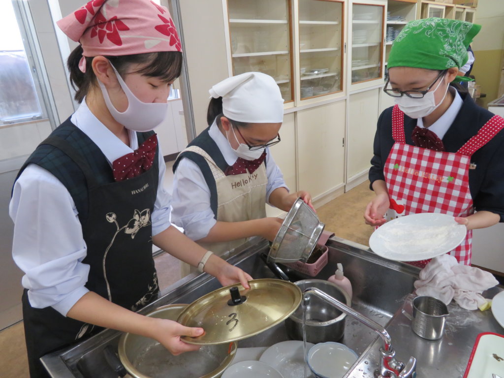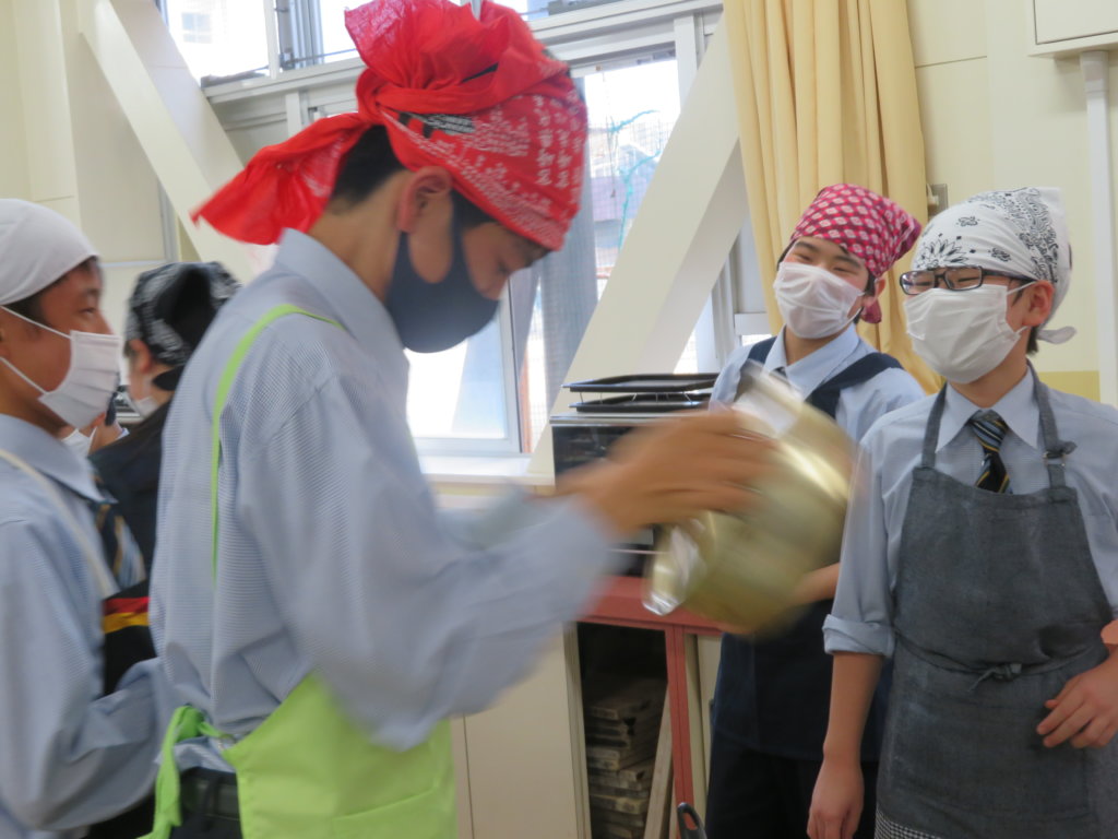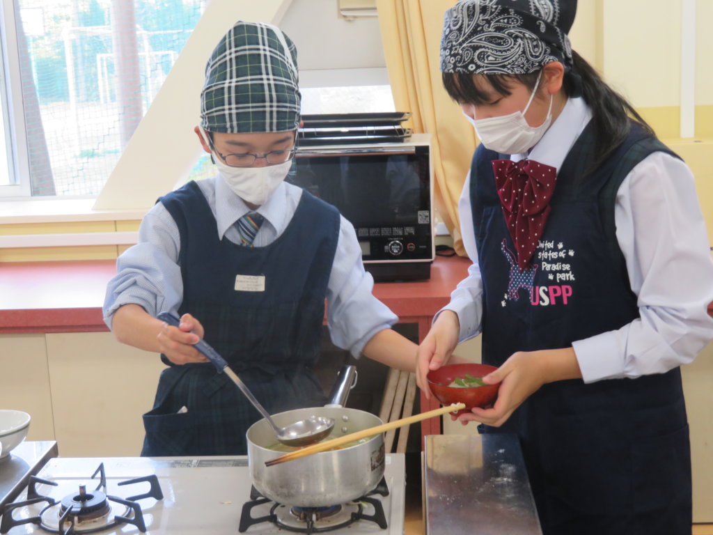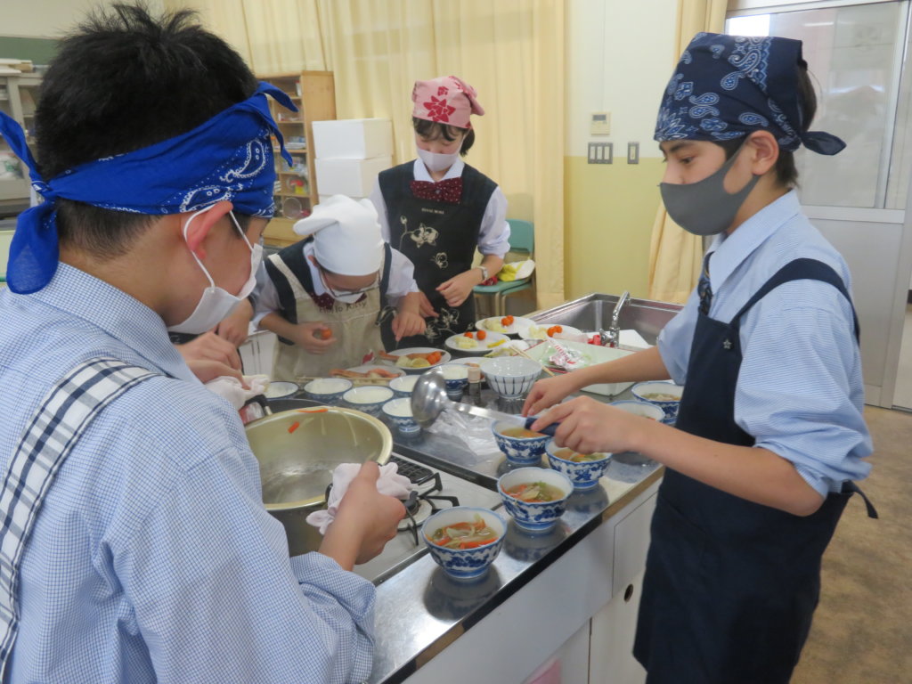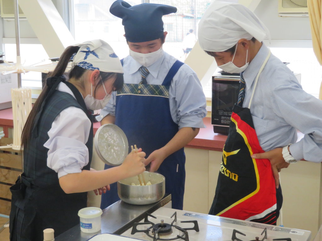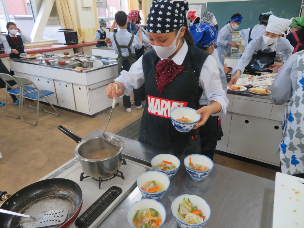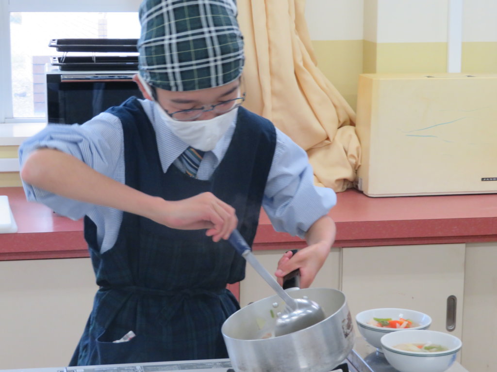 本日、J1Aの調理実習が行われました。メニューは「鮭のムニエル・こふき芋・スープ」でした。