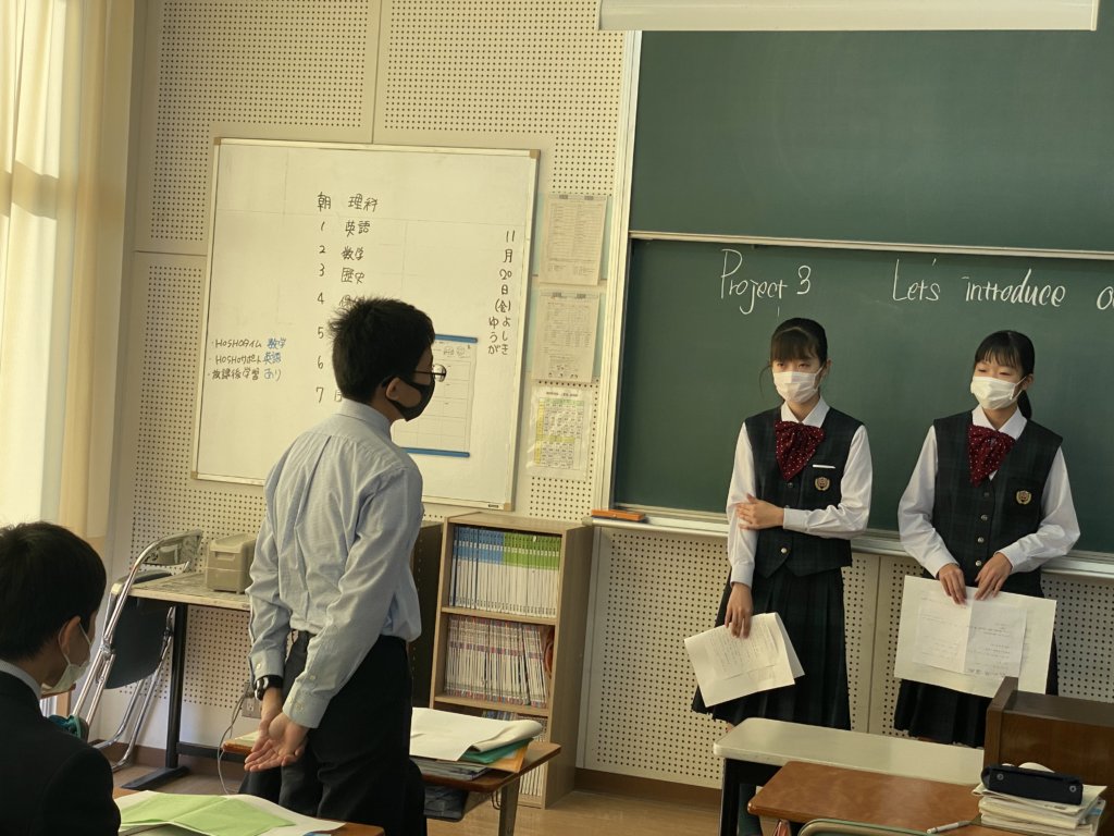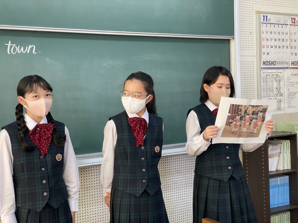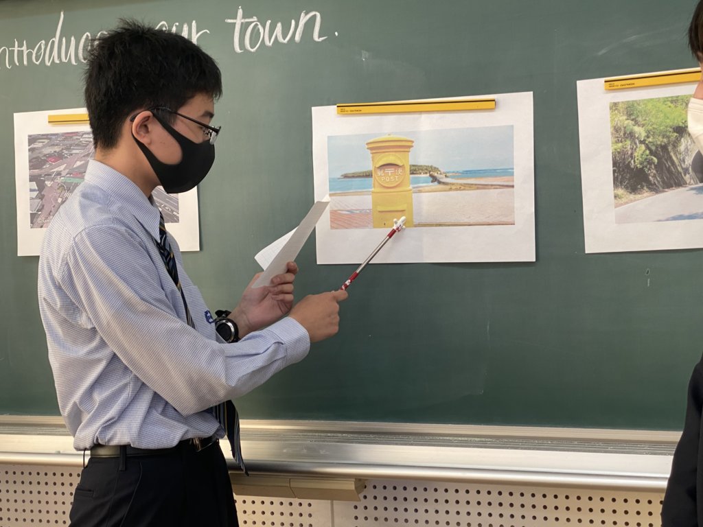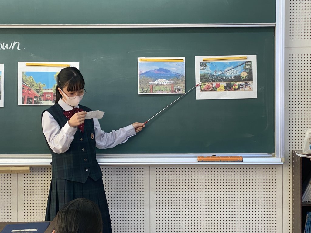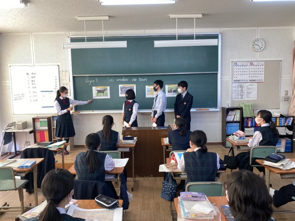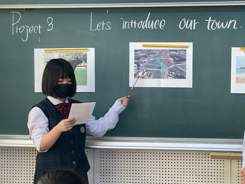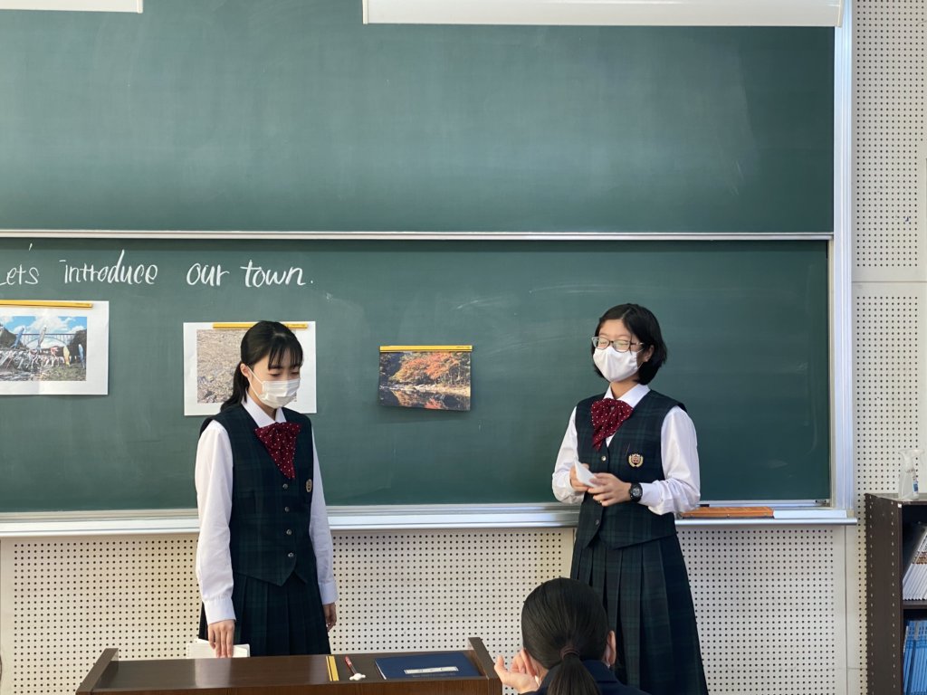 J2英語で「自分の町を紹介しよう」というテーマでプレゼンテーションを行いました。