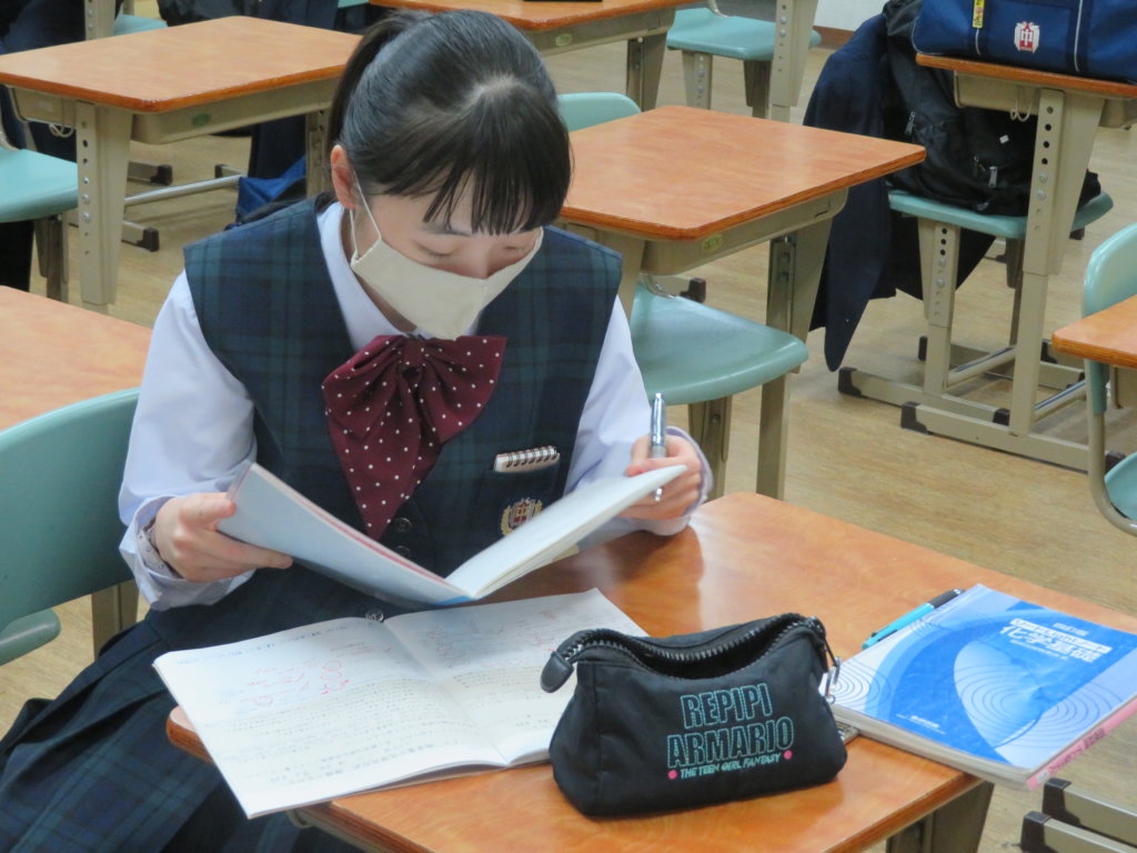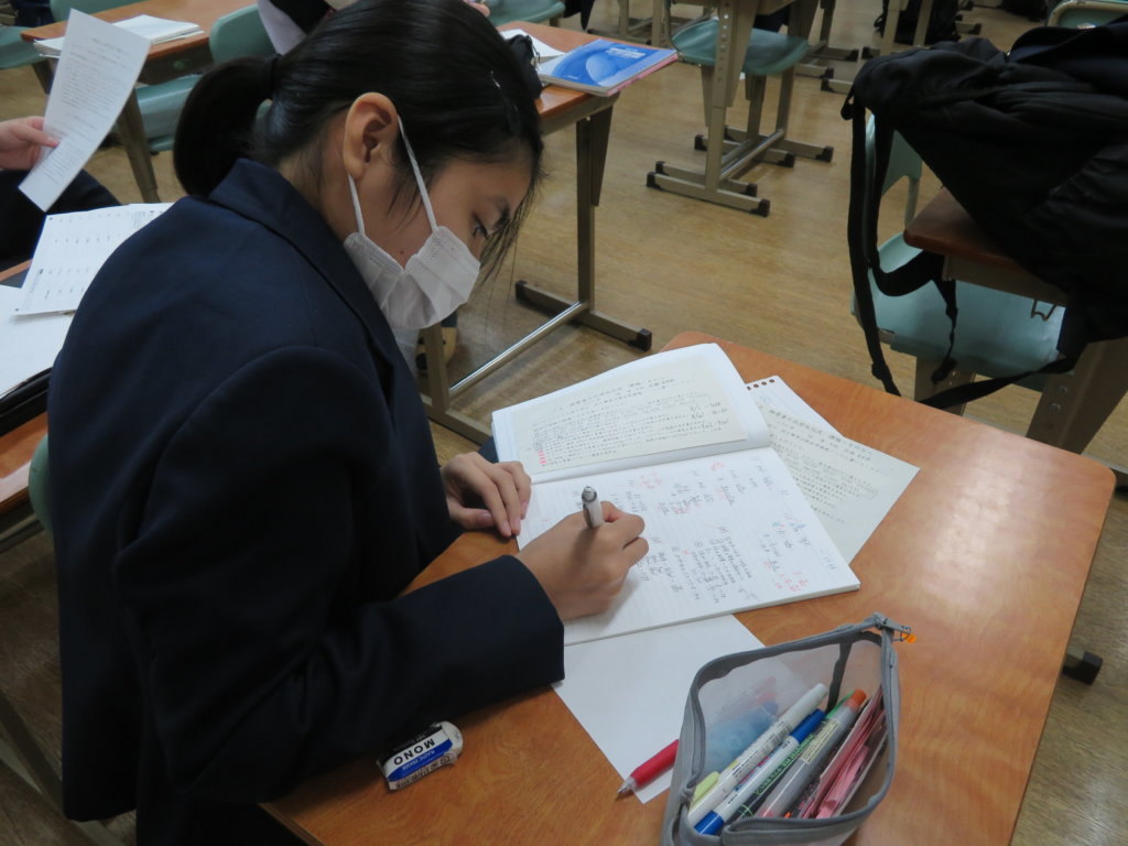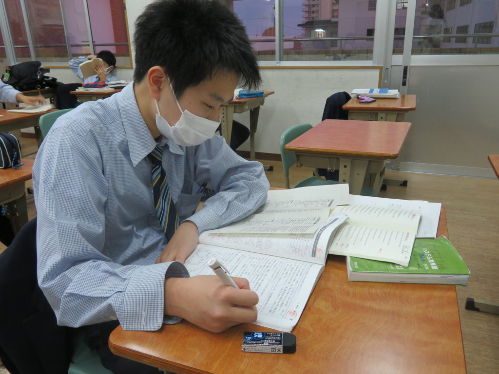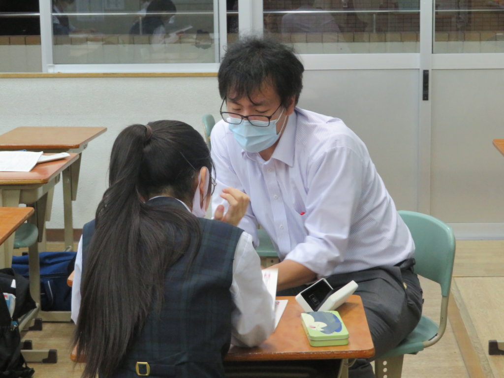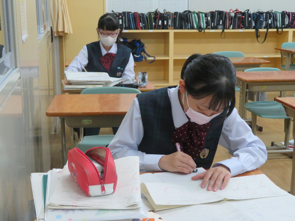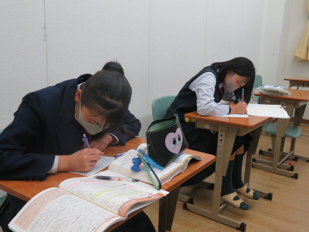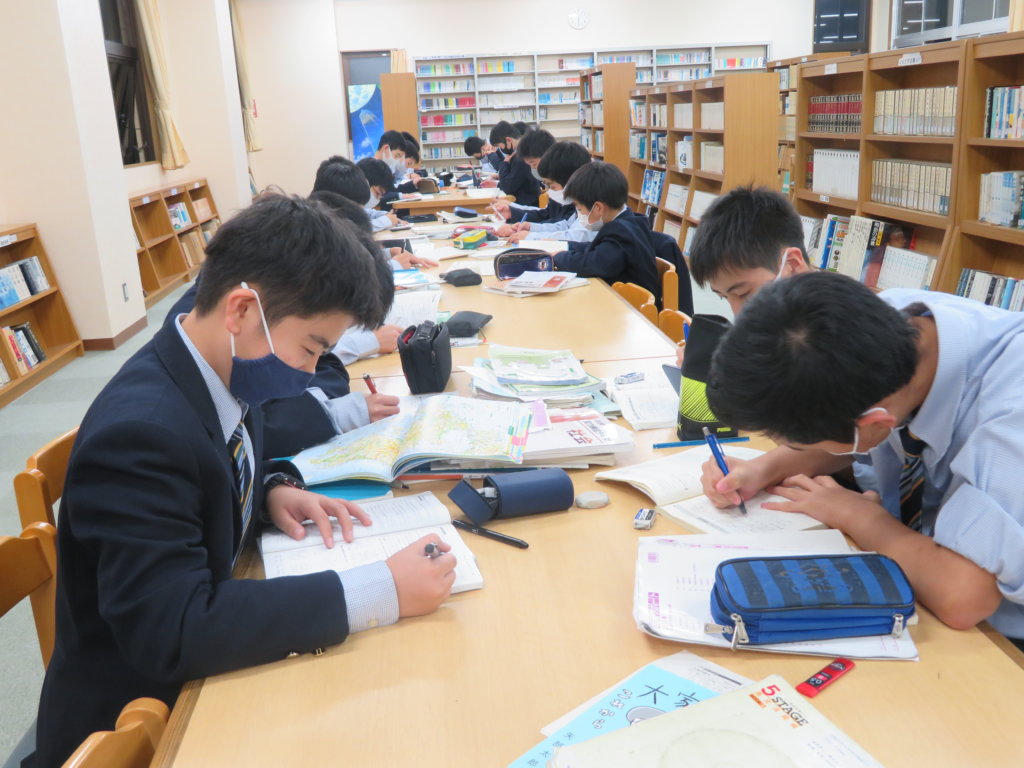 放課後の教室をのぞいてみると、教科担任の先生に質問している生徒、友人同士で教え合う生徒の姿が多く見られました。放課後学習も、静かな環境の中、集中して学習していました。