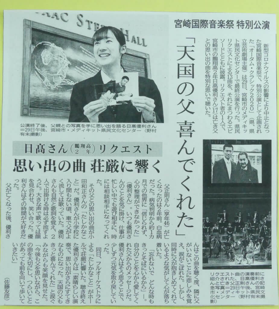 令和2年11月30日(月)付の『宮崎日日新聞』にて、中高一貫第14期生の日髙優利さん(日知屋小出身)が紹介されました。日髙さんは毎日、日向から通学しています。姉の第12期生日髙美優さんは現在、九州大学法学部1年生です。鵬翔中学校在学当時から姉妹で頑張っていた2人です。