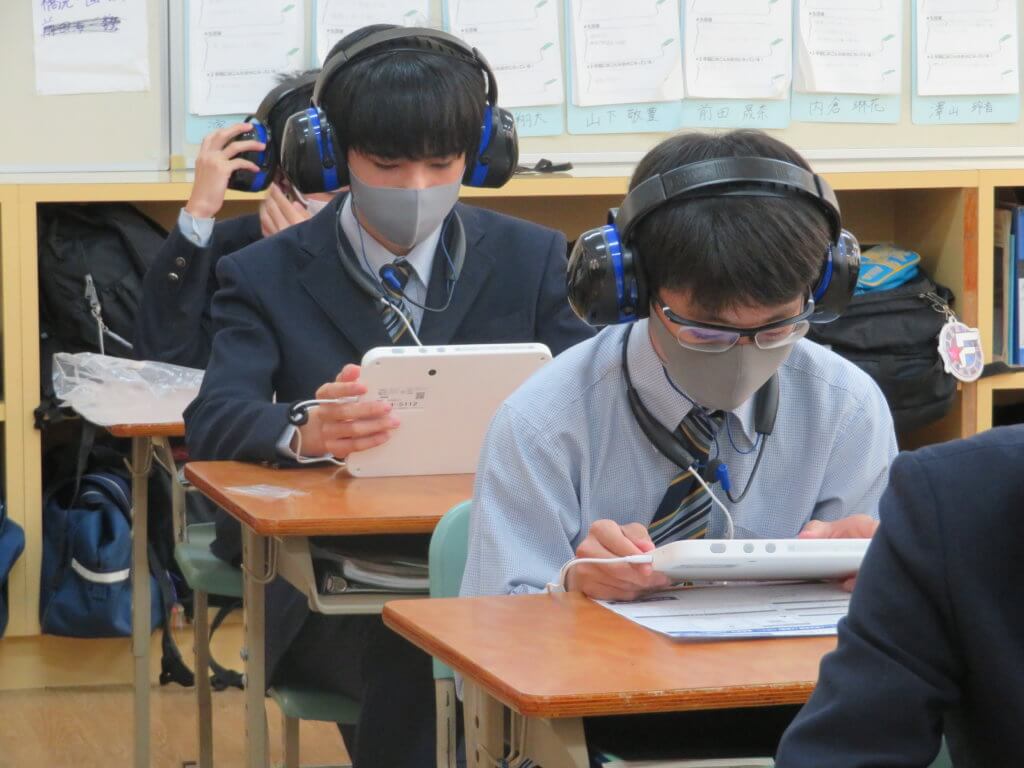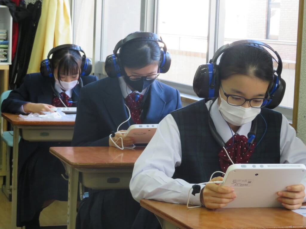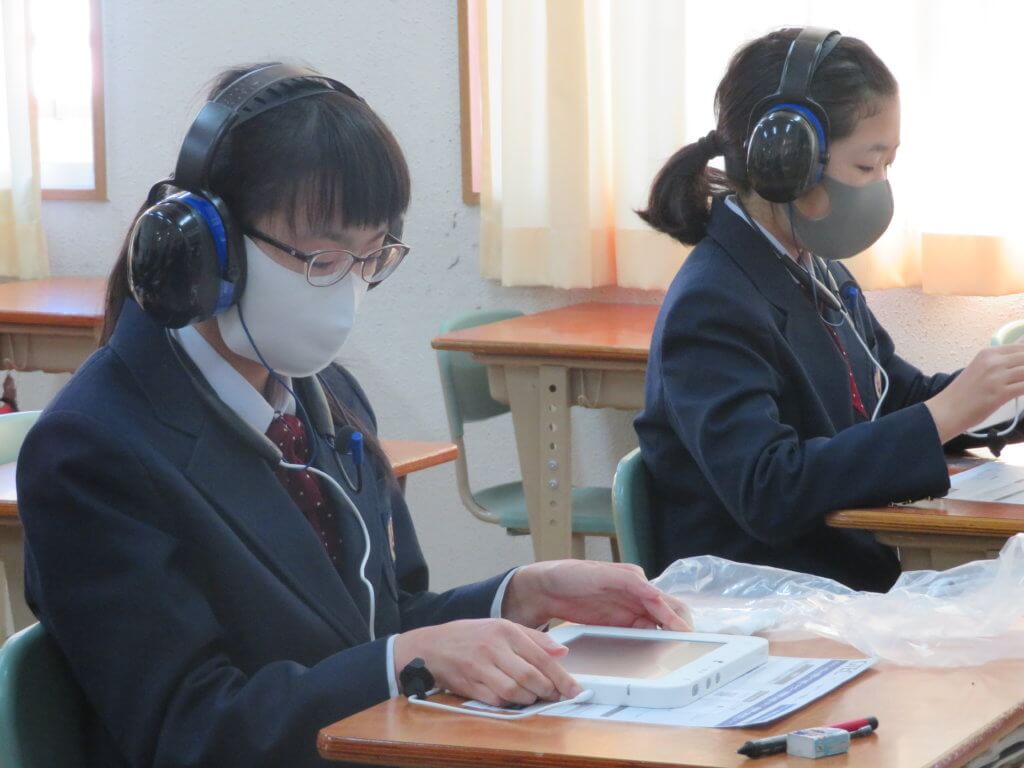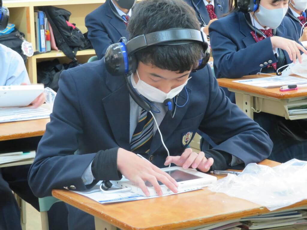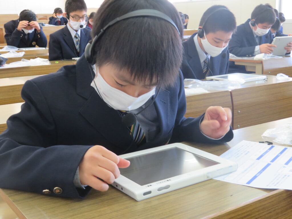 GTECの試験は、タブレットを使い音声を録音し採点を行います。慣れない面もあったかと思いますが、J1生も一生懸命発音していました。