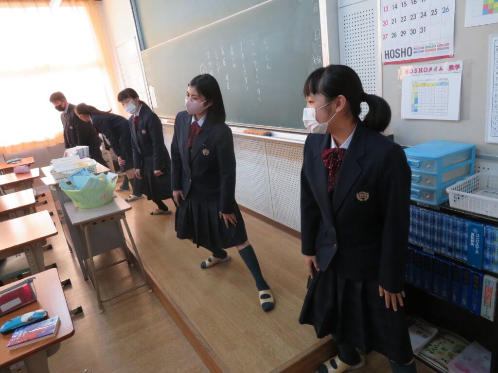 保健体育委員会ではファミリーマッチに向けた準備体操の練習をしていました。