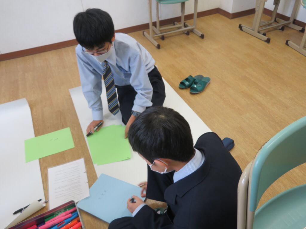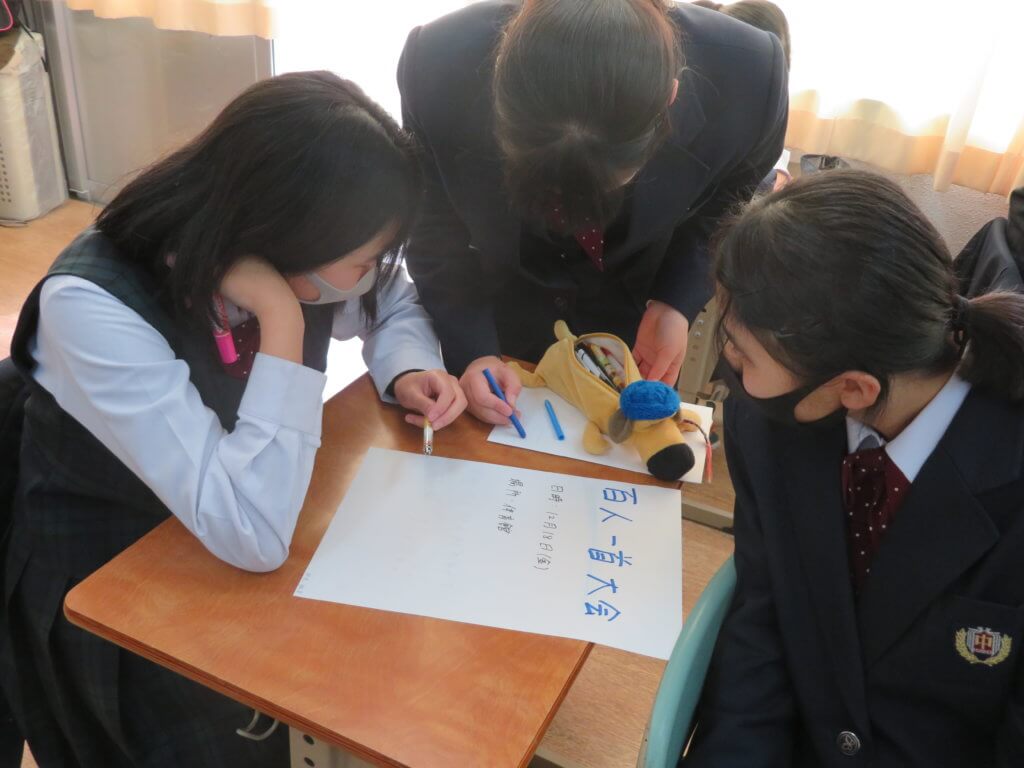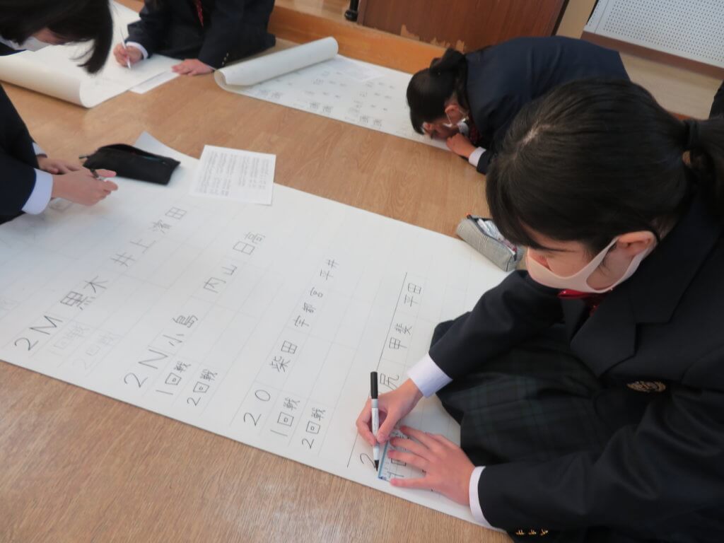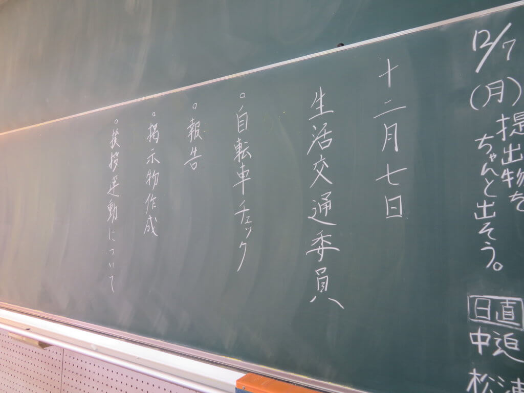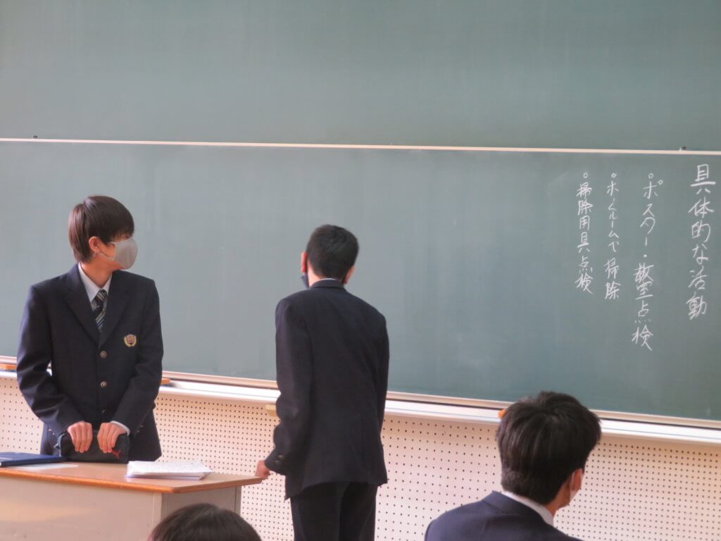 美化委員会は次の活動計画を立てていました。生活委員会は自転車チェックを行い掲示物作成をしていました。文化委員会は百人一首大会の準備に取り掛かっていました。学習員会では百人一首大会のポスター作成をしていました。生徒会はファミリーマッチの企画をしていました。