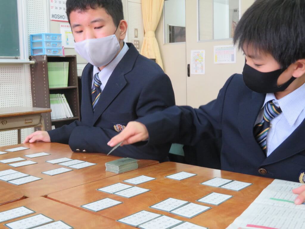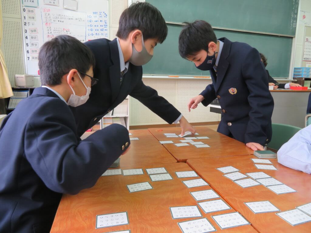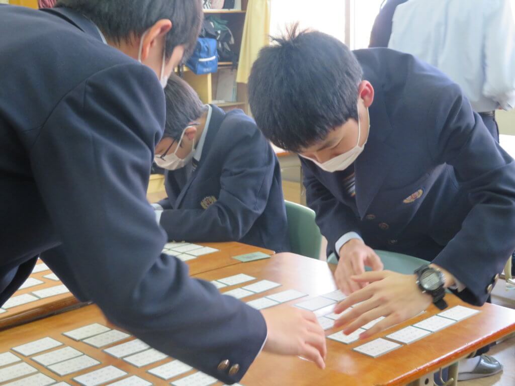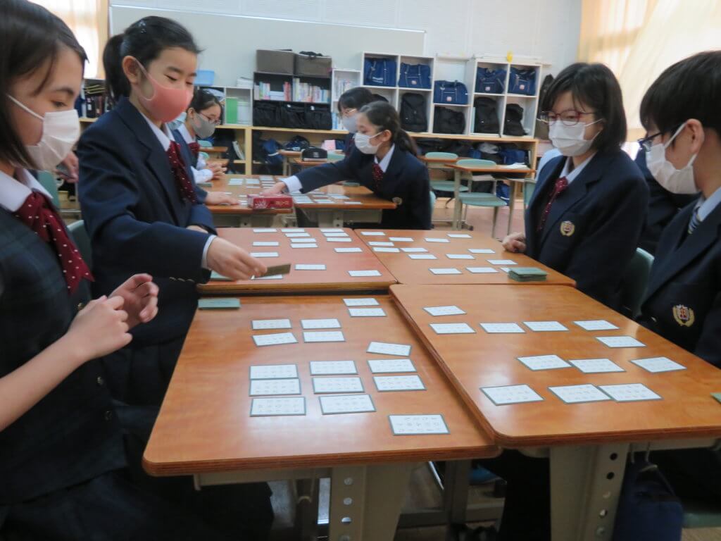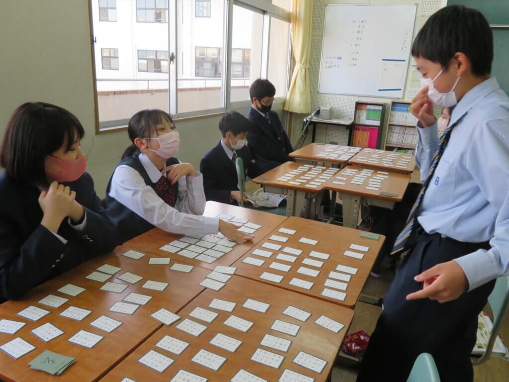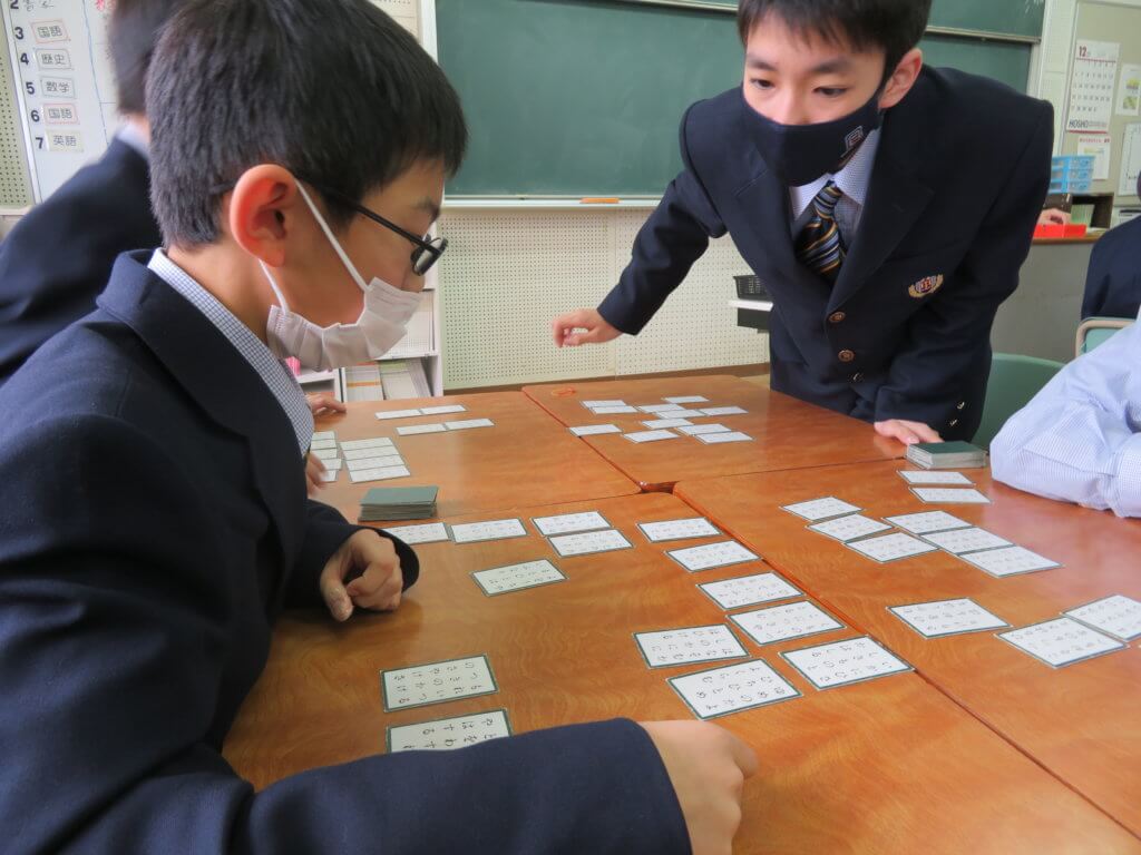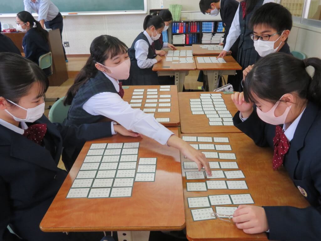百人一首大会が1週間後に近づいてきました。J1・J2の国語の授業では百人一首の練習をしていました。初めは札を探すのに苦労していた1年生ですが、今では覚えた句も増えてきたようです。