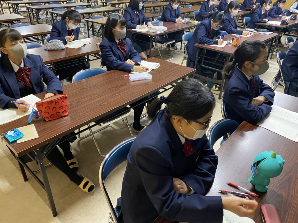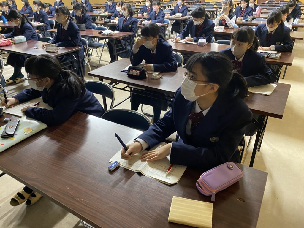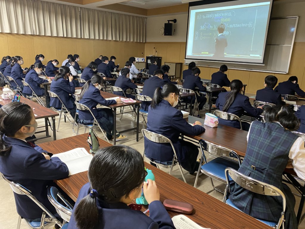 J3生はサテライトの衛星授業を受講していました。メモを取りながら真剣に受講していました。
