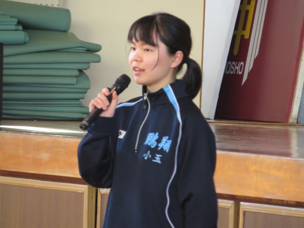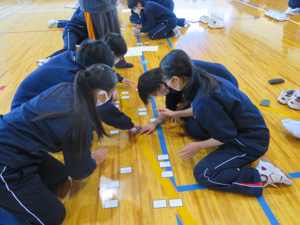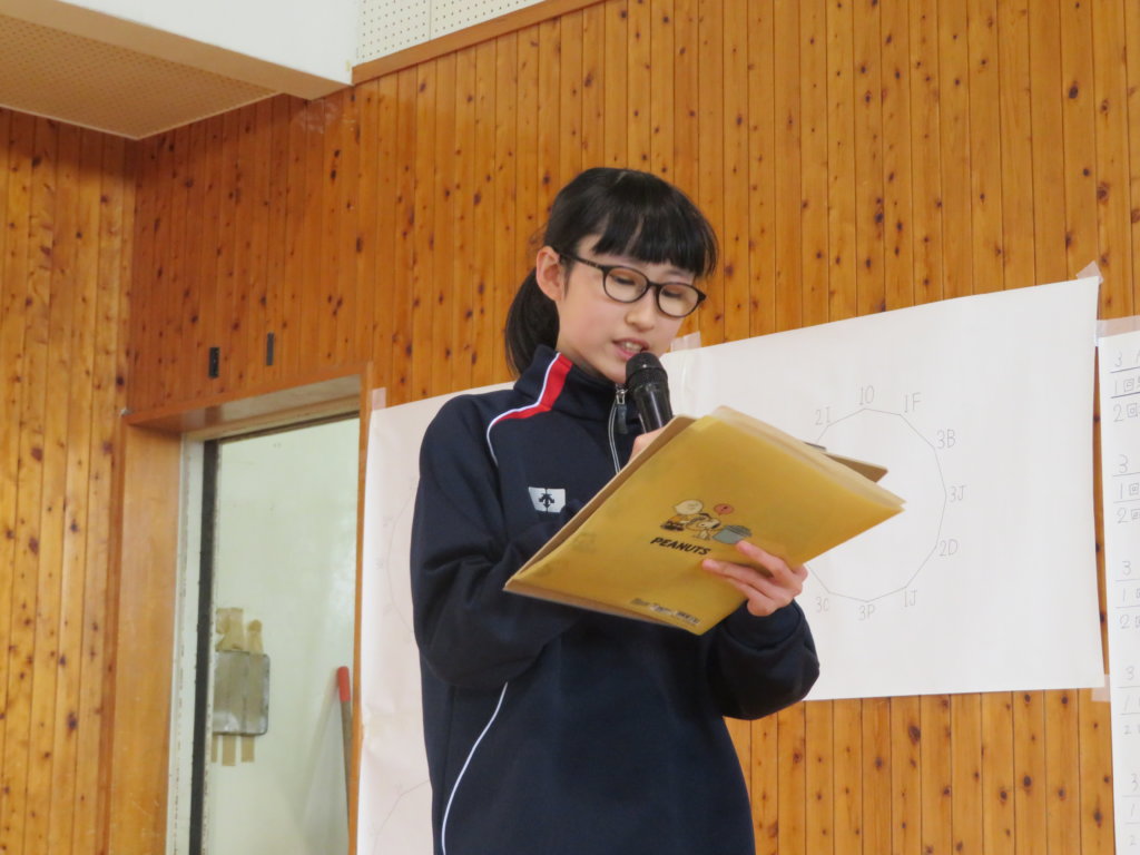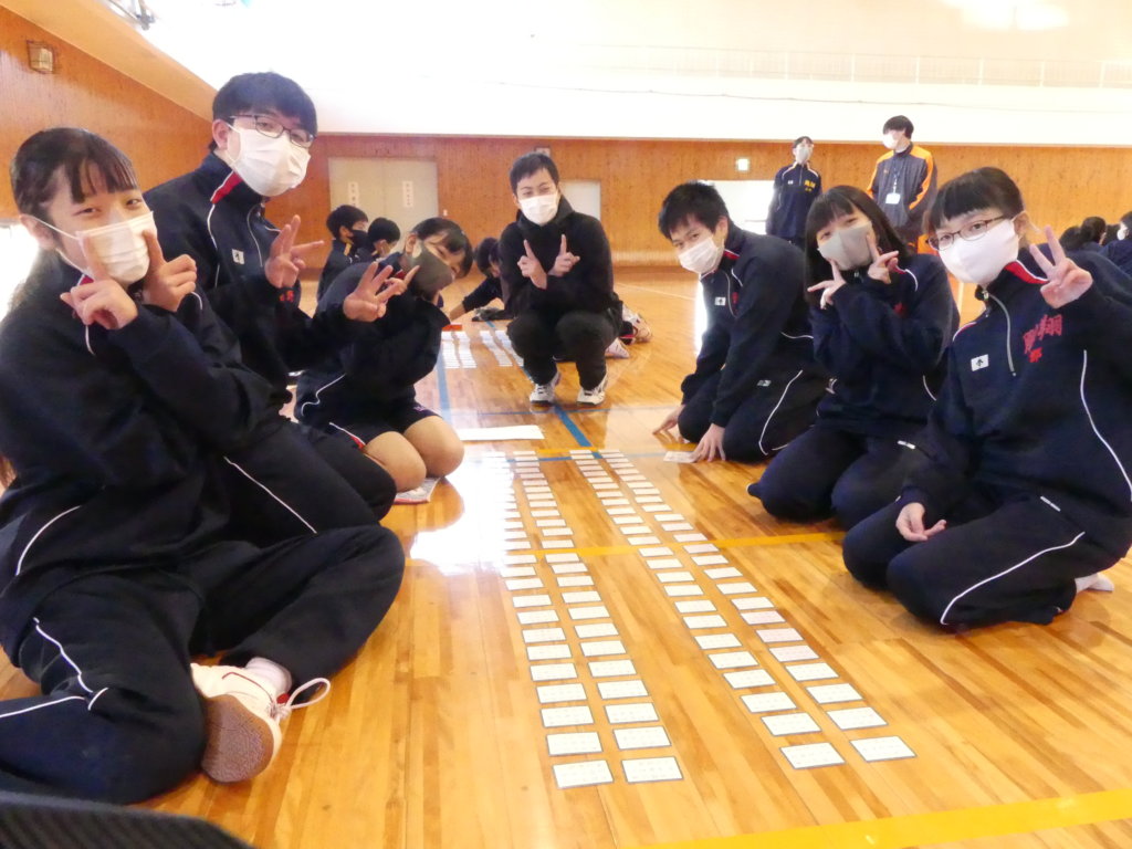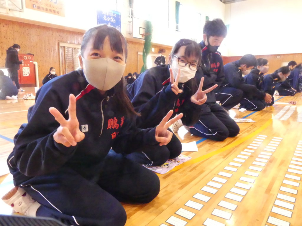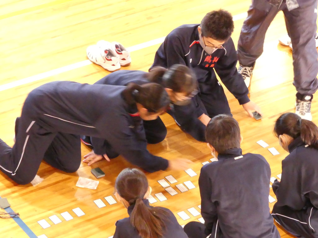 今日は百人一首大会の様子をお届けします。百人一首大会は、文化委員会を中心に準備しています。当日の司会や札並べも文化委員会が行いますす。当日の準備等は生徒会の皆さんにも協力してもらいました。