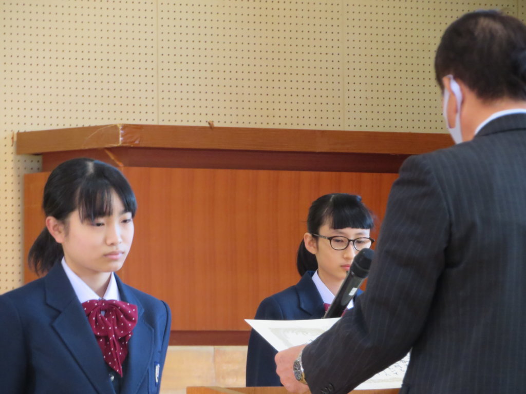 表彰後は川﨑校長先生の講話があり、教務主任安田先生、生徒指導部主任宮﨑先生のお話がありました。