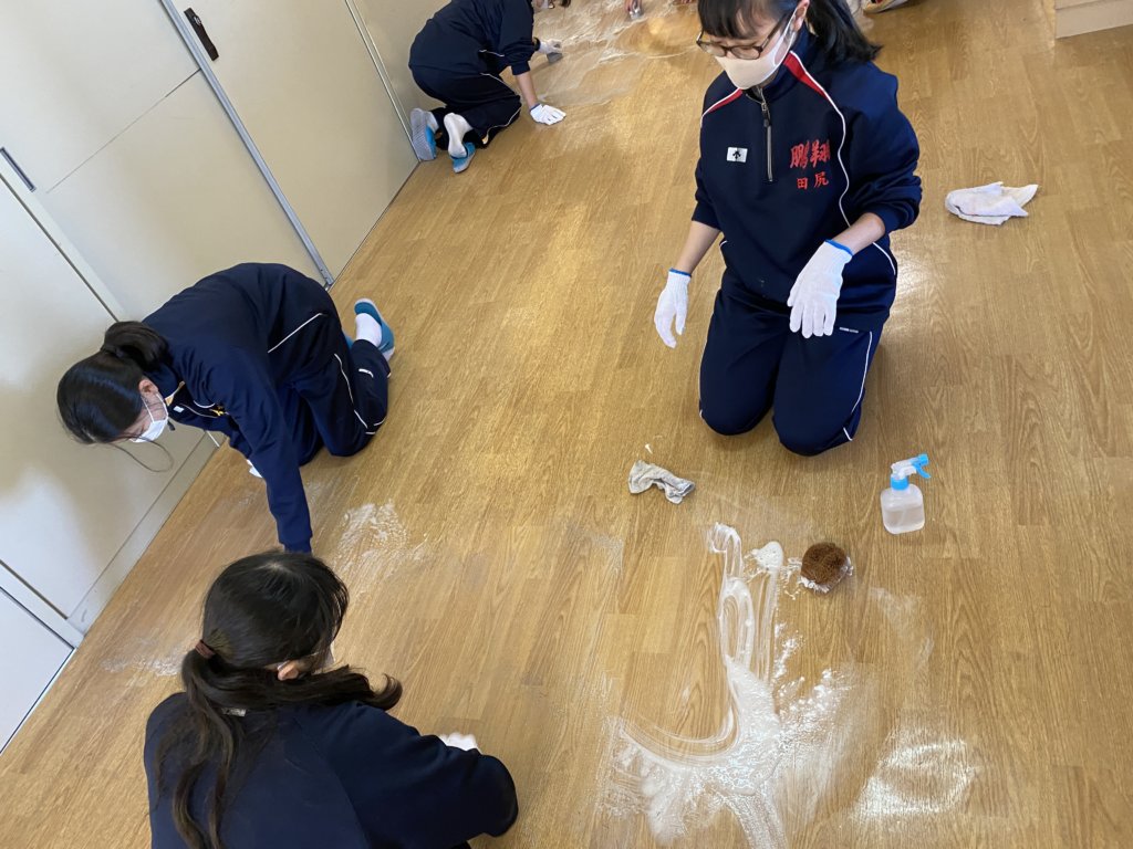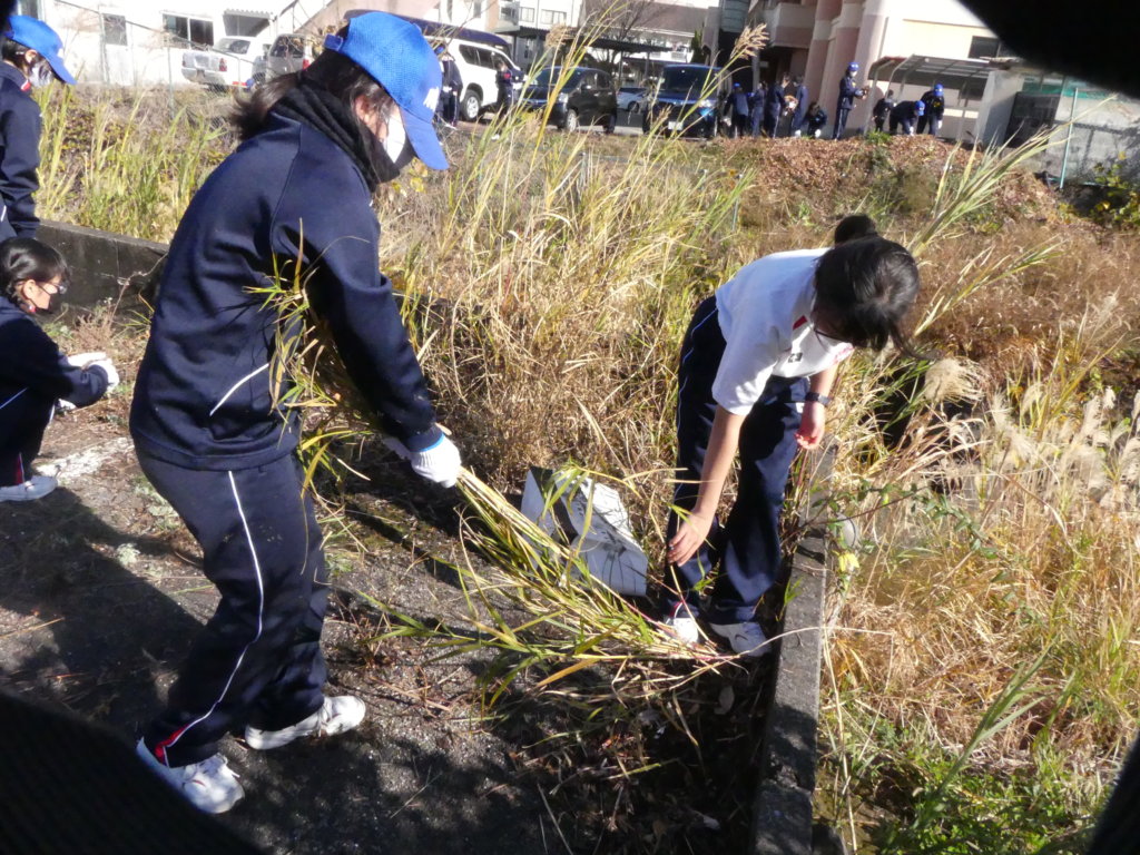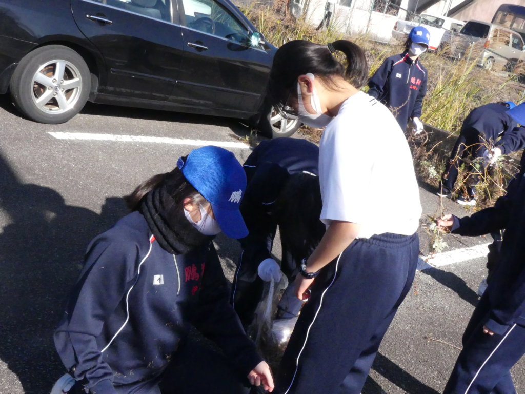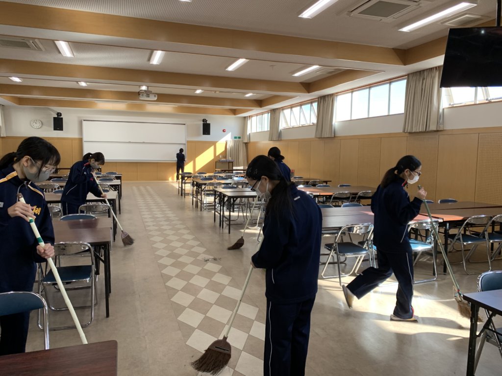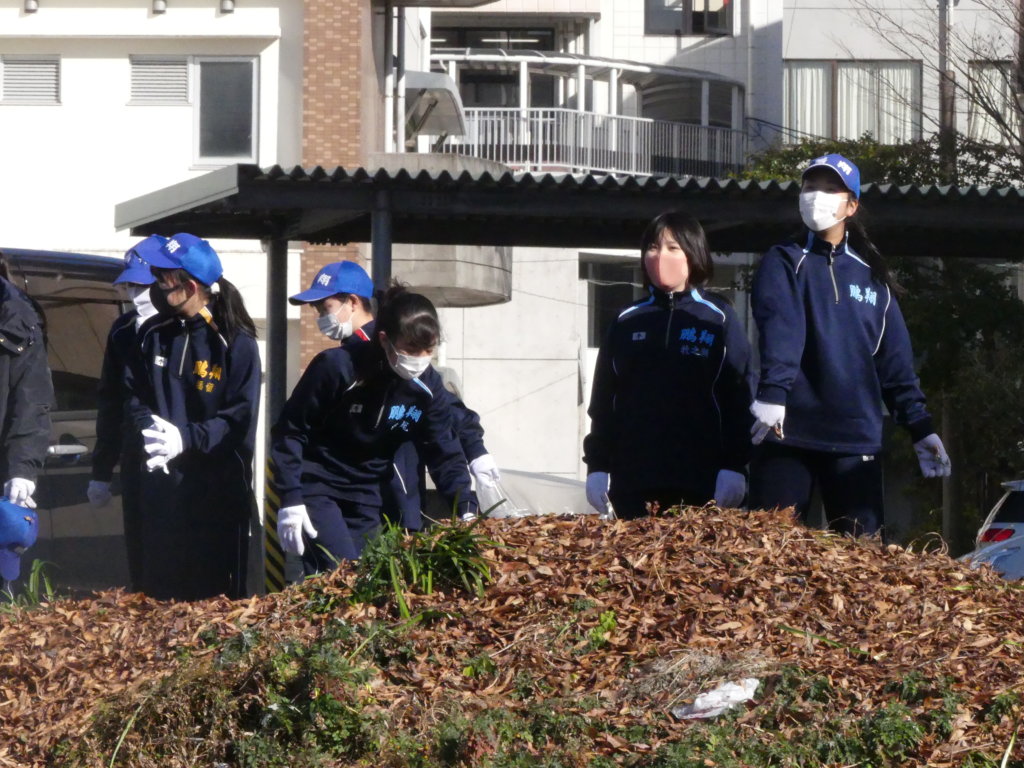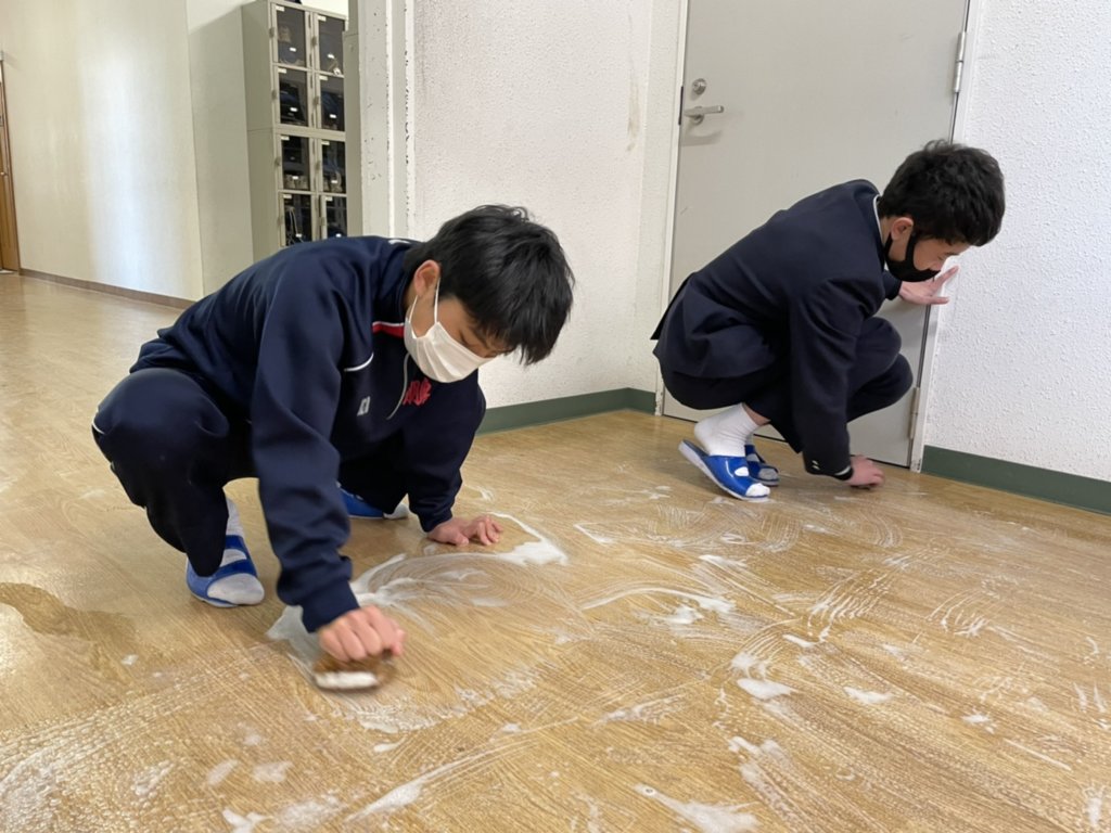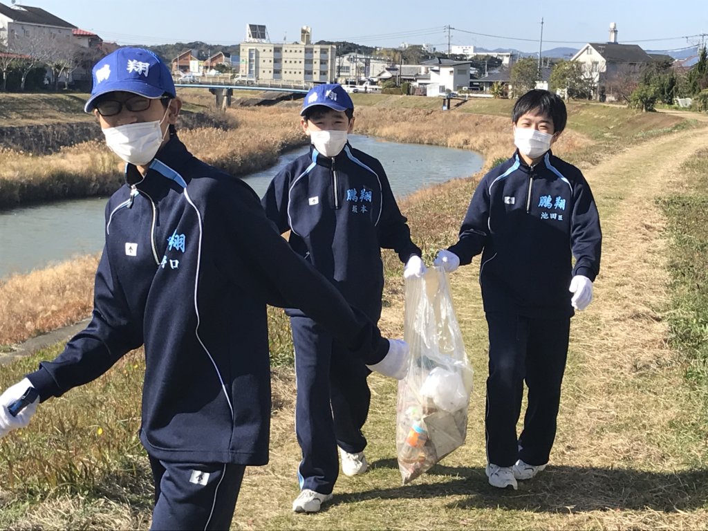 今日は、ファミリー交流会を行いました。交流会で行った清掃ボランティアの様子をお届けします。鵬翔中学校では、ファミリー制度という縦割りの班活動を取り入れています。各ファミリーにわかれて、学校の清掃を行いました。