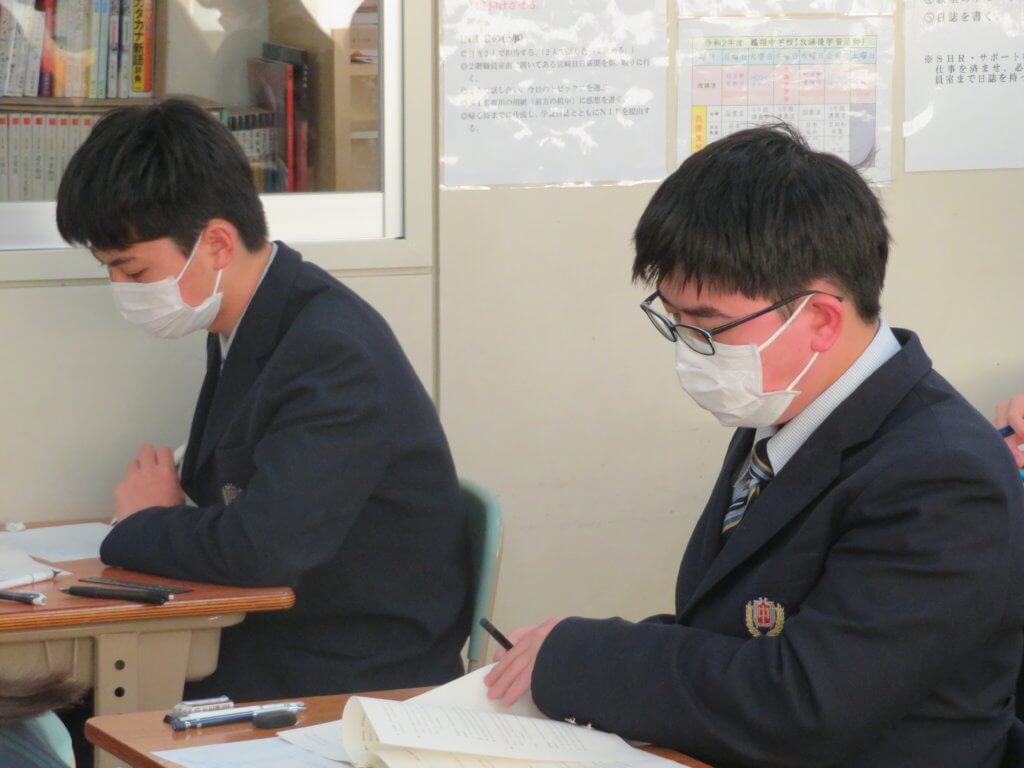 J2生は高校入試も近づいています。体調管理に気を付けて過ごしてください。