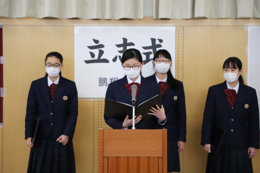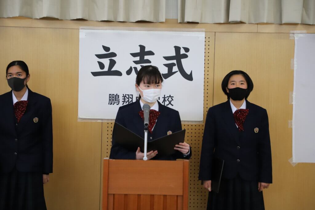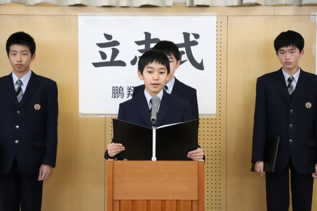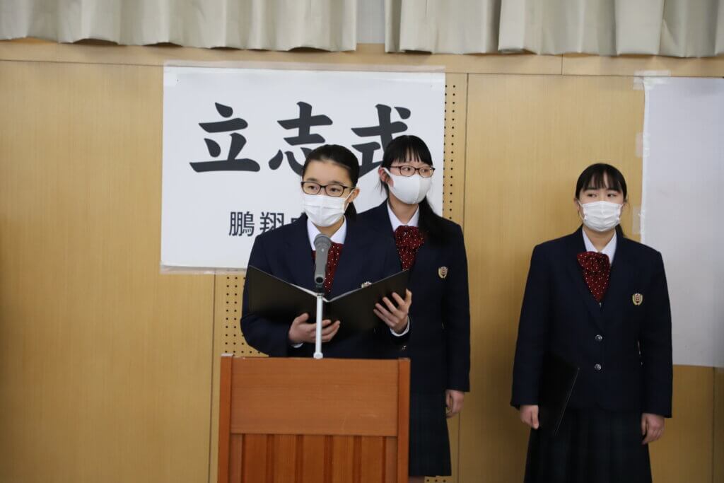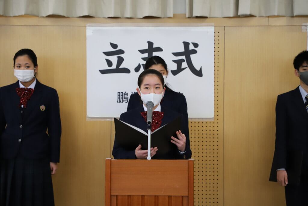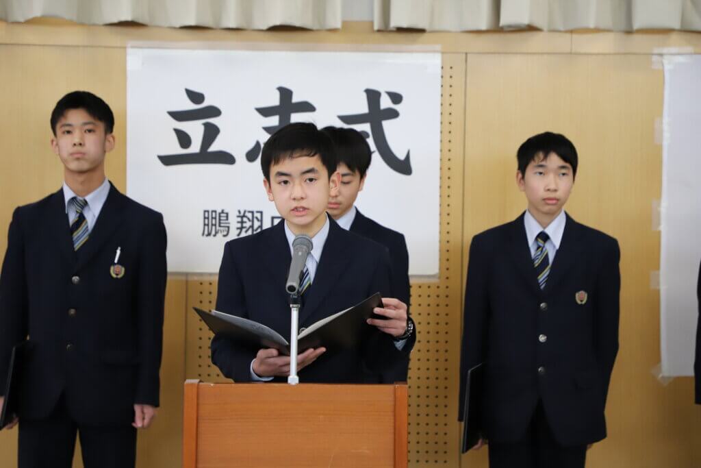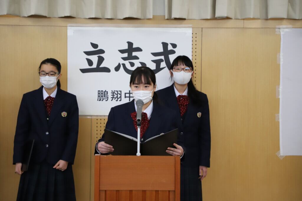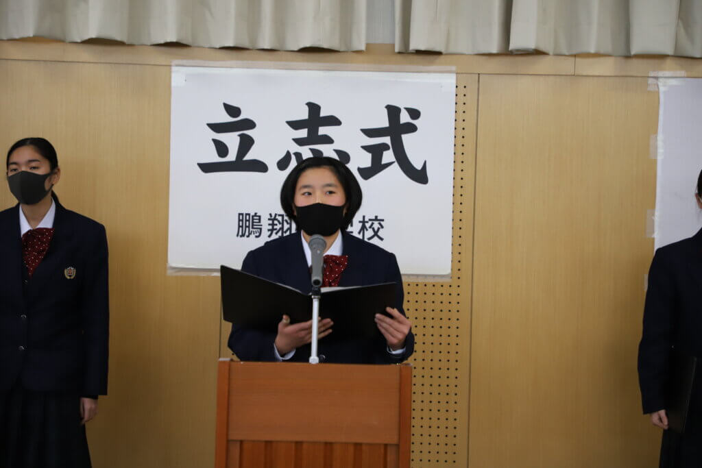 先日行われた立志式の様子です。 伴奏 J2B平田萌音さん(宮崎小出身)指揮 J2A赤池瑛仁さん(宮﨑南小出身) J2Aの立志宣言の様子です。それぞれの思いを堂々と発表していました。 次回はJ2Bの立志宣言の様子をお届けします。