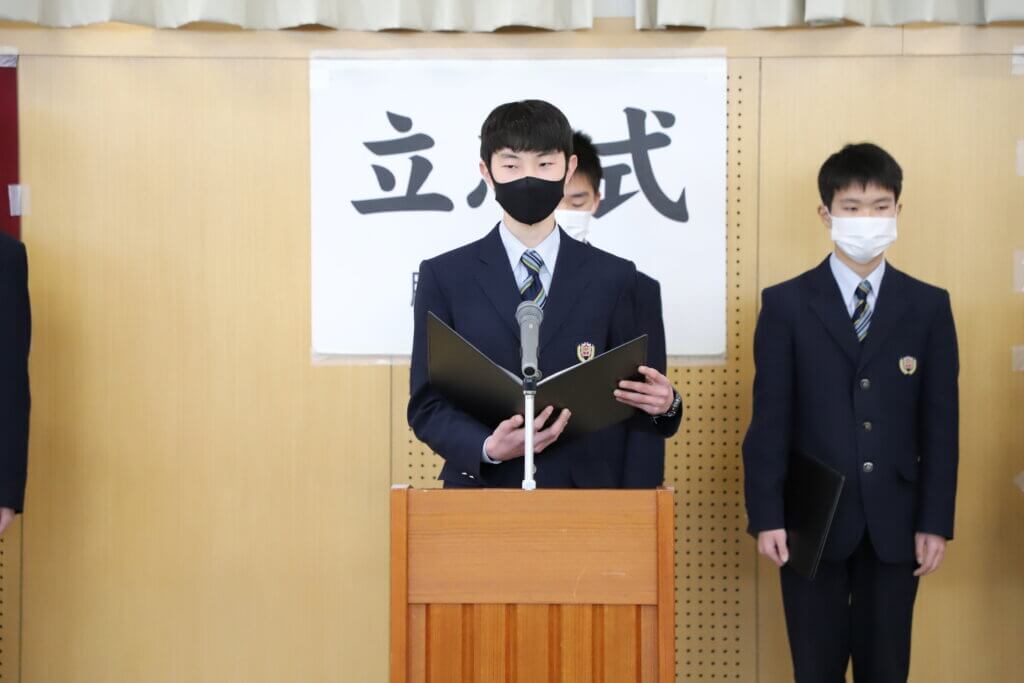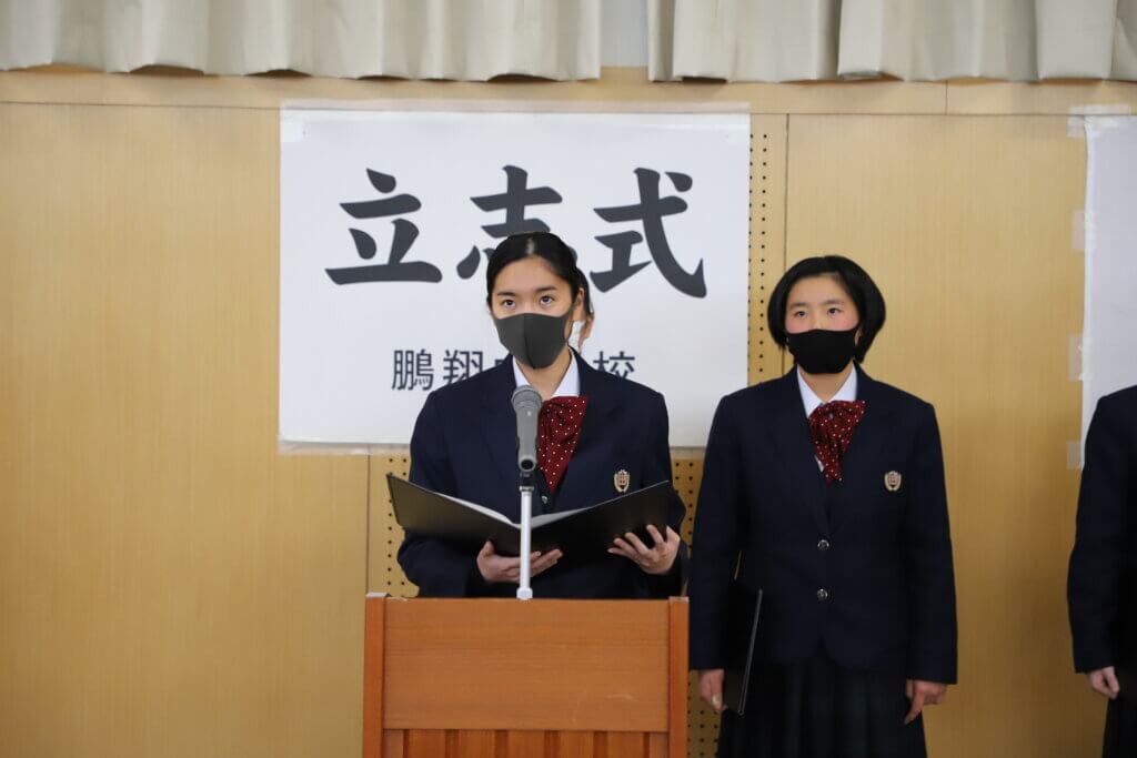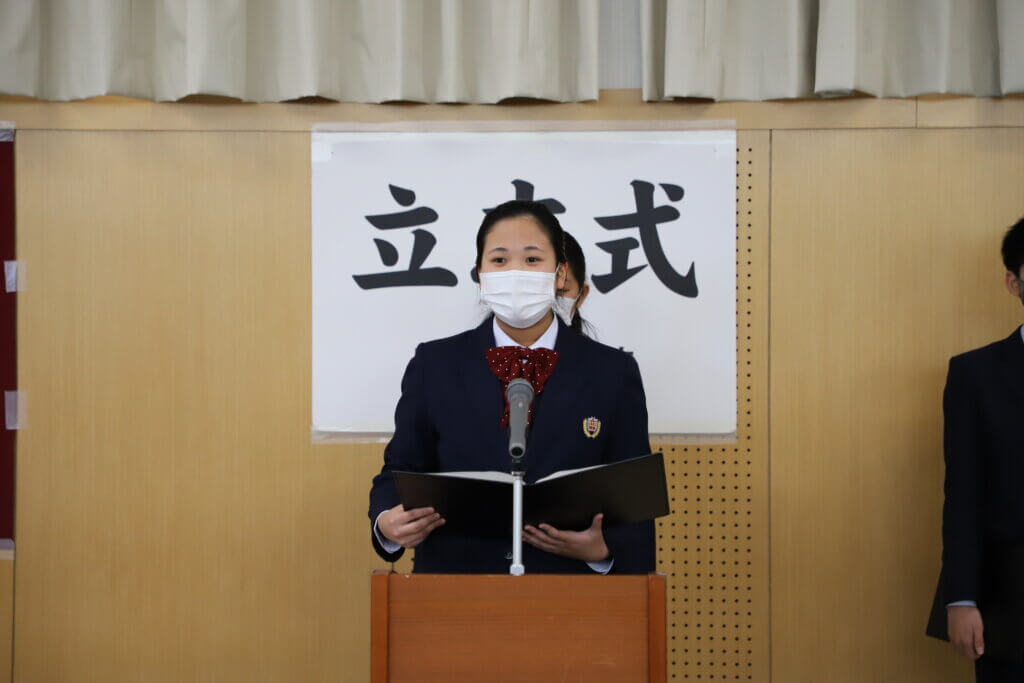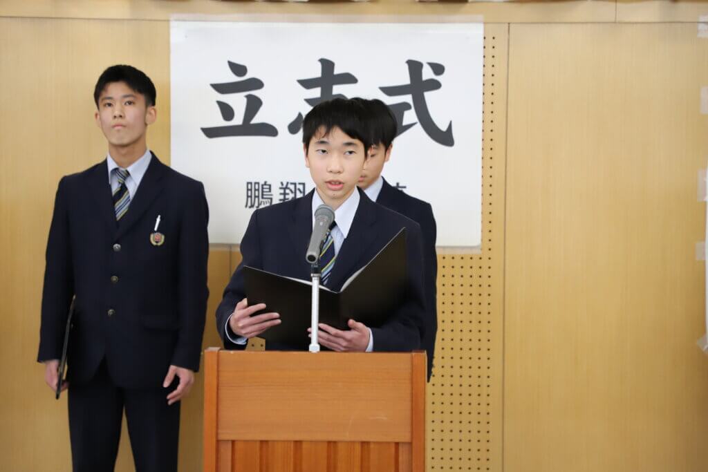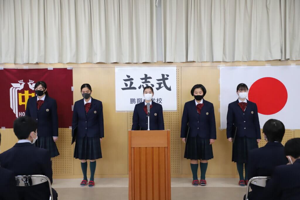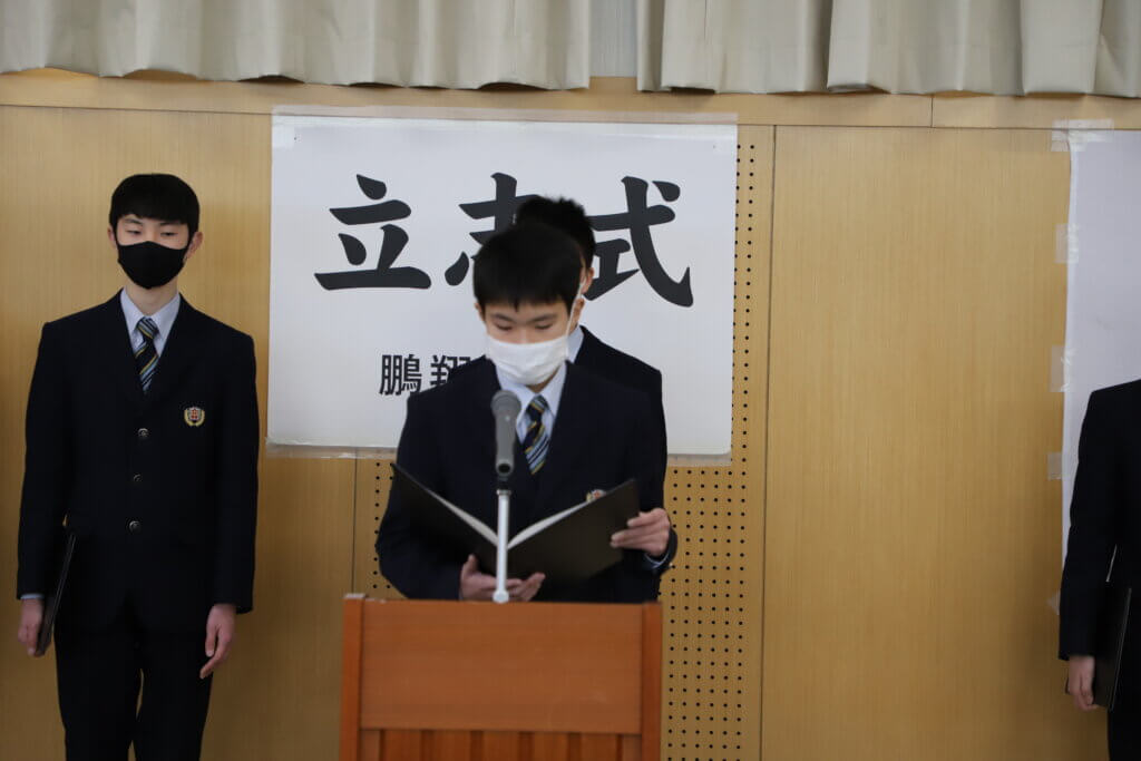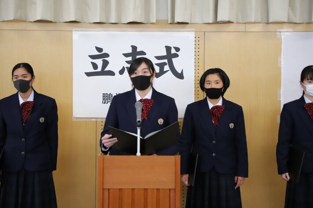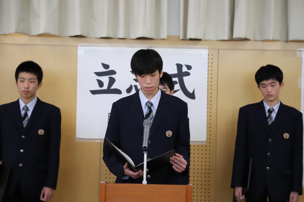 先日行われた立志式の様子です。 伴奏 J2B平田萌音さん(宮崎小出身)指揮 J2A赤池瑛仁さん(宮﨑南小出身) J2Aの立志宣言の様子です。それぞれの思いを堂々と発表していました。 次回はJ2Bの立志宣言の様子をお届けします。