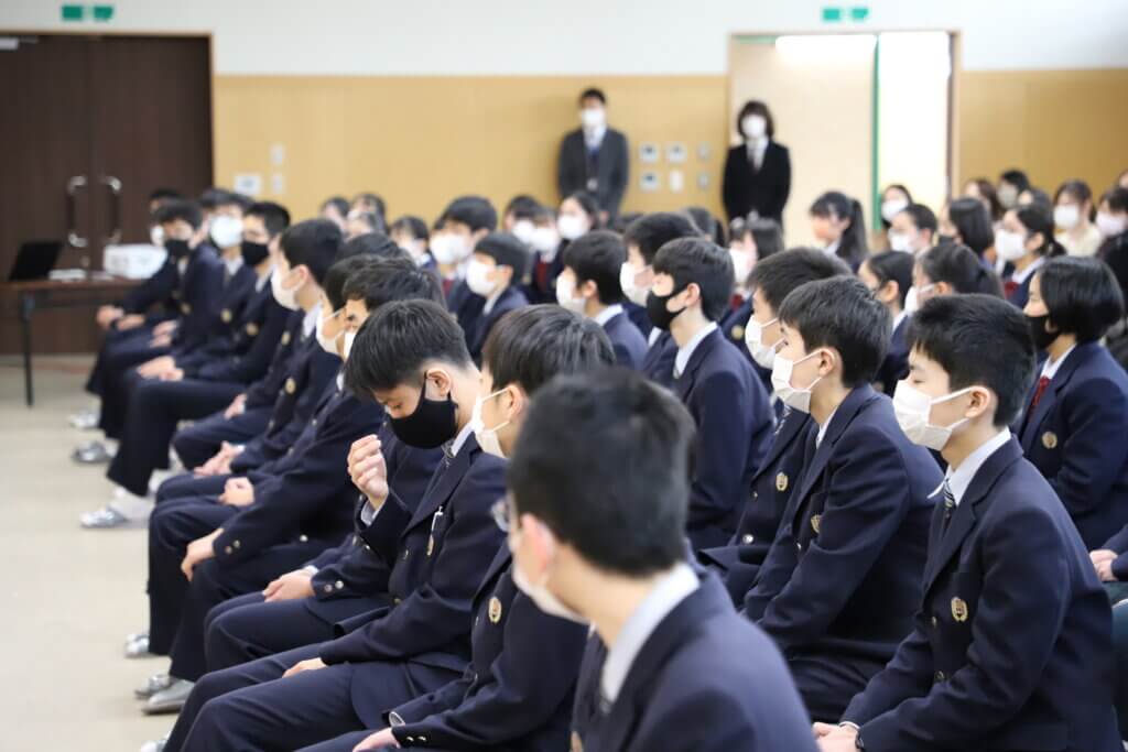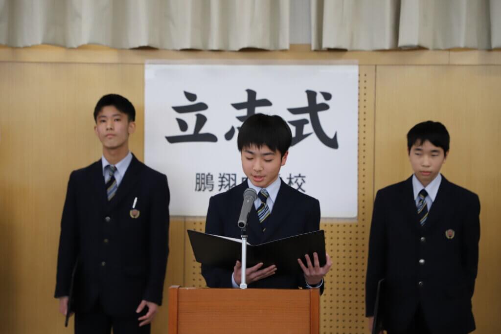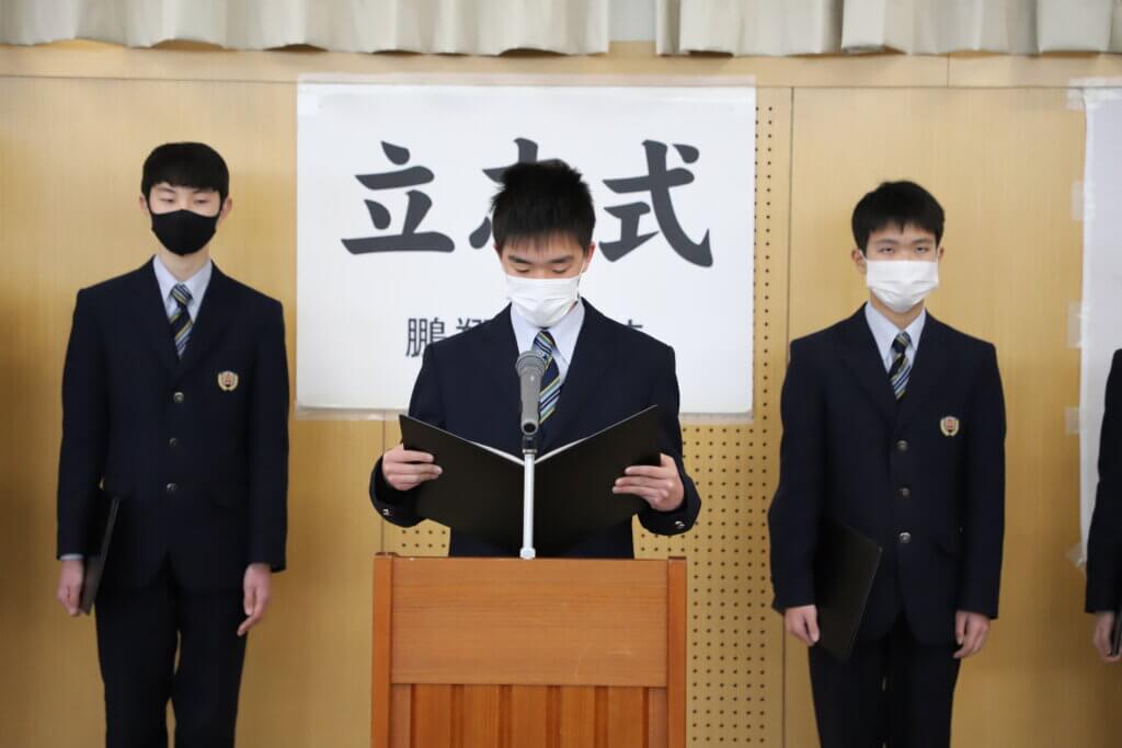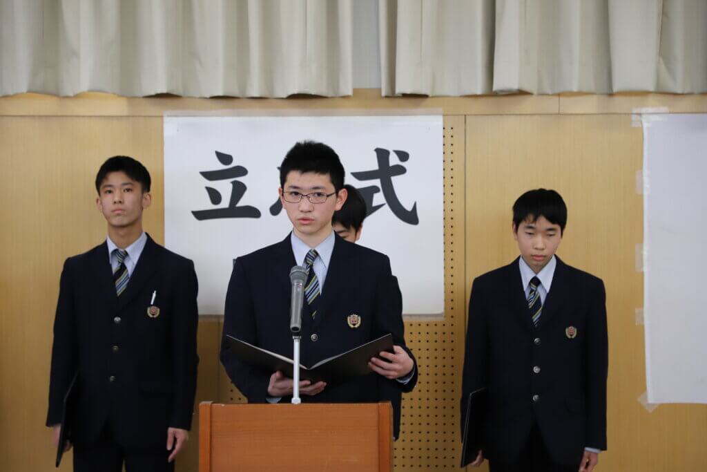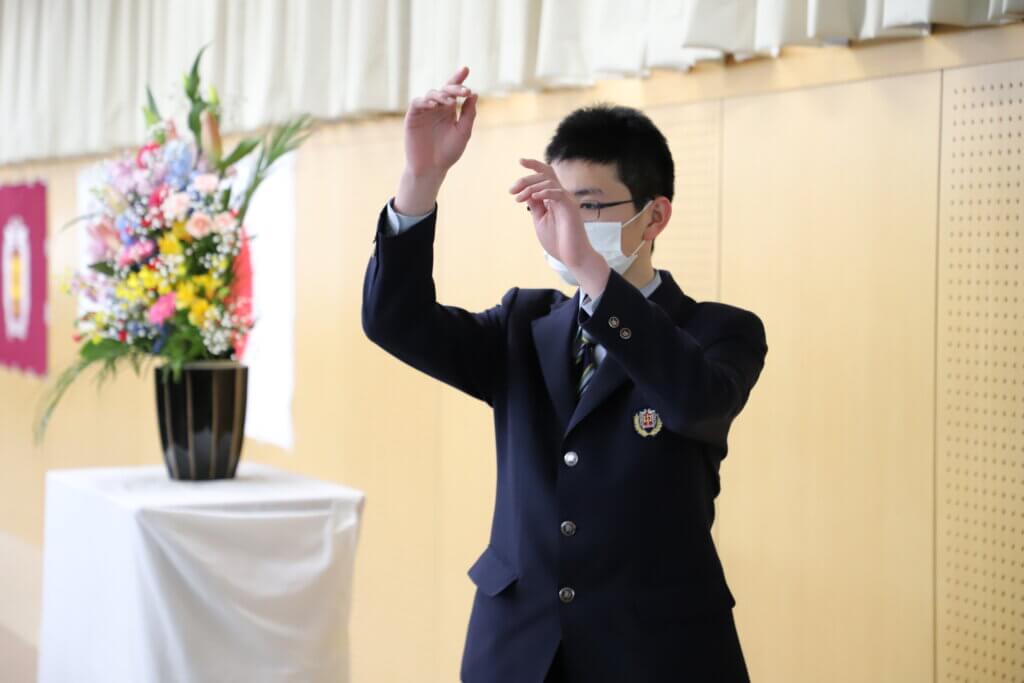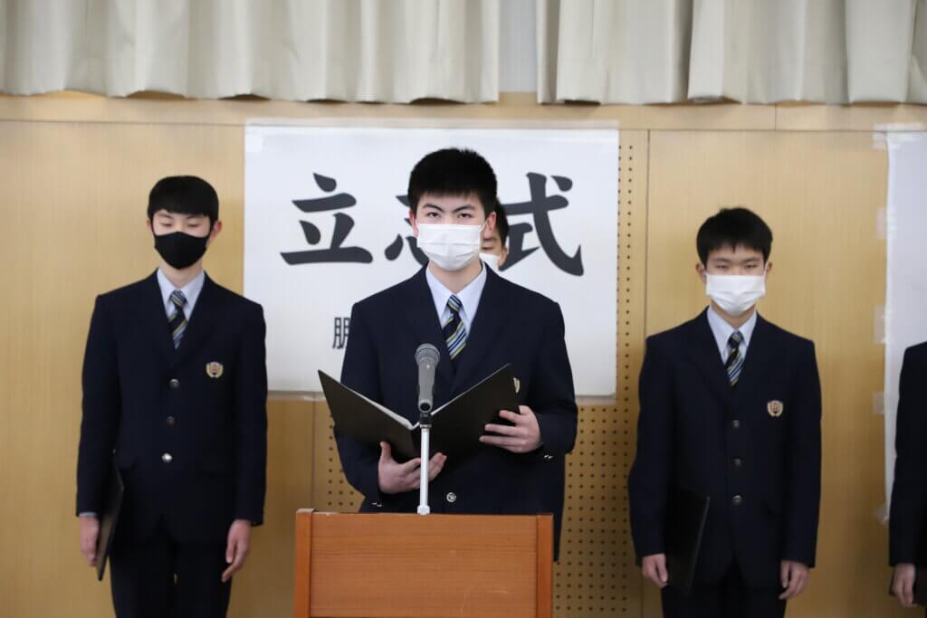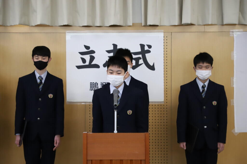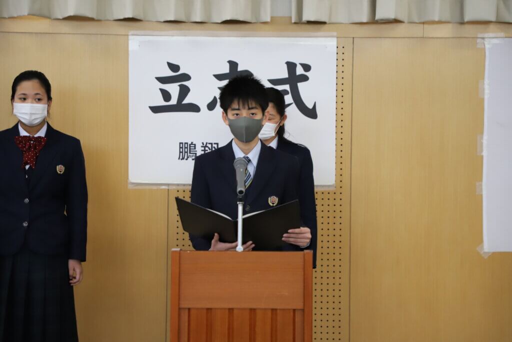 先日行われた立志式の様子です。 伴奏 J2B平田萌音さん(宮崎小出身)指揮 J2A赤池瑛仁さん(宮﨑南小出身) J2Aの立志宣言の様子です。それぞれの思いを堂々と発表していました。 次回はJ2Bの立志宣言の様子をお届けします。