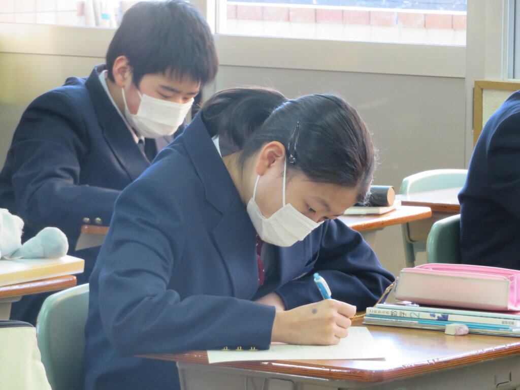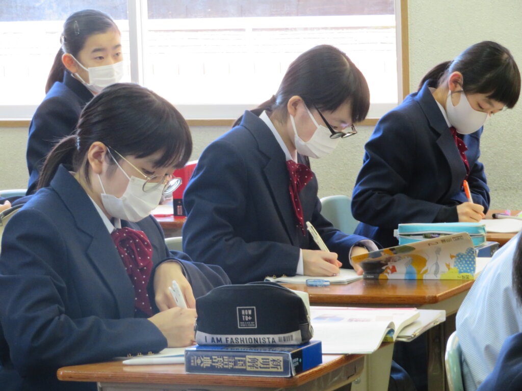 本日は、J1の授業の様子をお届けします。 現在英語は、未来の表現方法について学習しています。数学は、1次関数の単元をしています。 まだまだ寒い日が続きます。体調管理に気をつけて、明日も元気に登校してきてください!