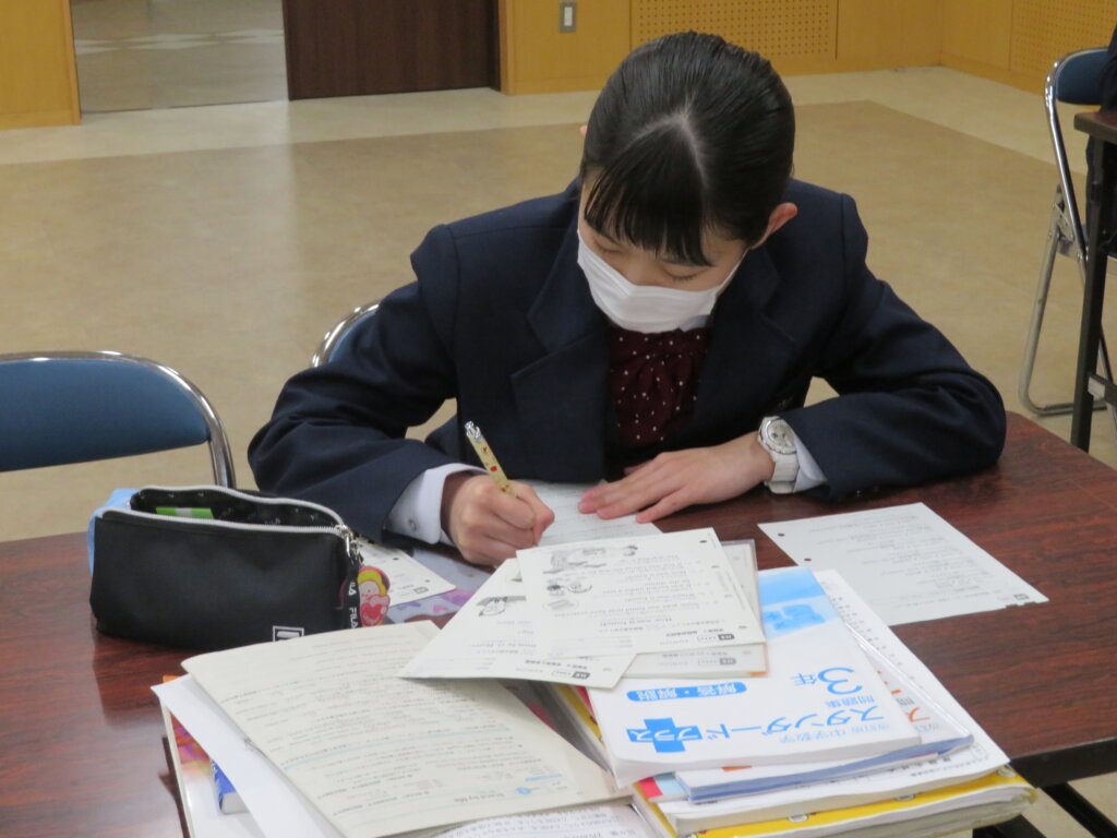今日は、放課後学習の様子をお届けします。テスト前ということもあり、わからない問題を積極的に質問する姿が見られました。 明日も雨が降るようです。登下校の際は、時間に余裕をもって安全に登校してきてください。