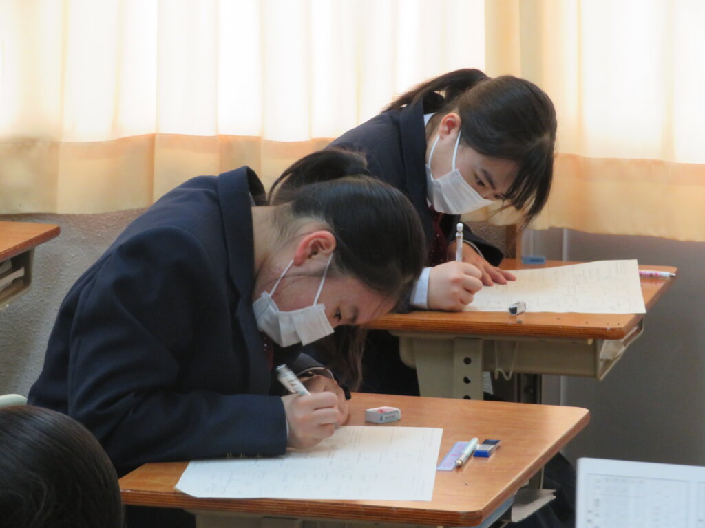休み時間も、時間ぎりぎりまで友人と問題を確認し合い頑張っていました。