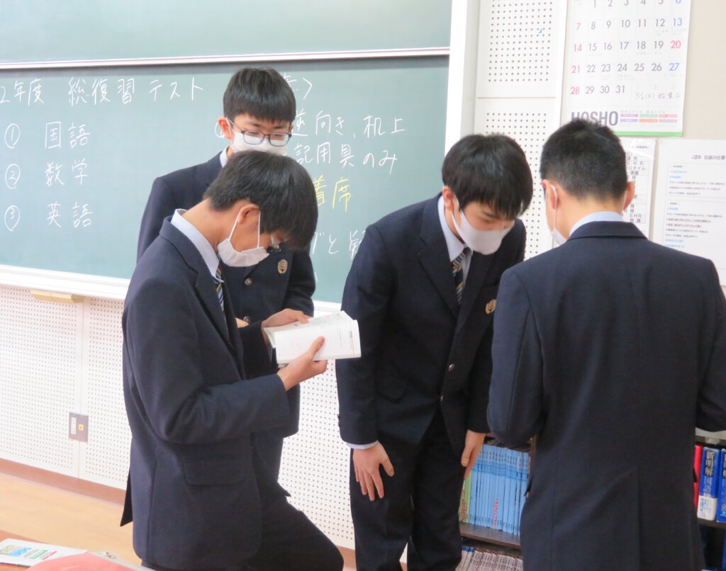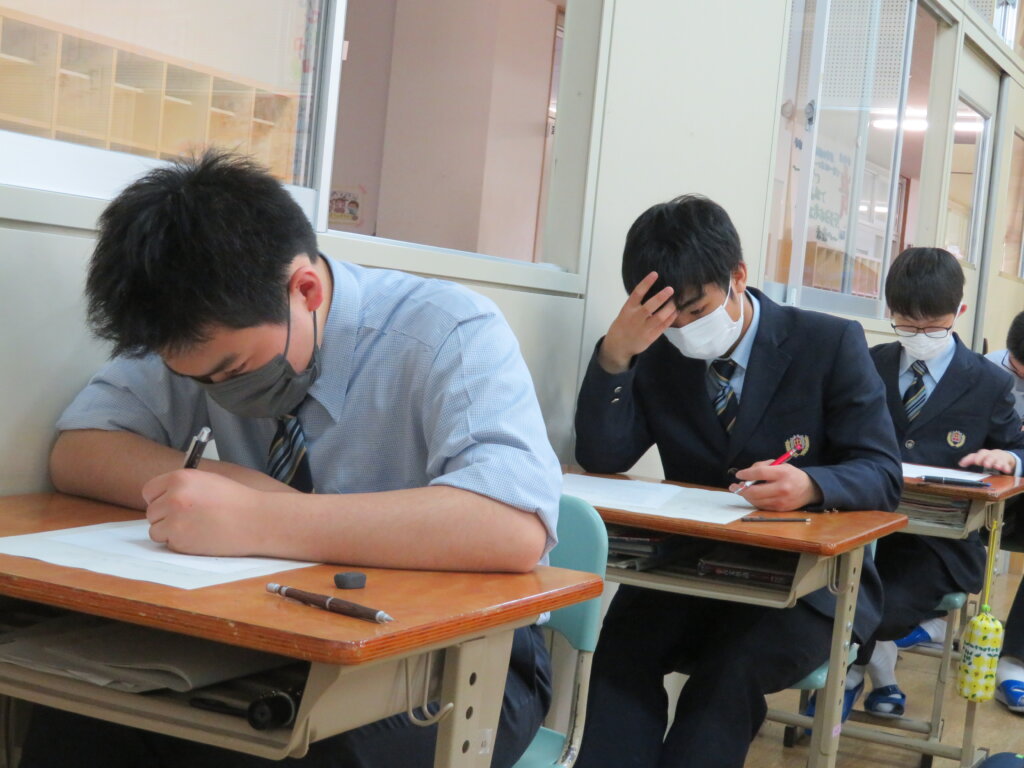 本日、全学年総復習テストを実施しました。教科は、国語・数学・英語の3教科です。