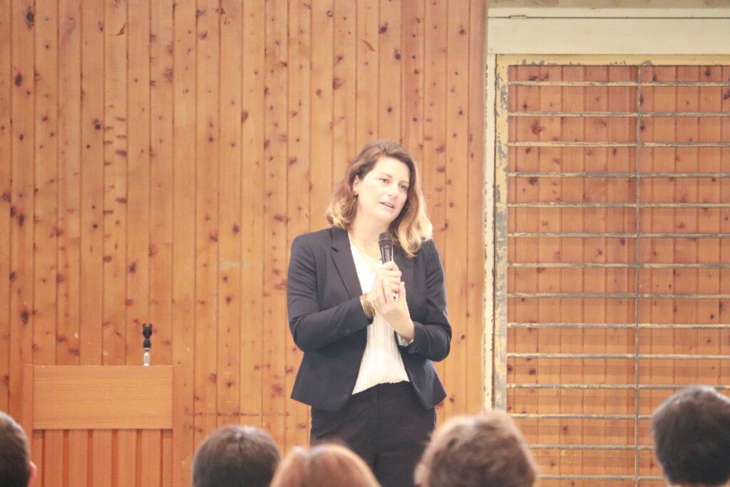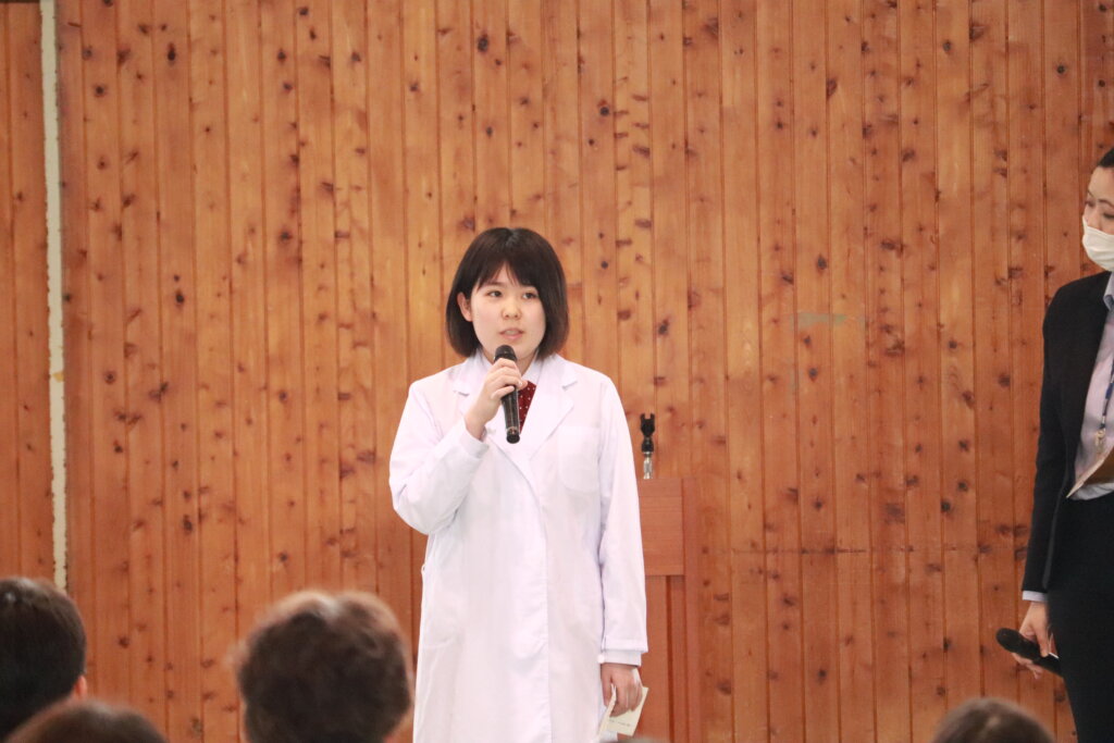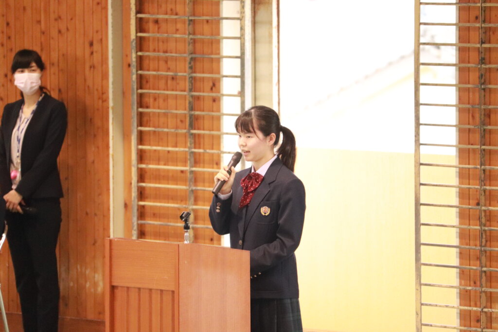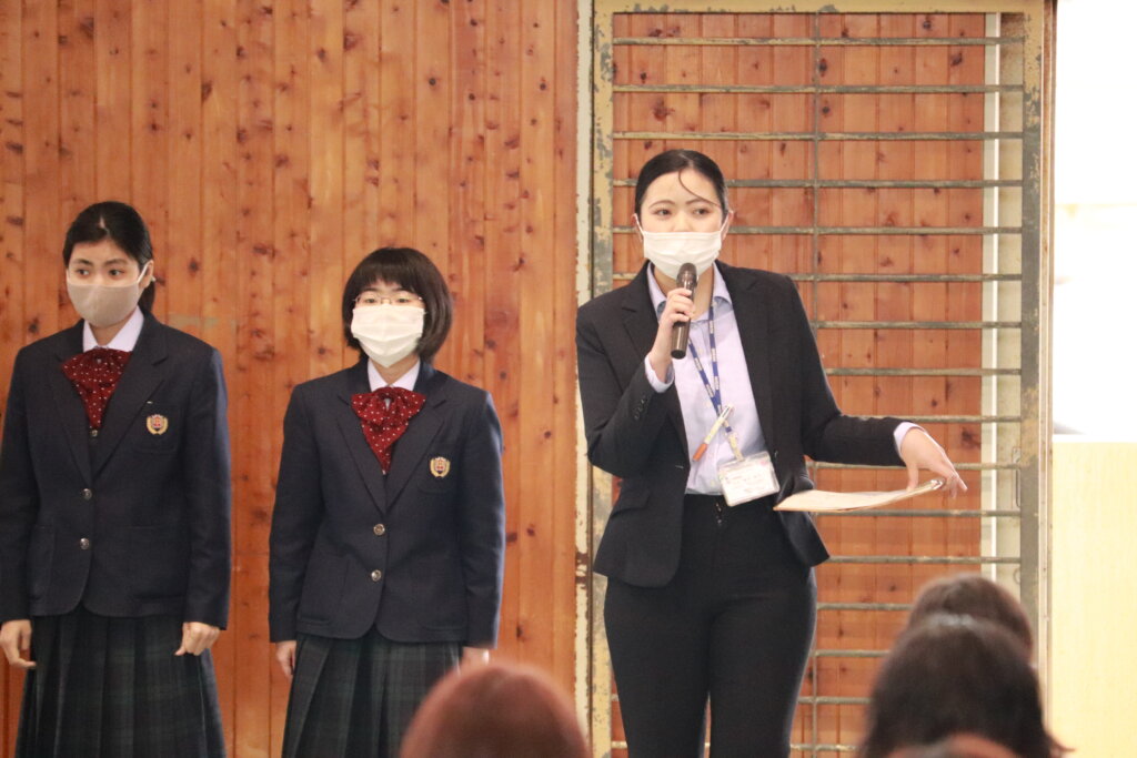 学校概要、特待生制度の話や、ALT紹介、特進英数科中高一貫の卒業生紹介等を行いました。