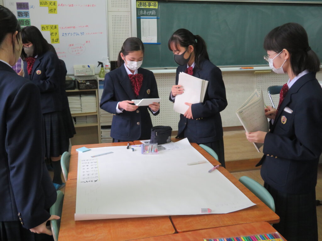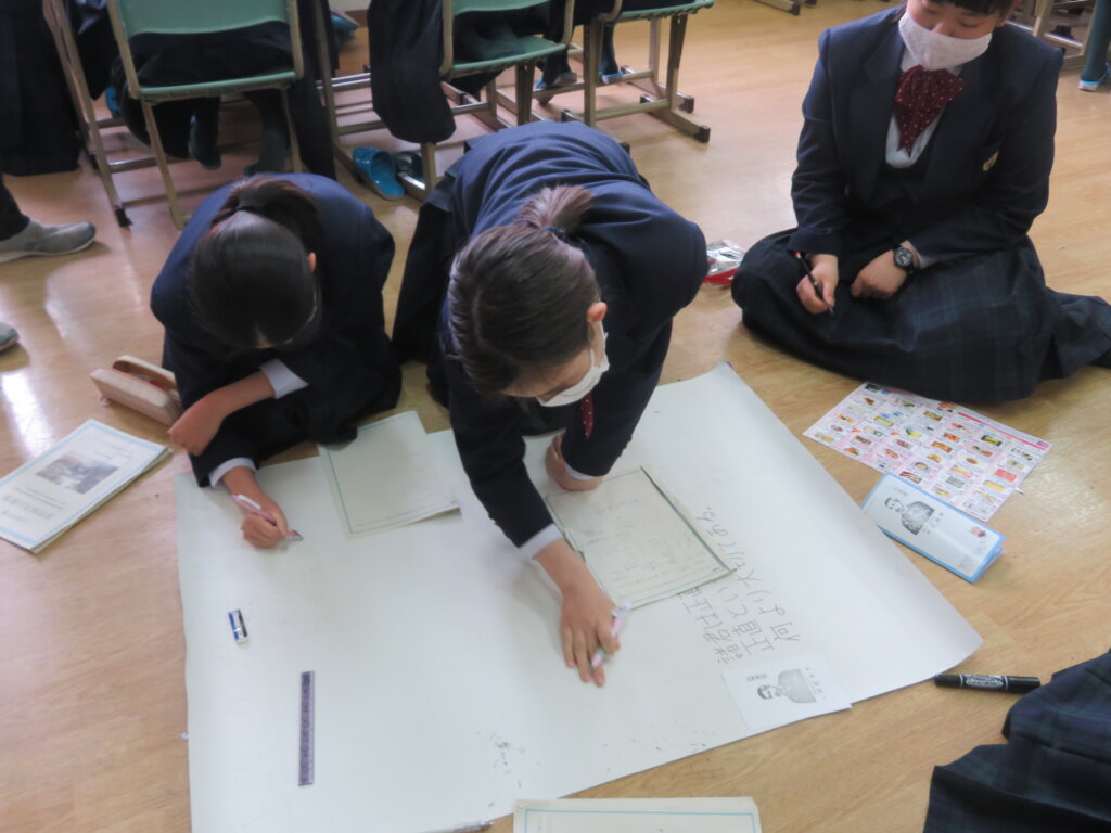 分かりやすく伝えるために絵を描いたり、写真を貼ったりと各班、工夫してまとめていました。