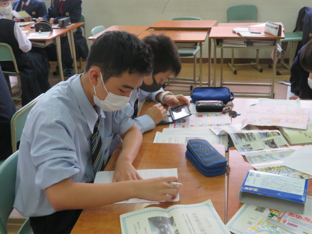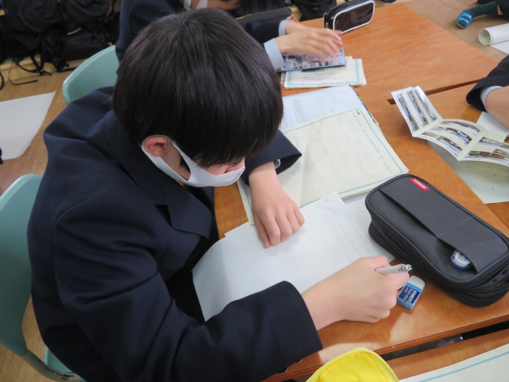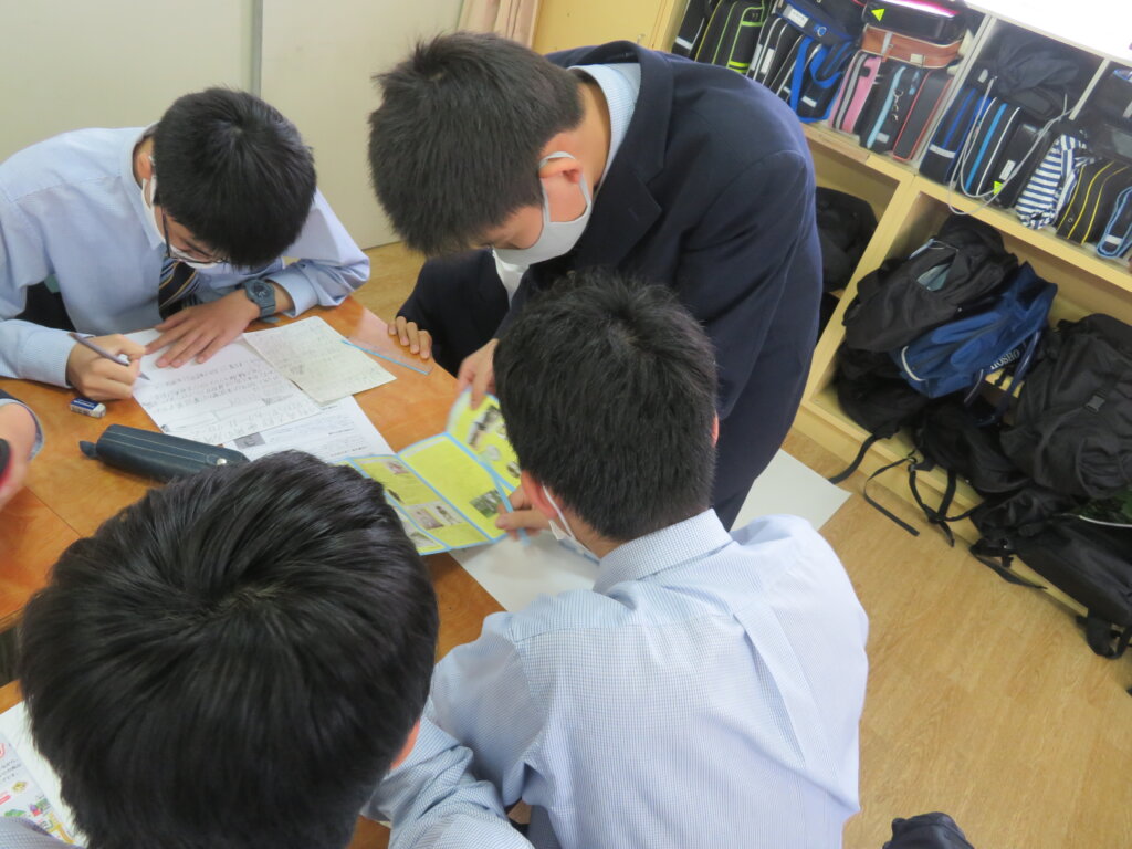 ガイドボランティアの方から聞いたお話しや、自分たちで見て感じたことを班でまとめました。