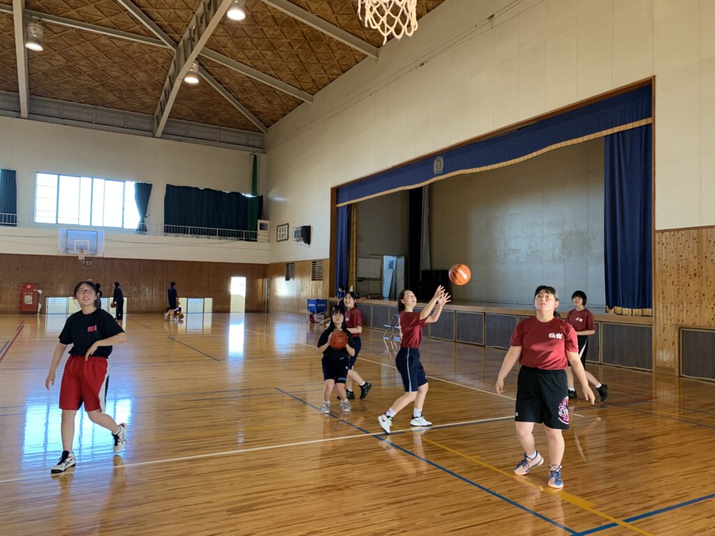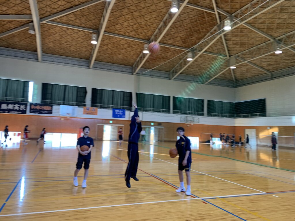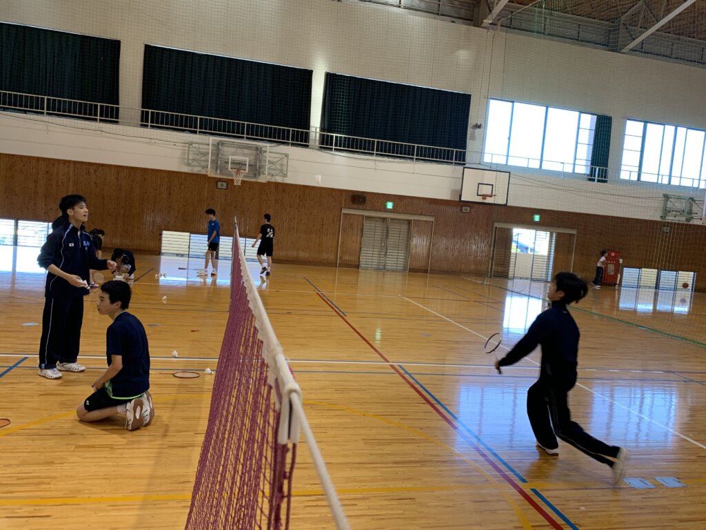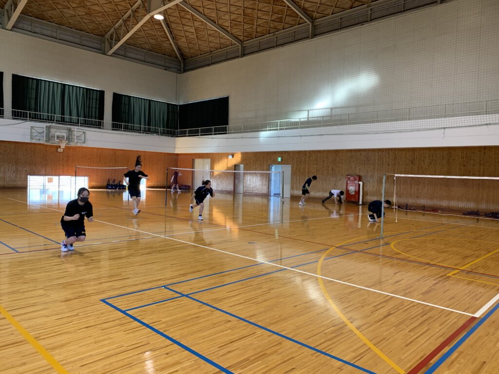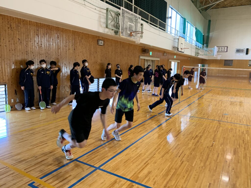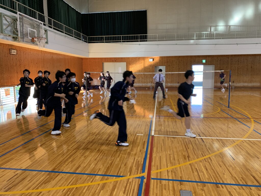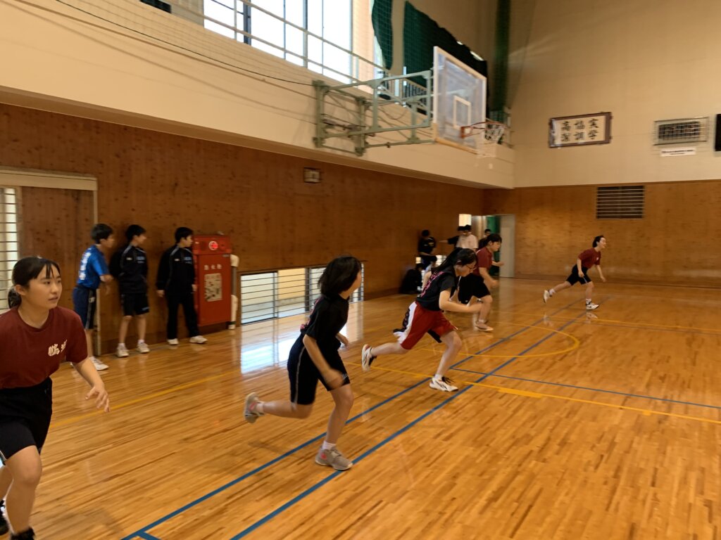 体育館では、バドミントン部とバスケットボール部が活動しています。両部活とも、準備運動ウォーミングアップを十分行い、それぞれ今日の練習メニューに取り掛かっていました。