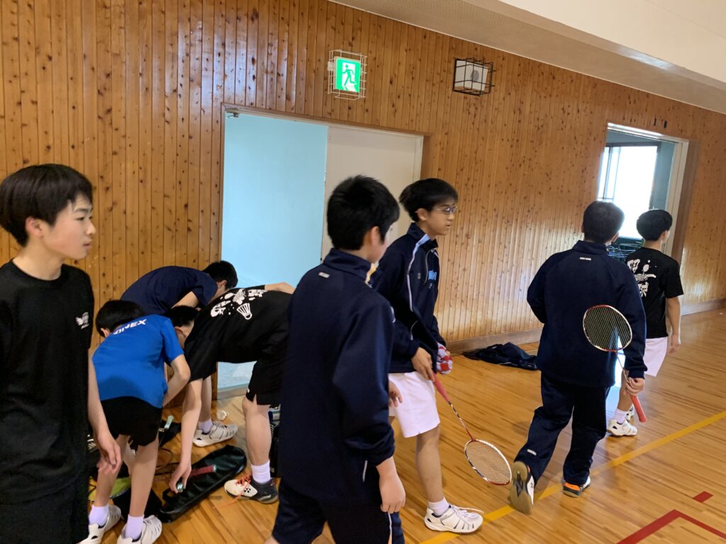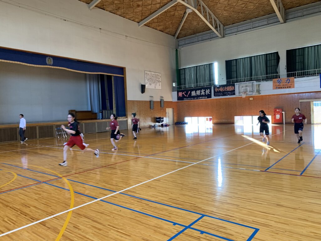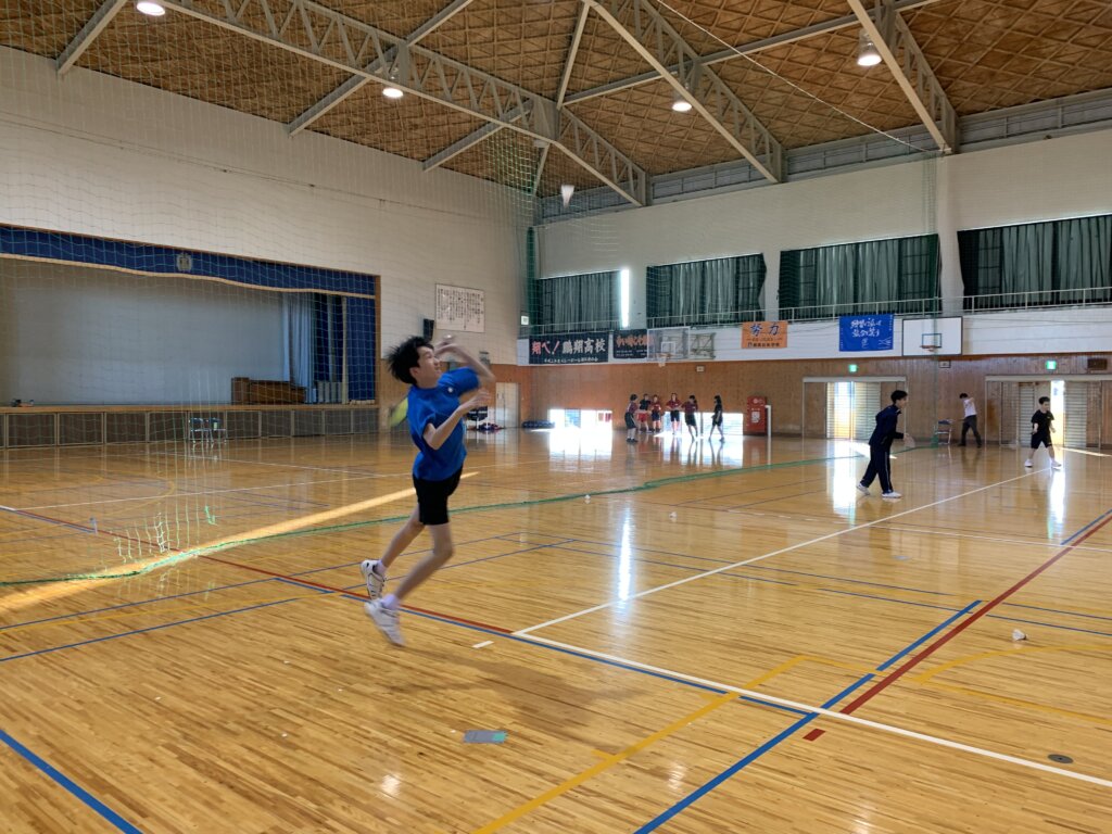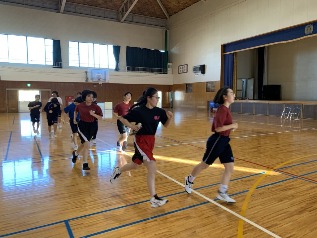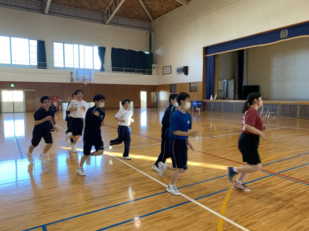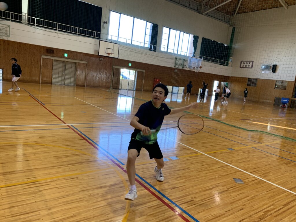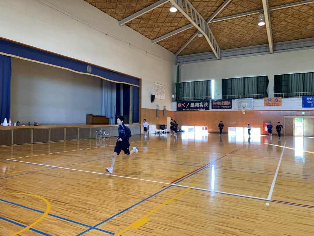 体育館では、バドミントン部とバスケットボール部が活動しています。両部活とも、準備運動ウォーミングアップを十分行い、それぞれ今日の練習メニューに取り掛かっていました。