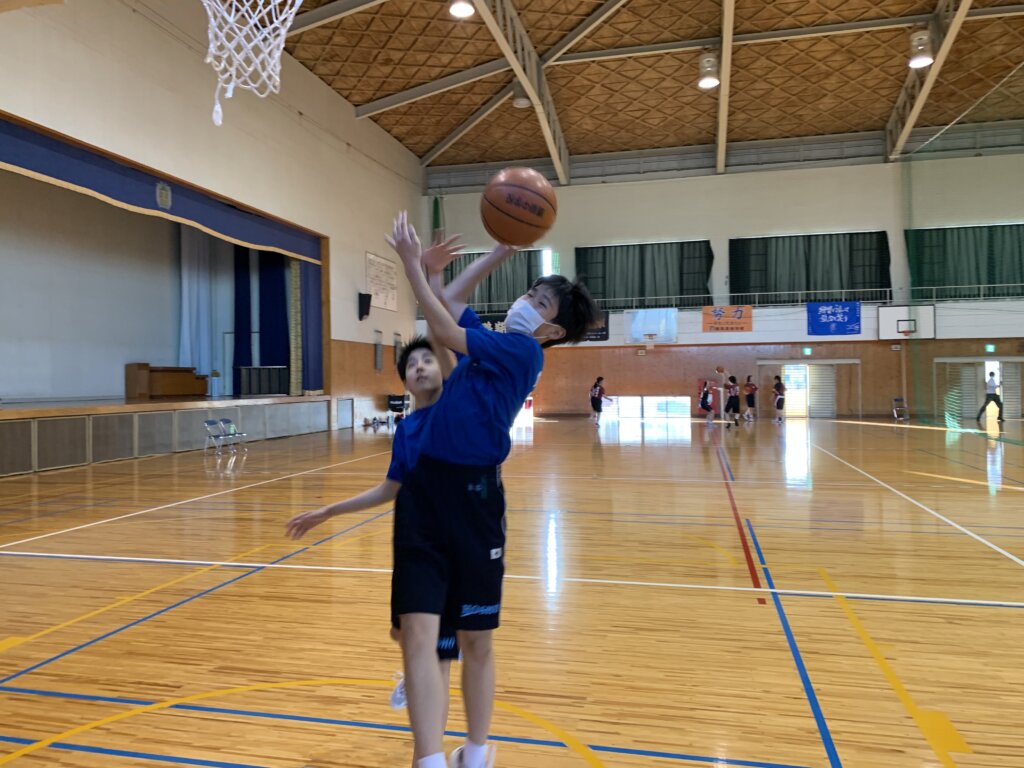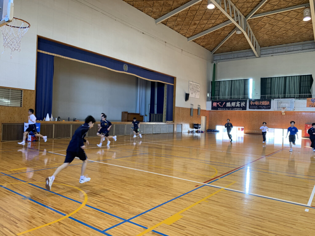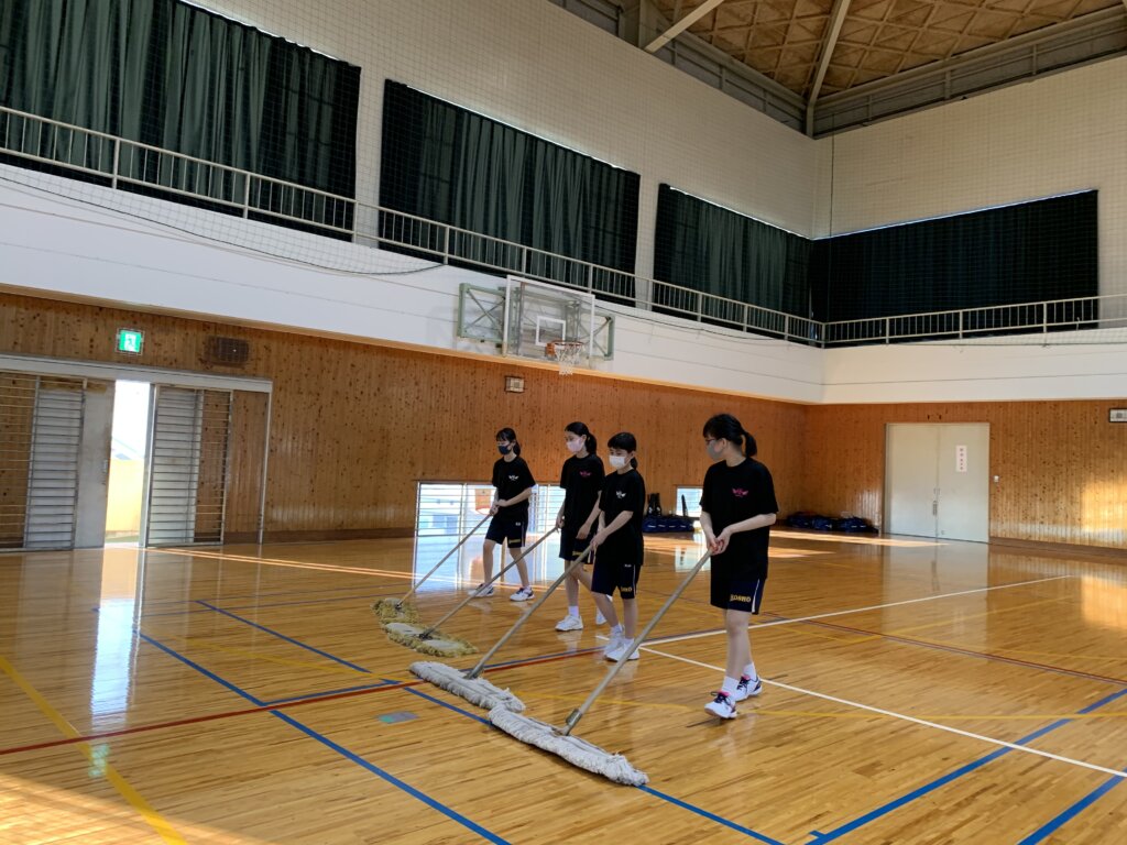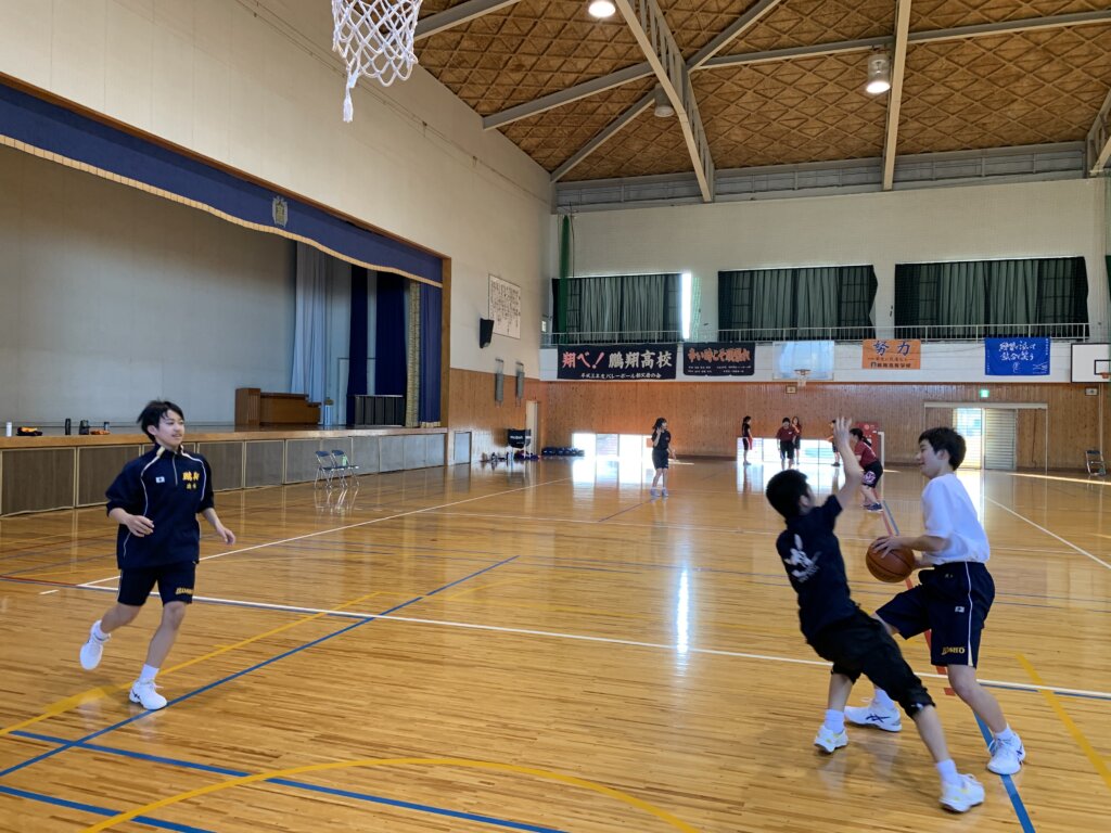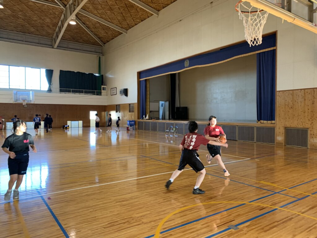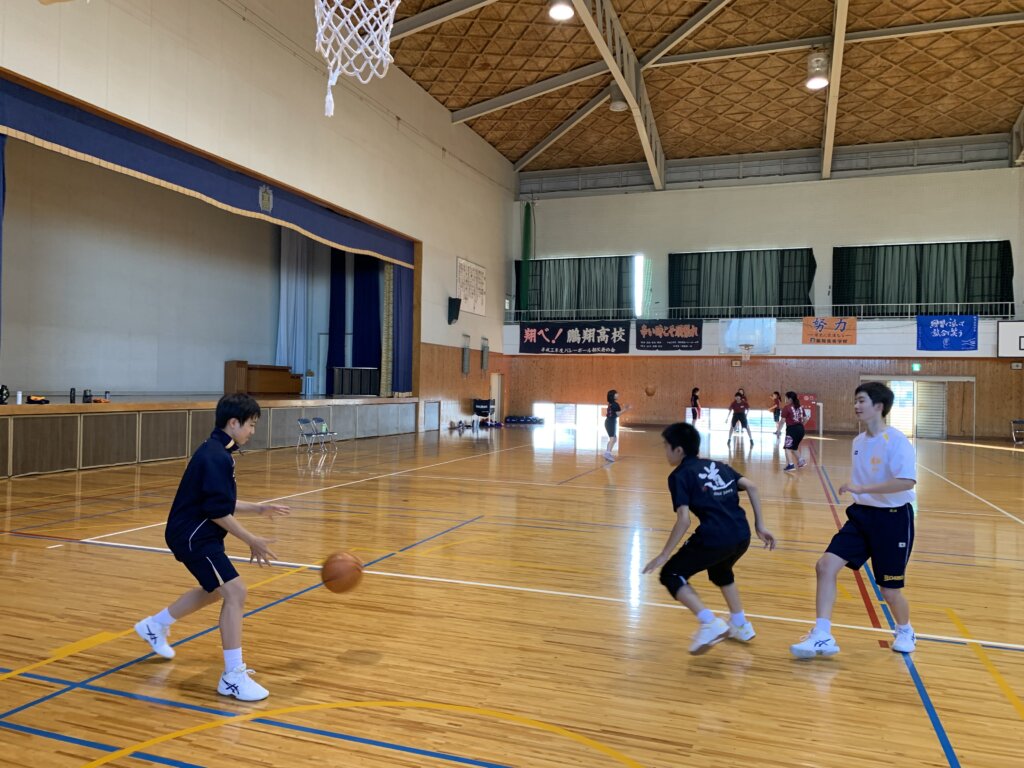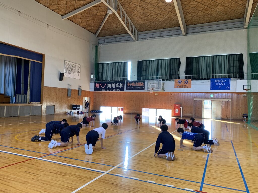 体育館では、バドミントン部とバスケットボール部が活動しています。両部活とも、準備運動ウォーミングアップを十分行い、それぞれ今日の練習メニューに取り掛かっていました。