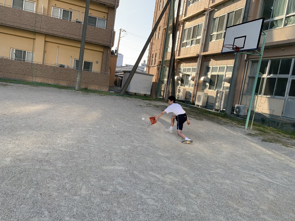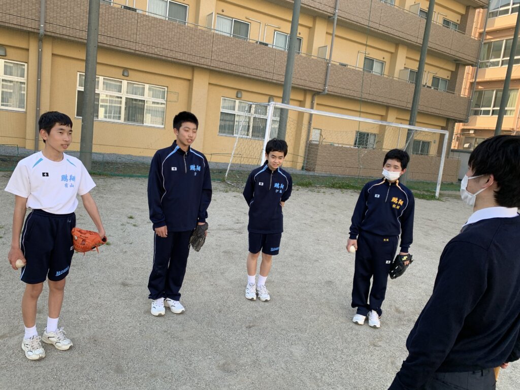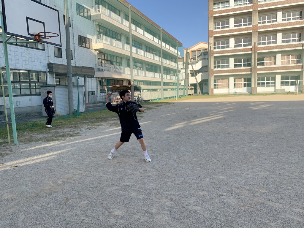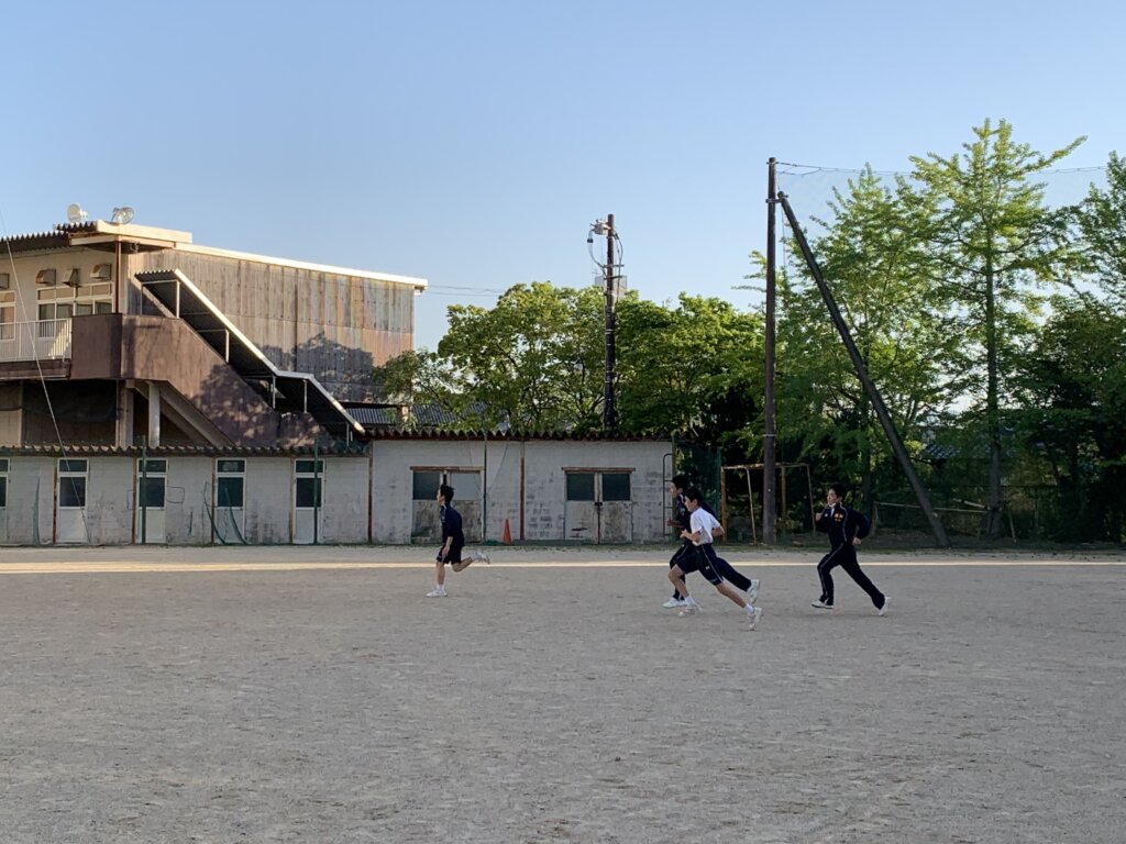グラウンドでは、野球部が練習をしていました。中萬先生の指導のもとキャッチボールやノック、走り込みをしていました。