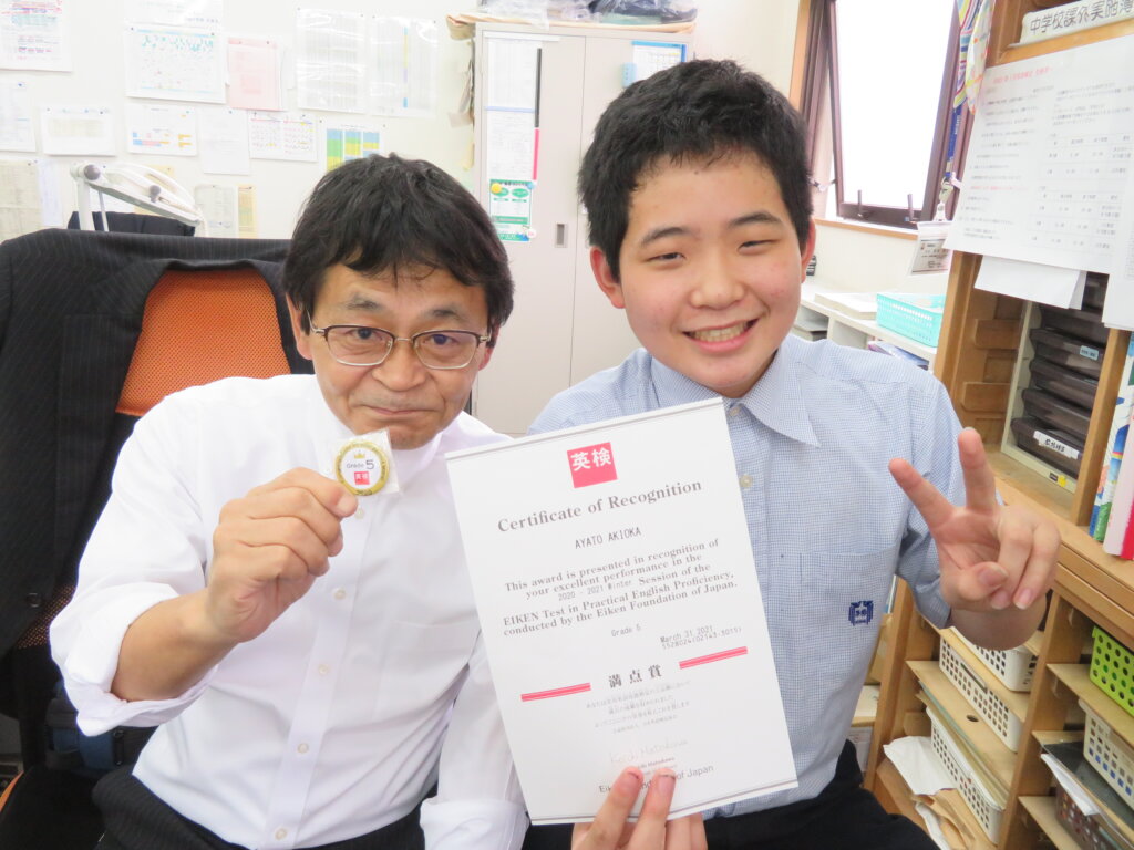 J2Bの秋岡礼人さん(国富小出身)が英語検定の満点賞をもらいました!!満点おめでとう!